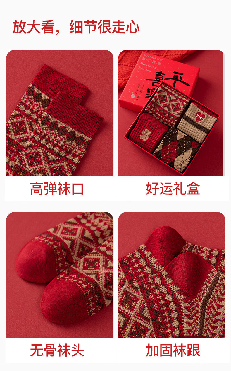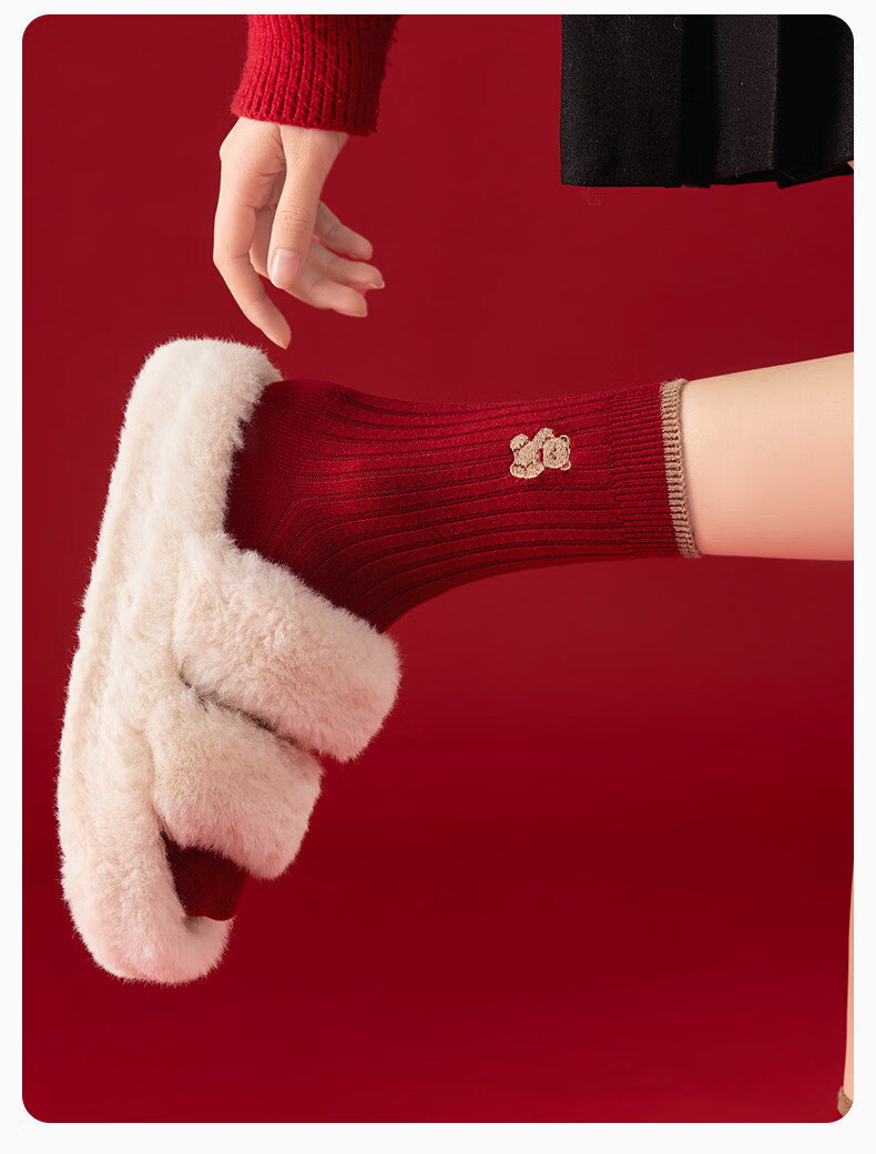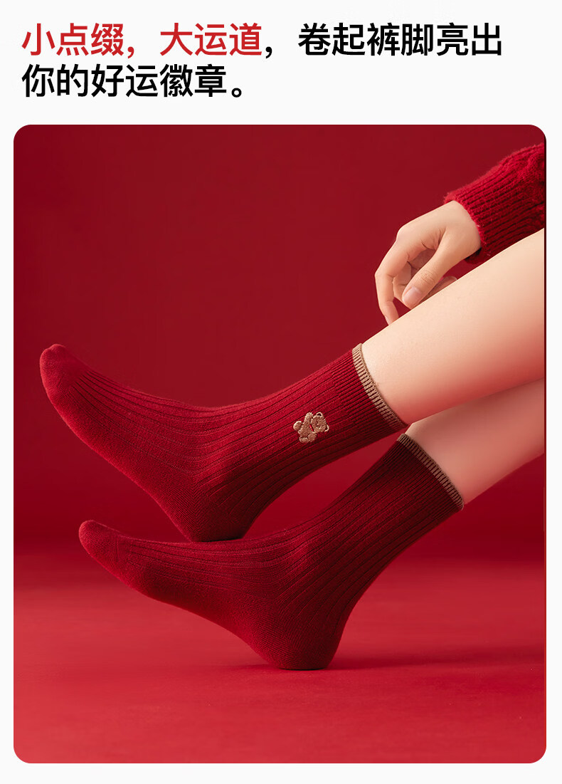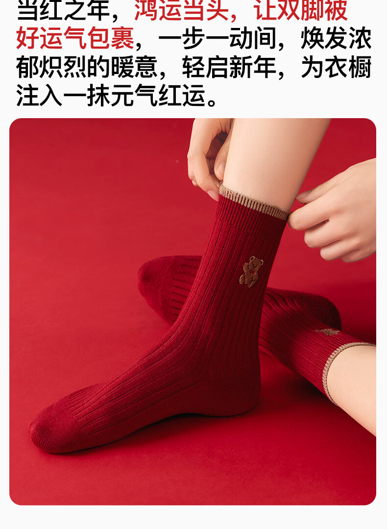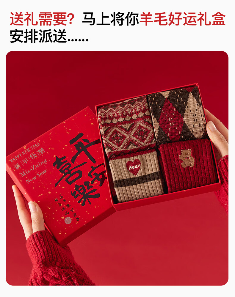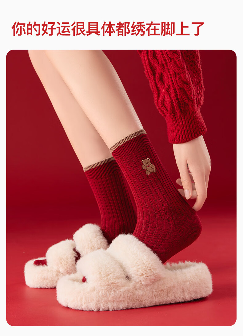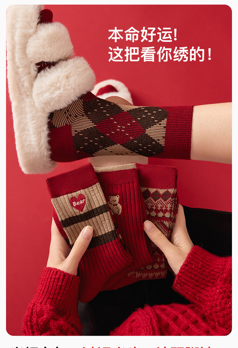 Body Admiration Ben Ming Nian Red Socks Women's 2026 Year of the Horse Gift Box Wool Warm Mid-Tube Socks New Year's Gift Wool Type_Gift Box Make Money Now One Size Good Luck Socks_Ben Ming Nian_Wool Thick Warmth