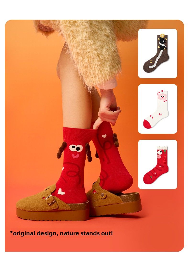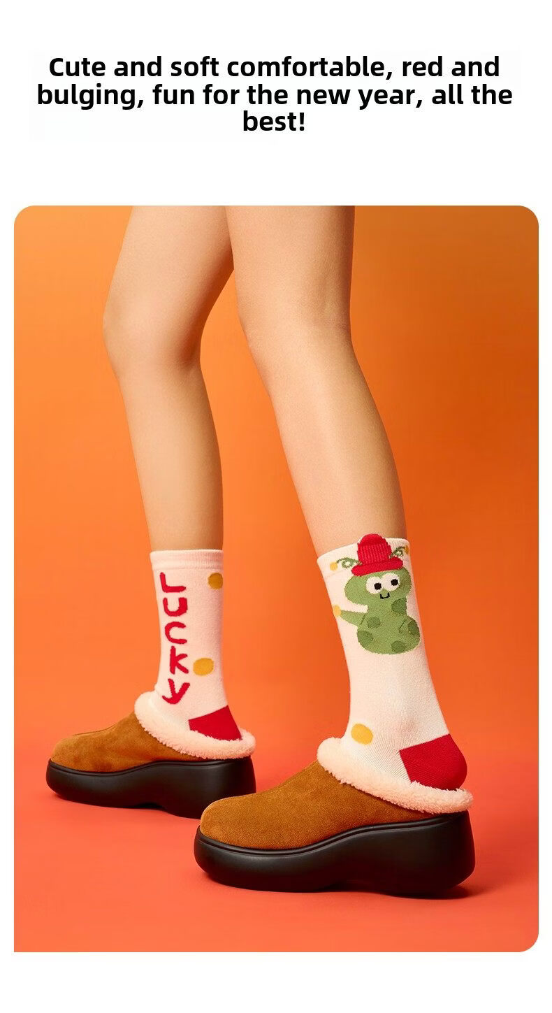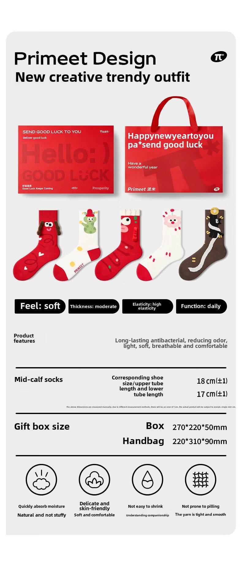 Pami (pami) Snake Year Twelve Zodiac Year Socks Women's Spring and Summer Mid-Tube Socks 2025 New Year Gift Box Cotton Socks Wedding Socks Red Socks Double Happiness - Women's_ Gift Box 5 Pairs One Size (Suitable for Codes 36-43) Zodiac Year_Lucky Red_Couples