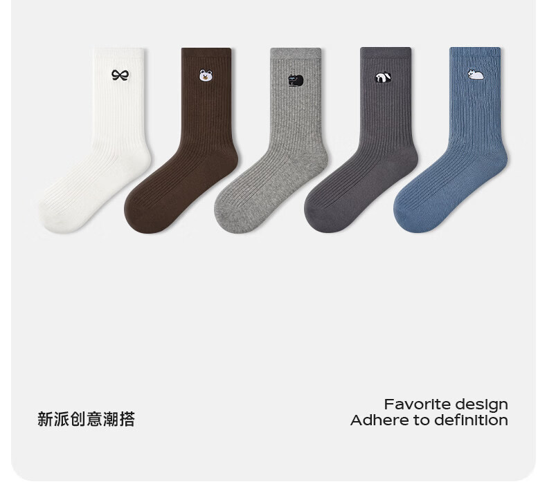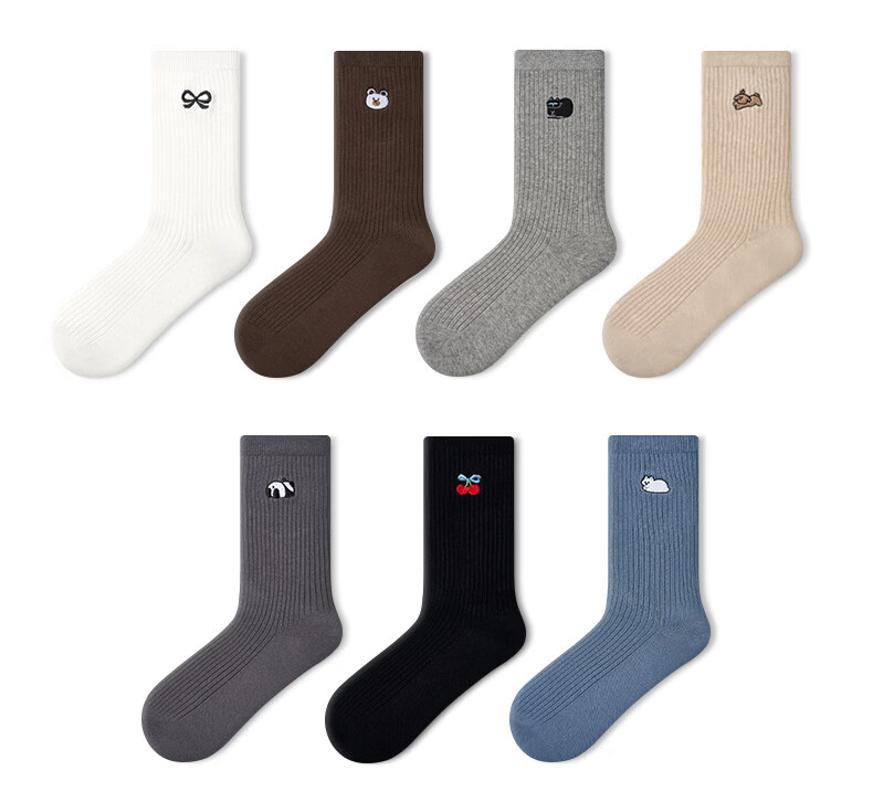 Pami (pami) embroidered socks women's spring and summer mid-tube socks 2025 new cute outer wear trendy Internet celebrity style spring and summer pile socks embroidered pile socks set A - pack 5 pairs, one size fits all (suitable for sizes 36-39)