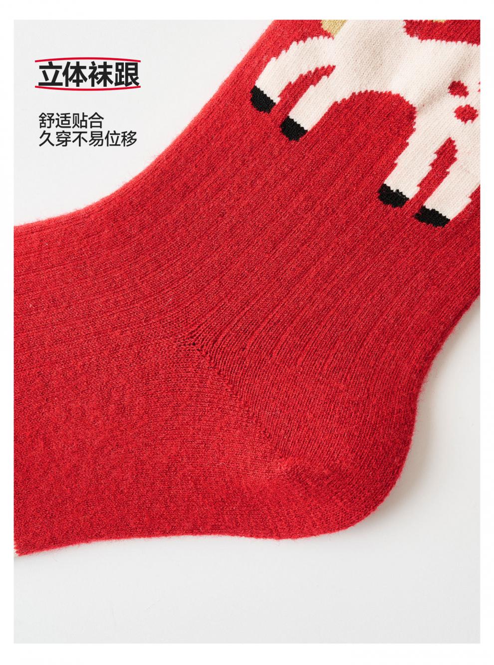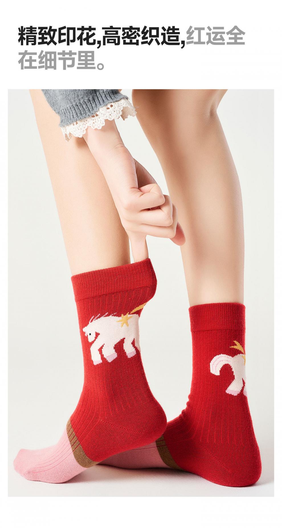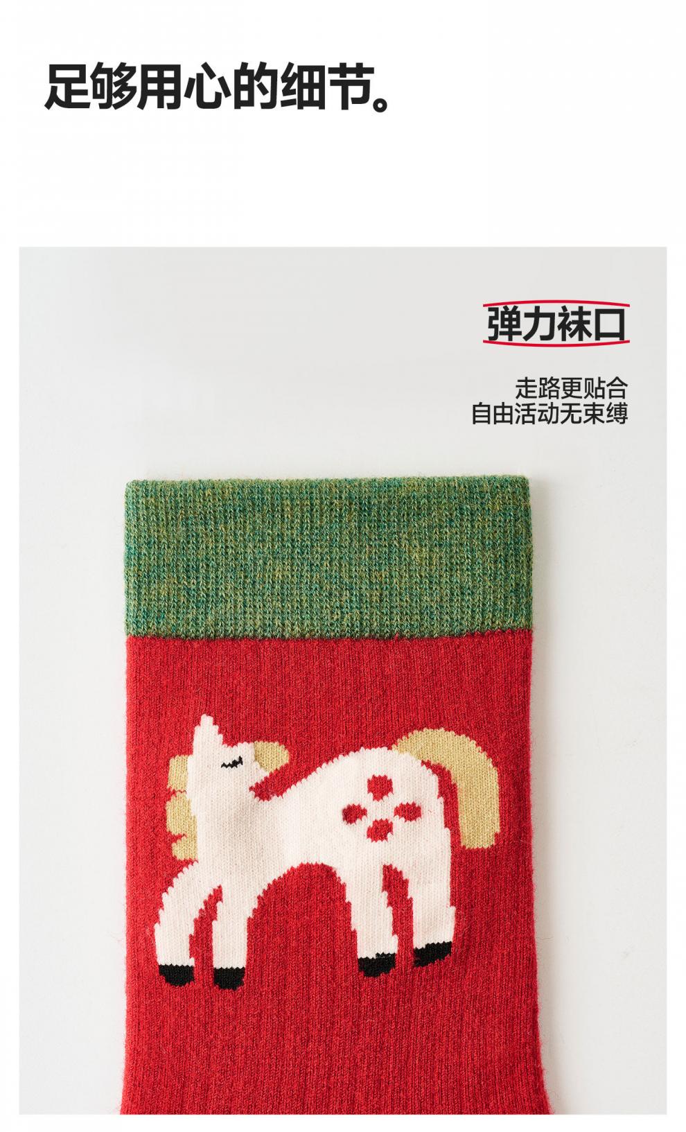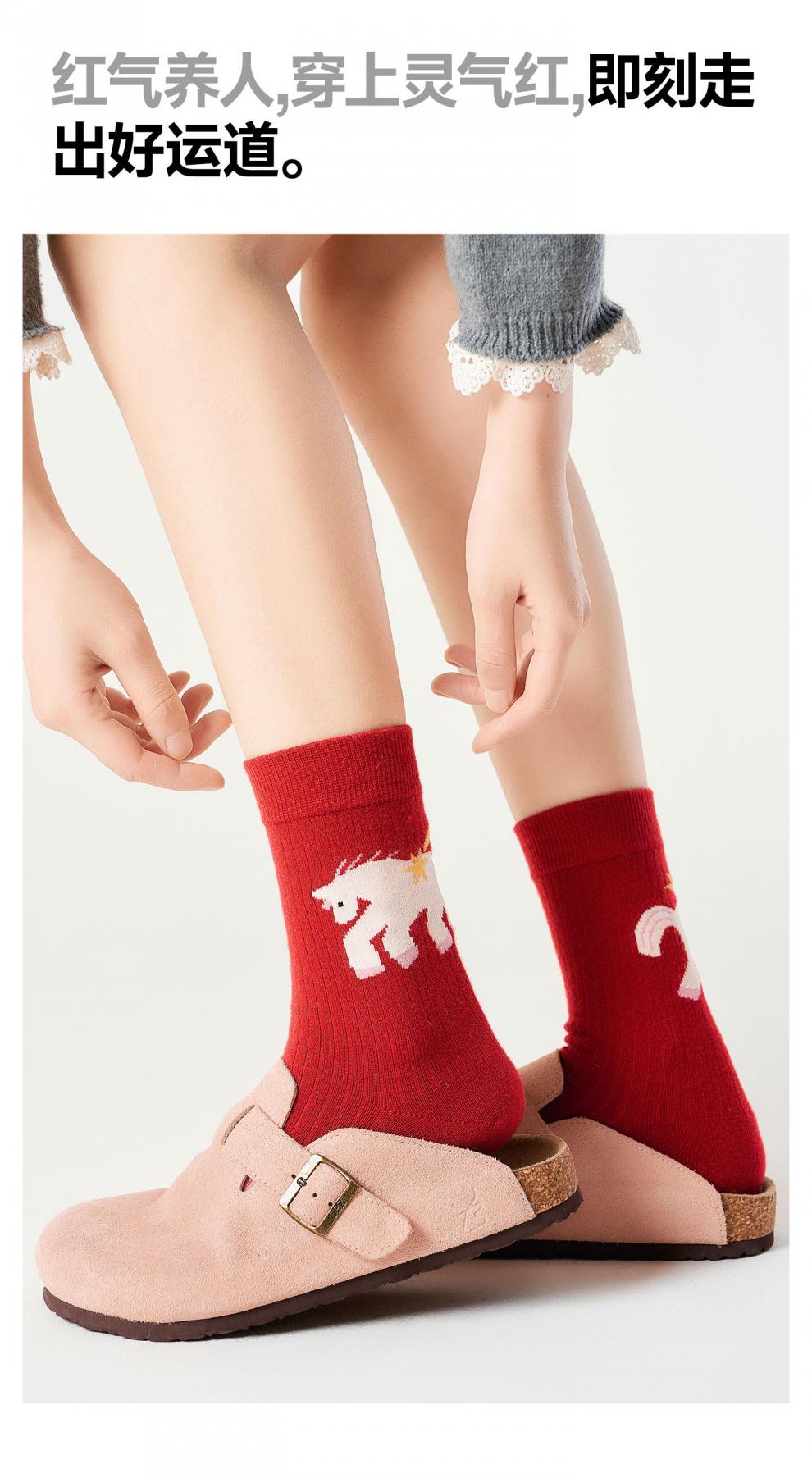 Pami (pami) zodiac year red socks for women, autumn and winter thickened warm mid-calf socks, Year of the Horse, New Year gift stockings, Peace in the Year of the Horse - Pack of 4 pairs, one size fits all (suitable for sizes 36-39)