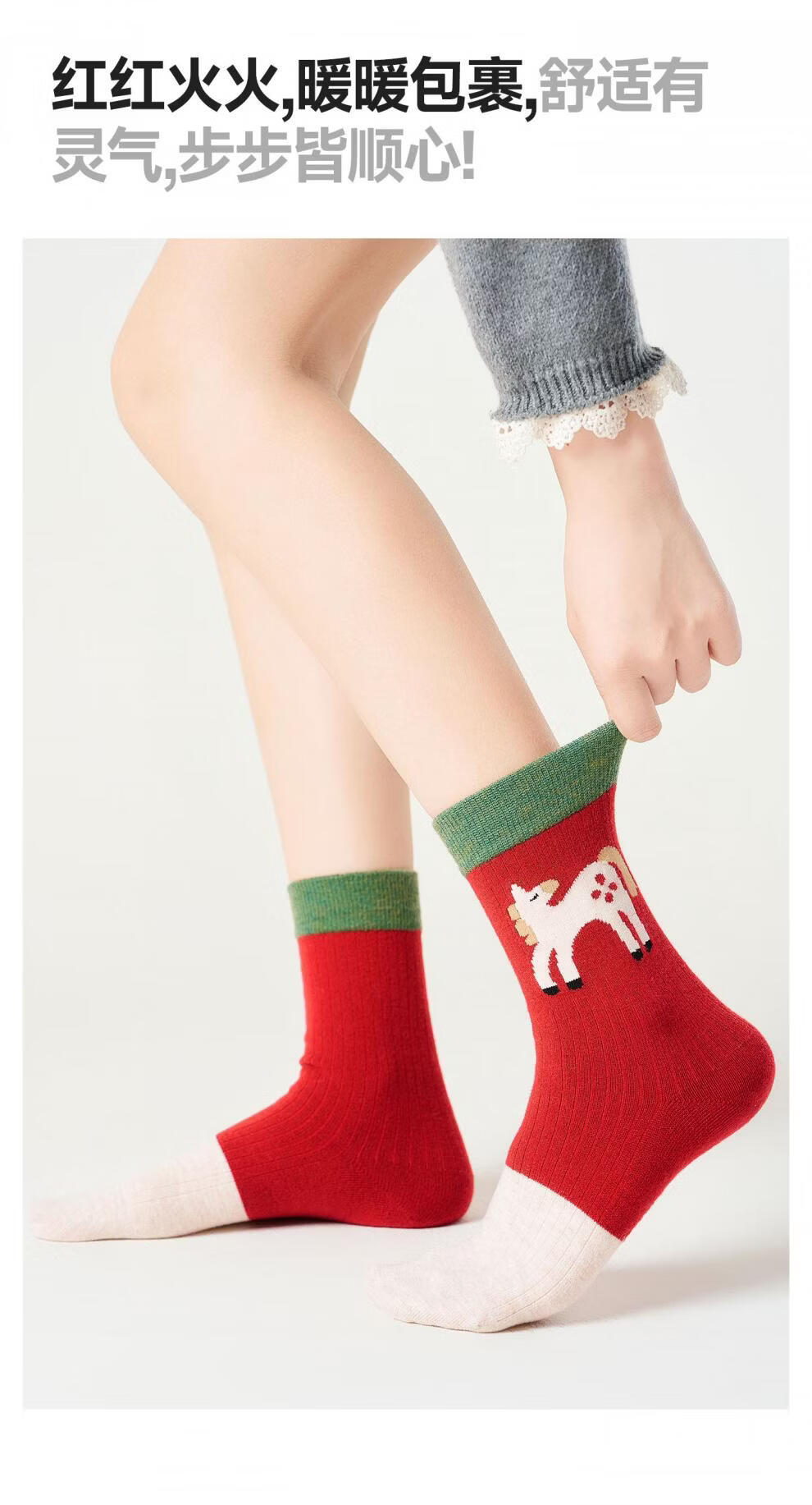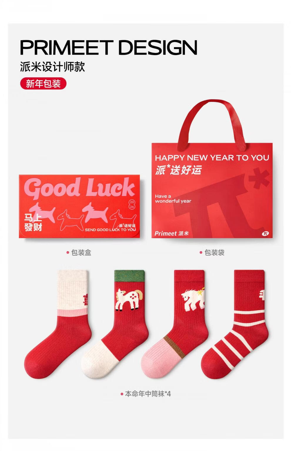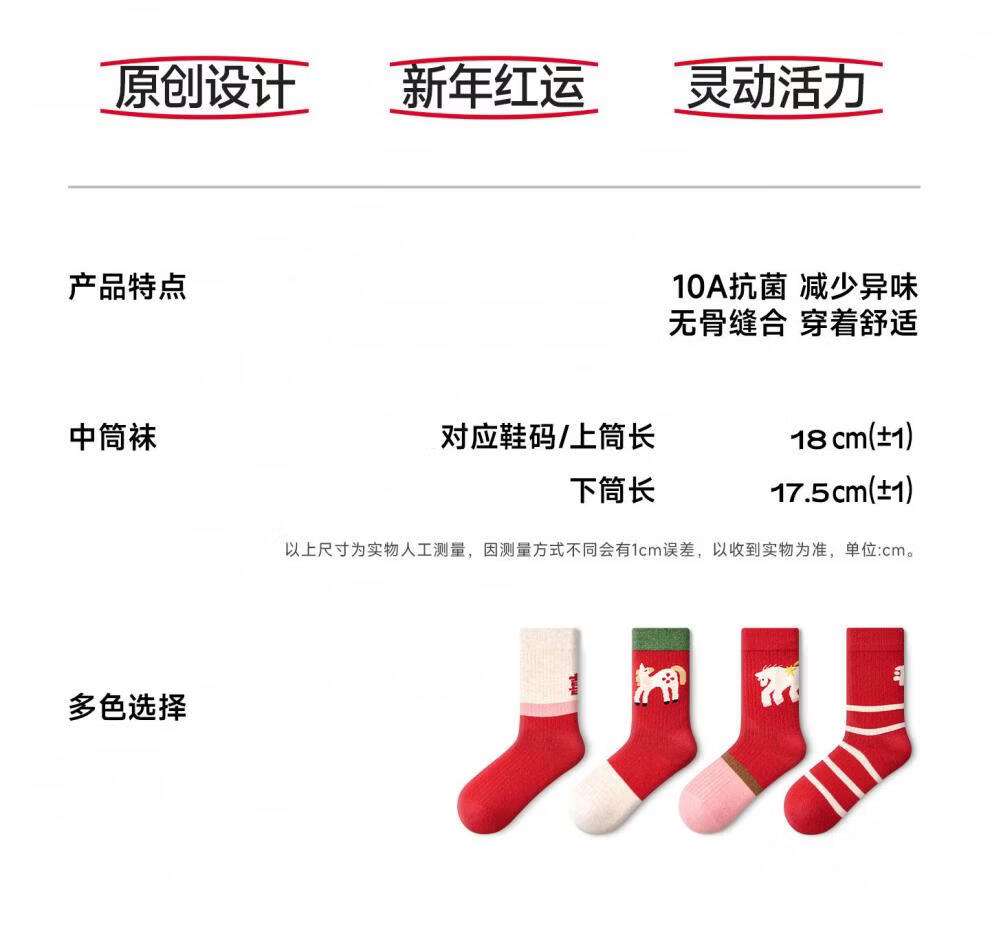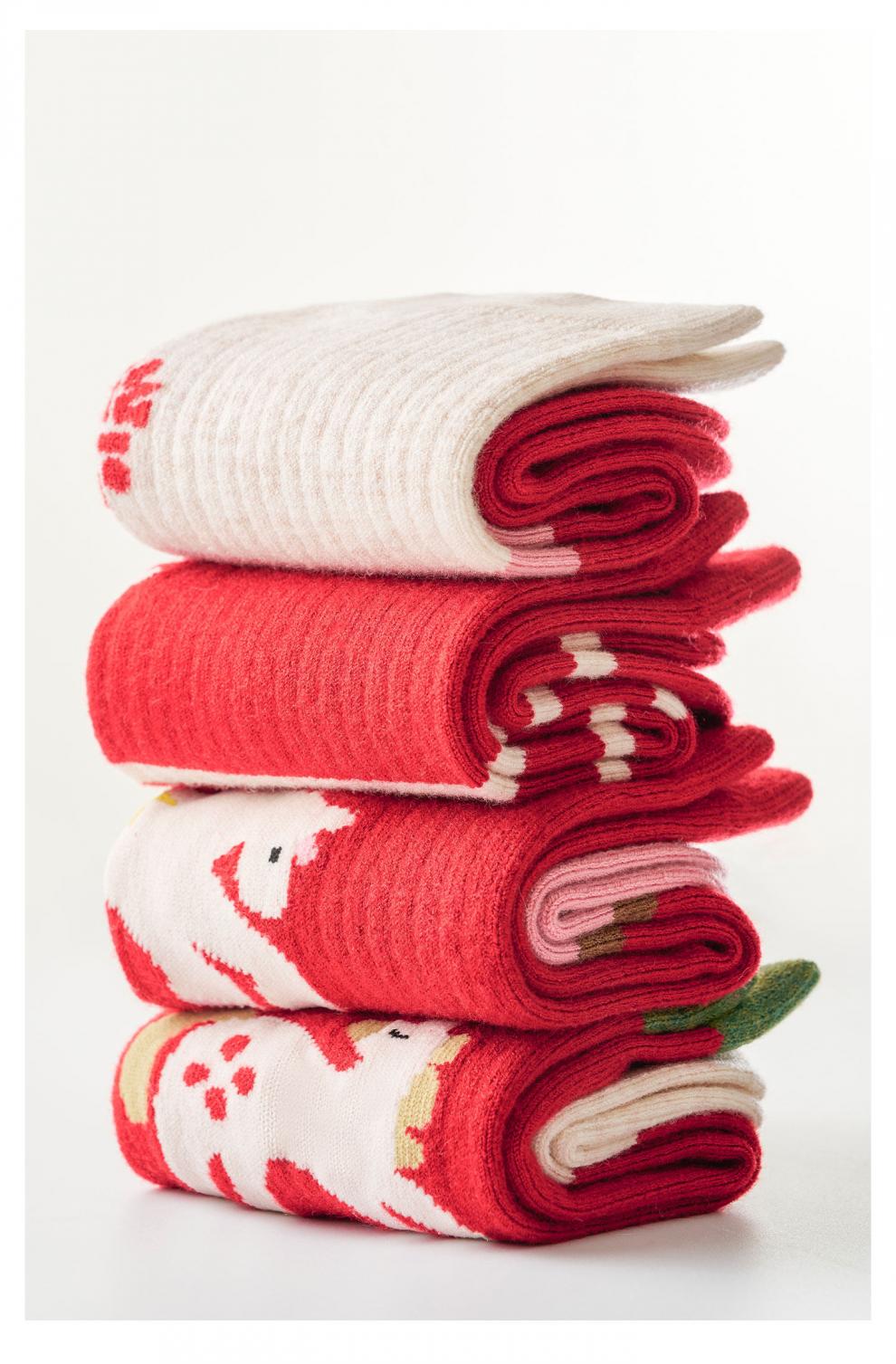 Pami (pami) zodiac year red socks for women, autumn and winter thickened warm mid-calf socks, Year of the Horse, New Year gift stockings, Peace in the Year of the Horse - Pack of 4 pairs, one size fits all (suitable for sizes 36-39)