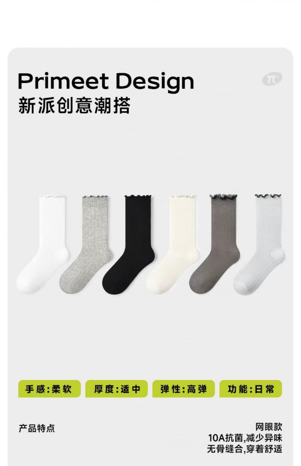 Pami socks women's summer thin mesh breathable mid-calf socks lace socks boneless summer ladies white pile socks mesh lace group A - pack 3 pairs one size fits all (suitable for sizes 36-39)