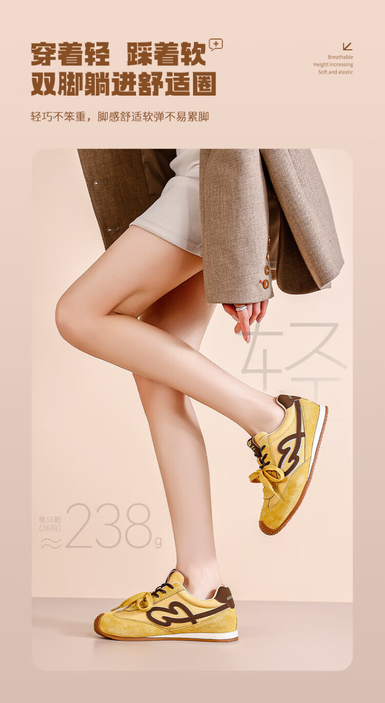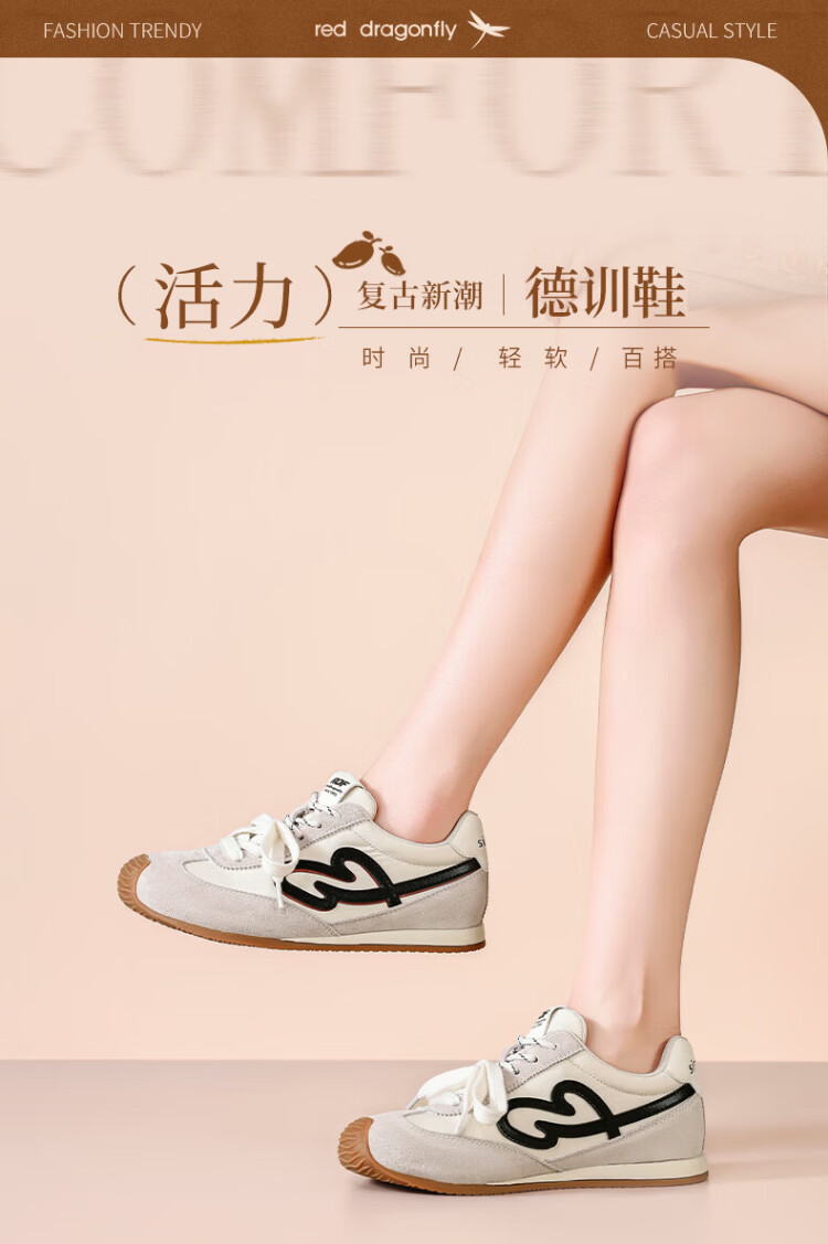 RED DRAGONFLY Women's Shoes Casual Shoes Women's Low-top Lace-Up Versatile Soft-soled Sports Shoes Women's Wear-Resistant Lightweight Comfortable Running Moral Training Shoes WTB162481 Beige (3.5CM) 35