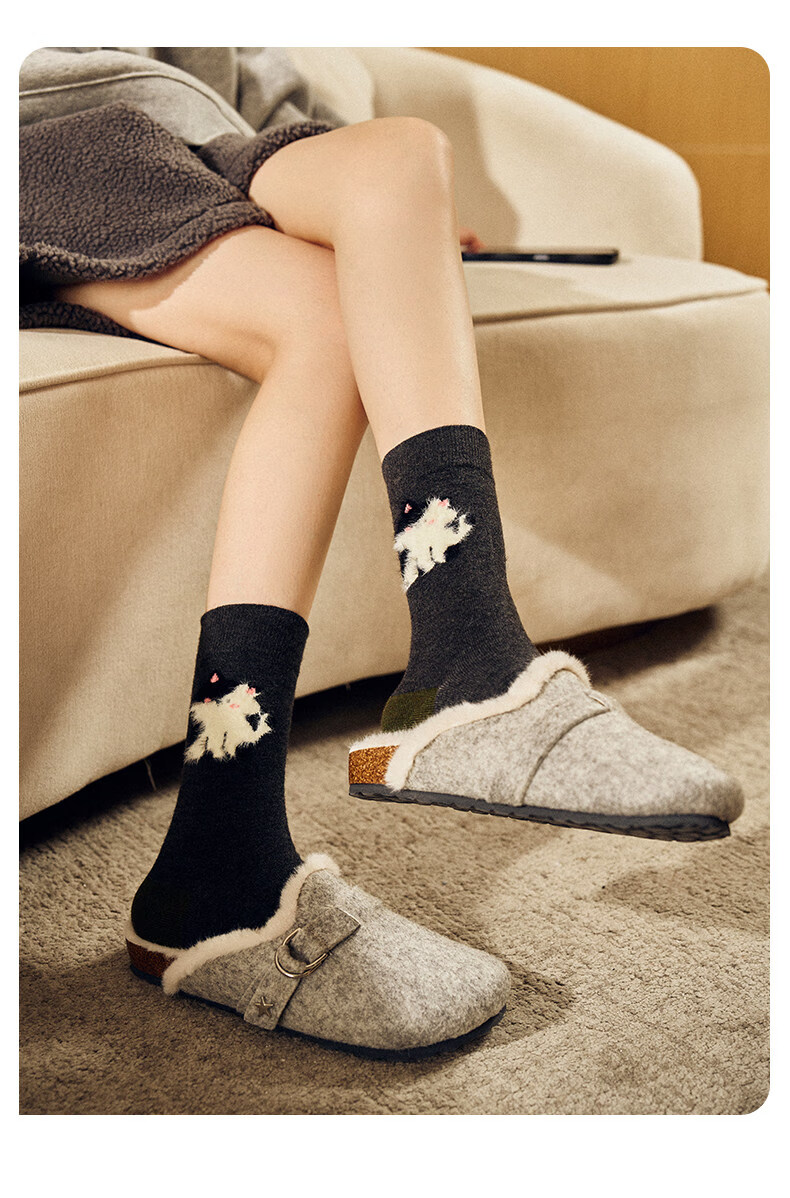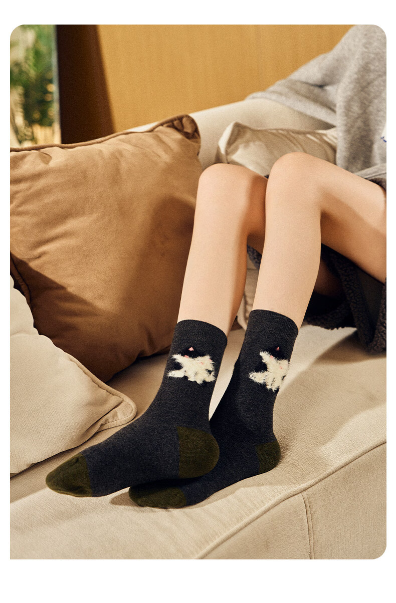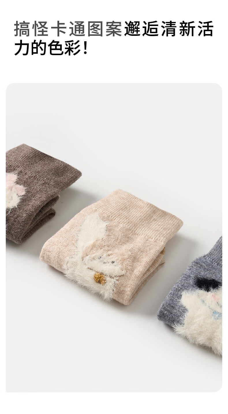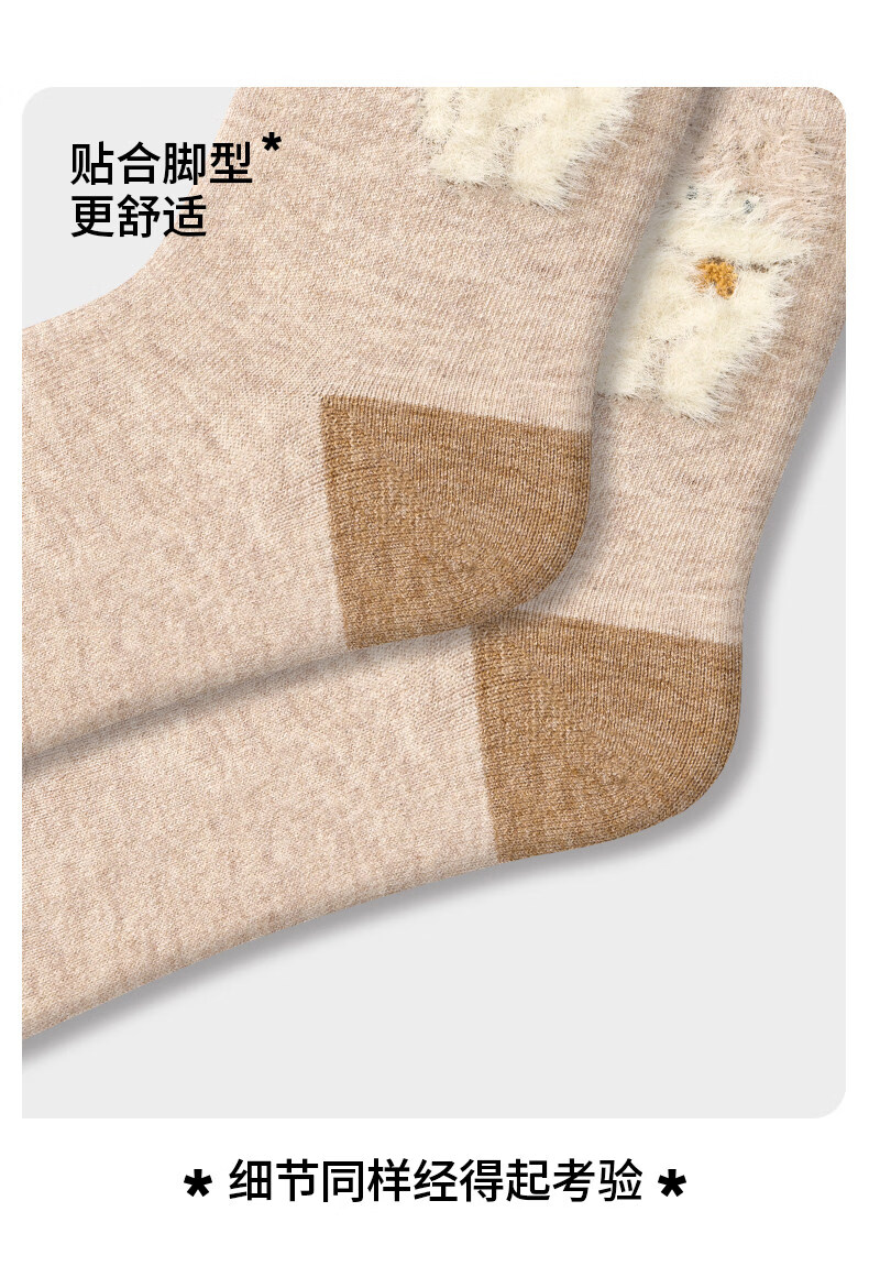 Pami socks for women in spring and summer, cute spring cold-proof thickened black warm stockings, plush thick socks, fried sweetheart-pack of 4 pairs, one size fits all (suitable for sizes 36-39)
