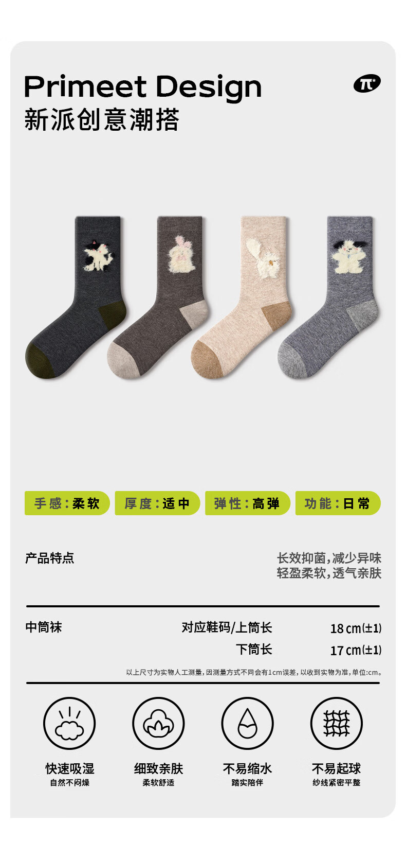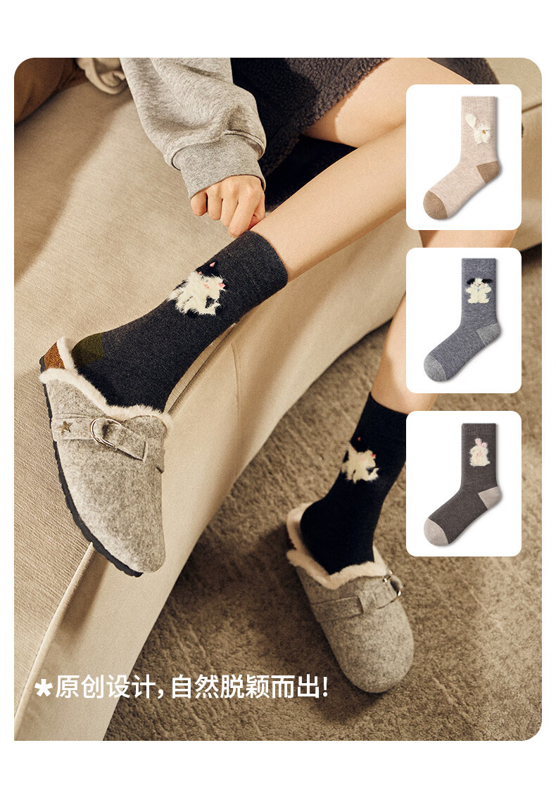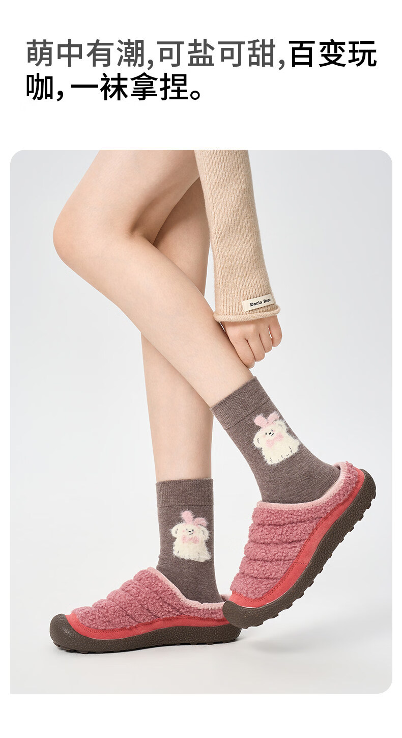 Pami socks for women in spring and summer, cute spring cold-proof thickened black warm stockings, plush thick socks, fried sweetheart-pack of 4 pairs, one size fits all (suitable for sizes 36-39)