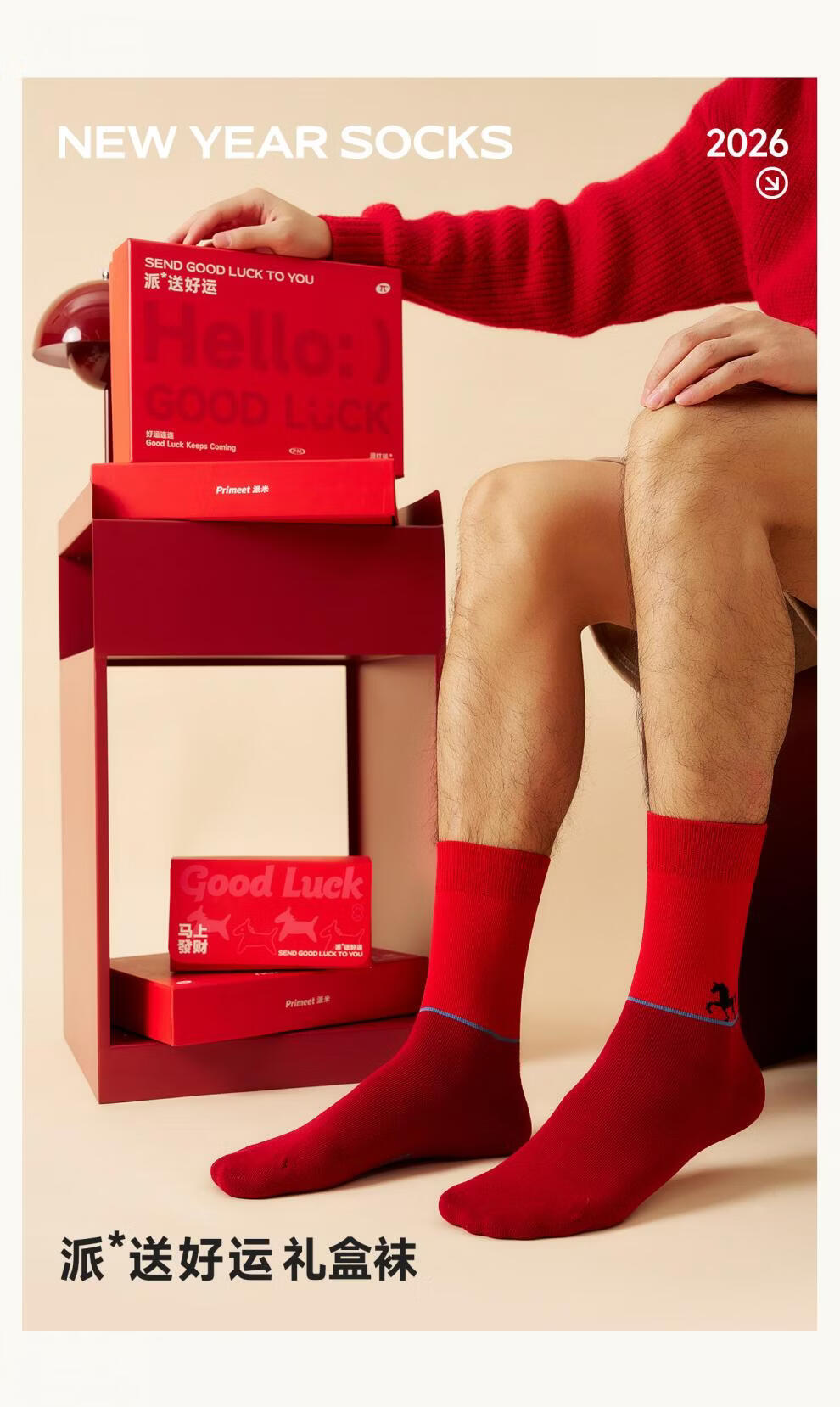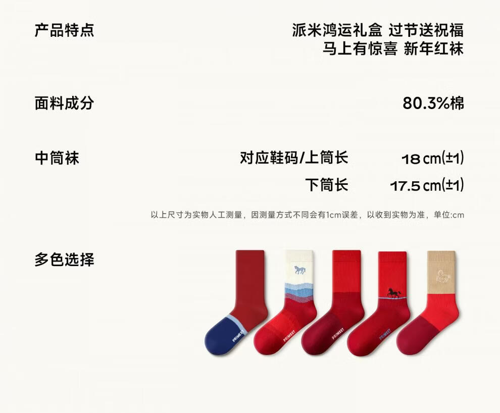 Pami's zodiac year socks men's autumn and winter warm mid-calf socks 2026 Year of the Horse red socks New Year's gift cotton socks Year of the Horse good luck - Pack_ Year of the Horse red gift box 5 pairs One size fits all (suitable for sizes 39-44)
