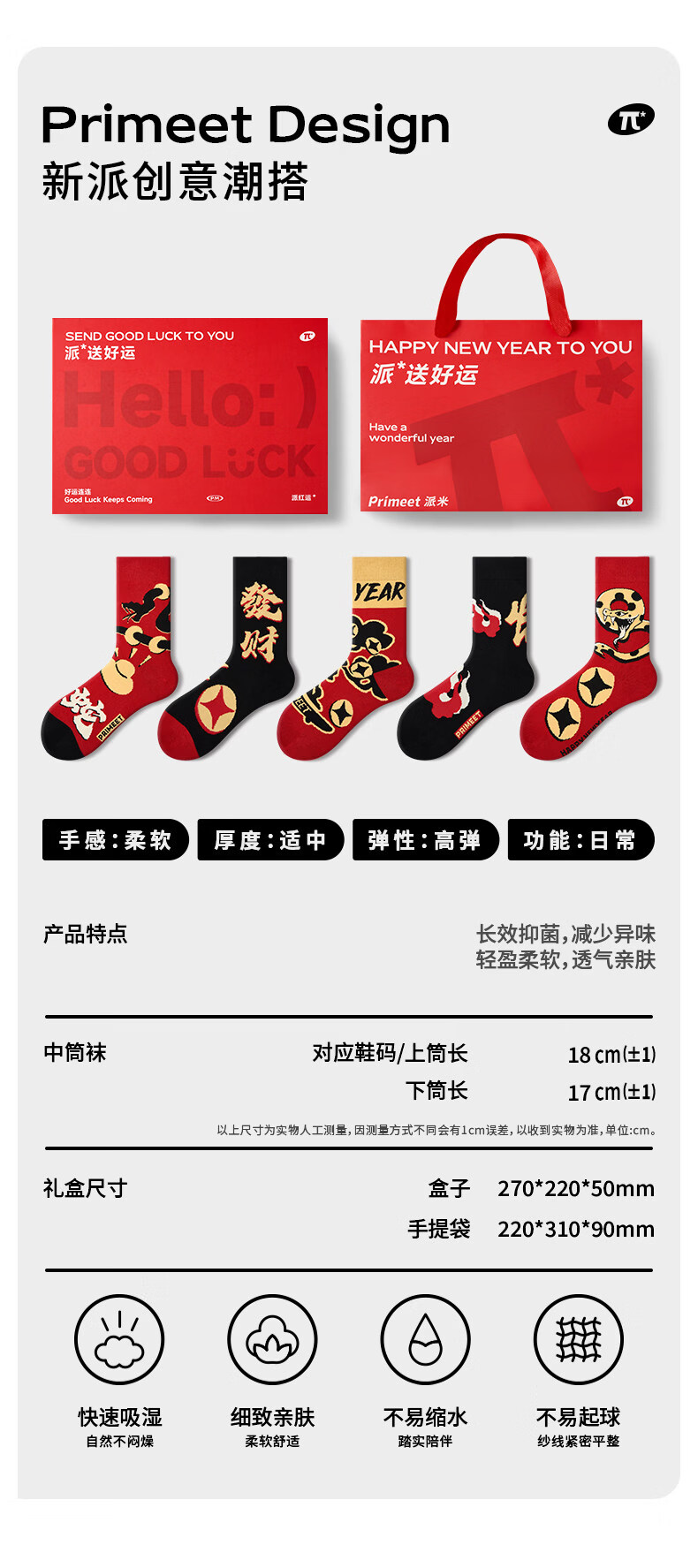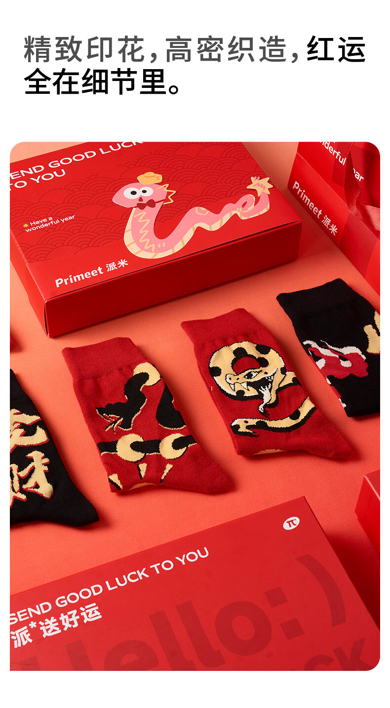 Pami (pami) men's zodiac year red socks spring and summer snake year mid-tube socks men's New Year gifts gift box spring and summer socks women's snake turns to heaven red gift box one size fits all sizes 36-43 7A_free gift box gift bag + can write greeting cards
