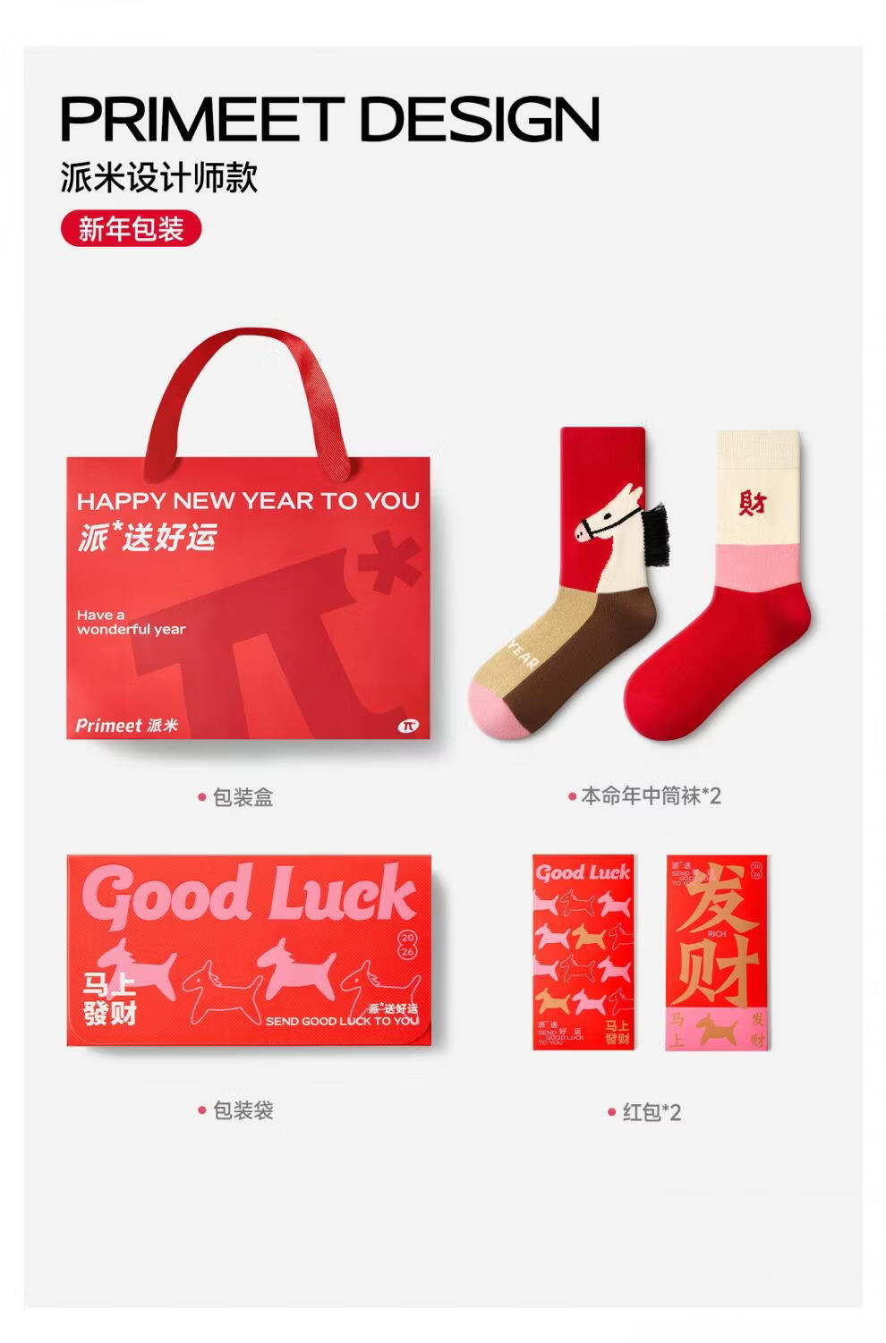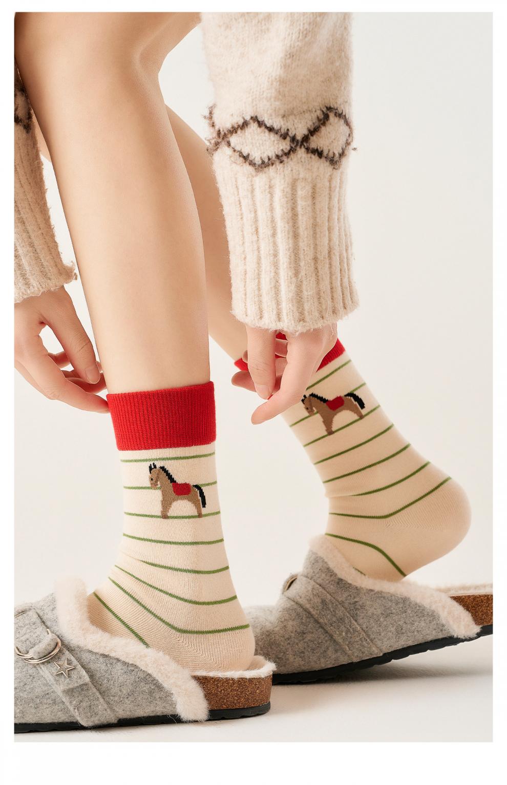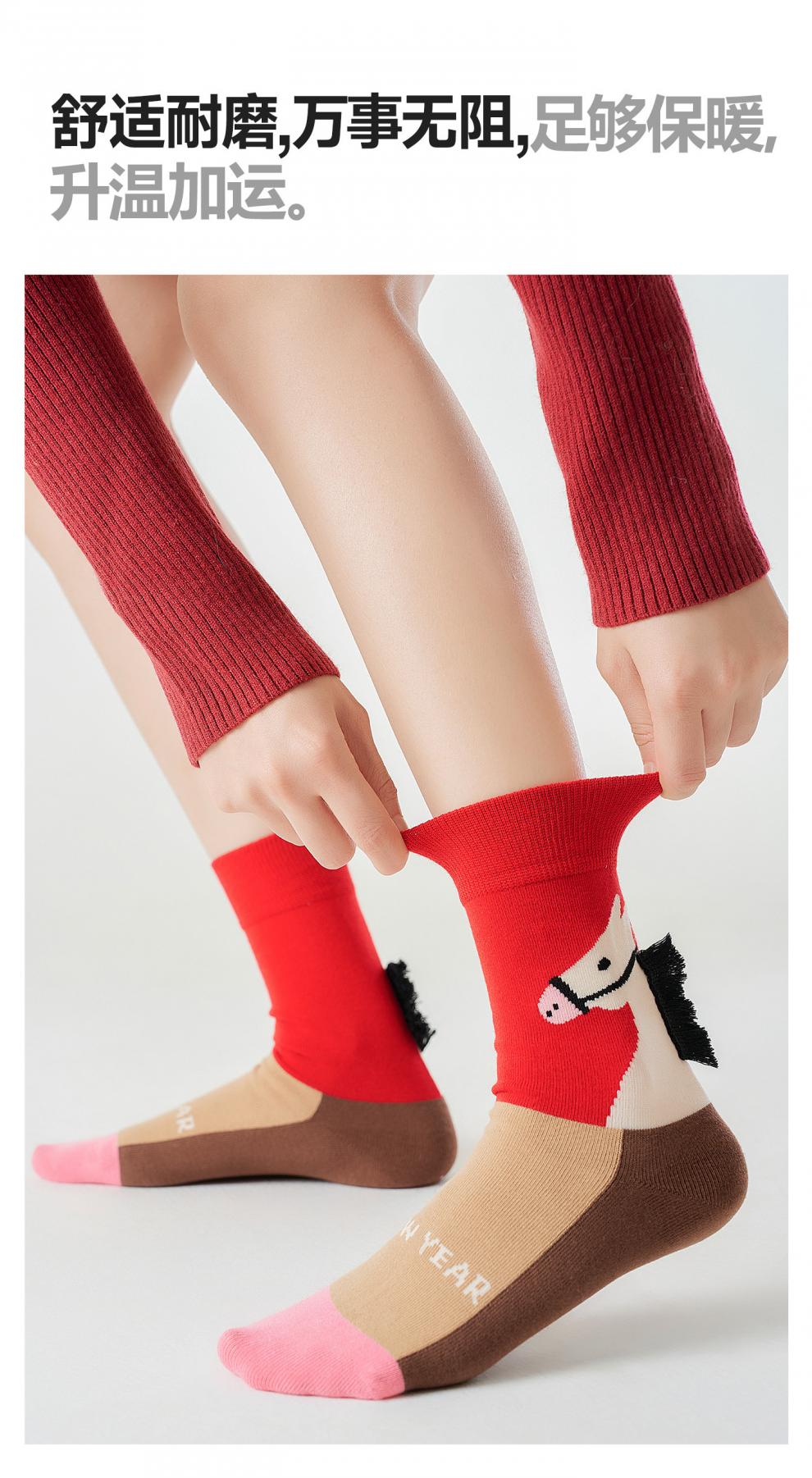 Pami Year of the Horse Red Socks for Women 2026 New Year Autumn and Winter Mid-calf Socks Cute New Year Gift Gift Box Red Stockings Happy Jama_ Gift Box 2 Pairs One Size Fits All (Suitable for Sizes 36-39)