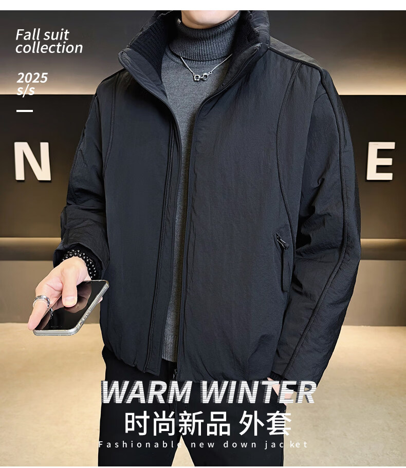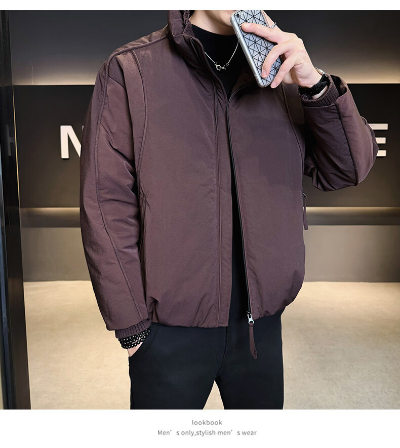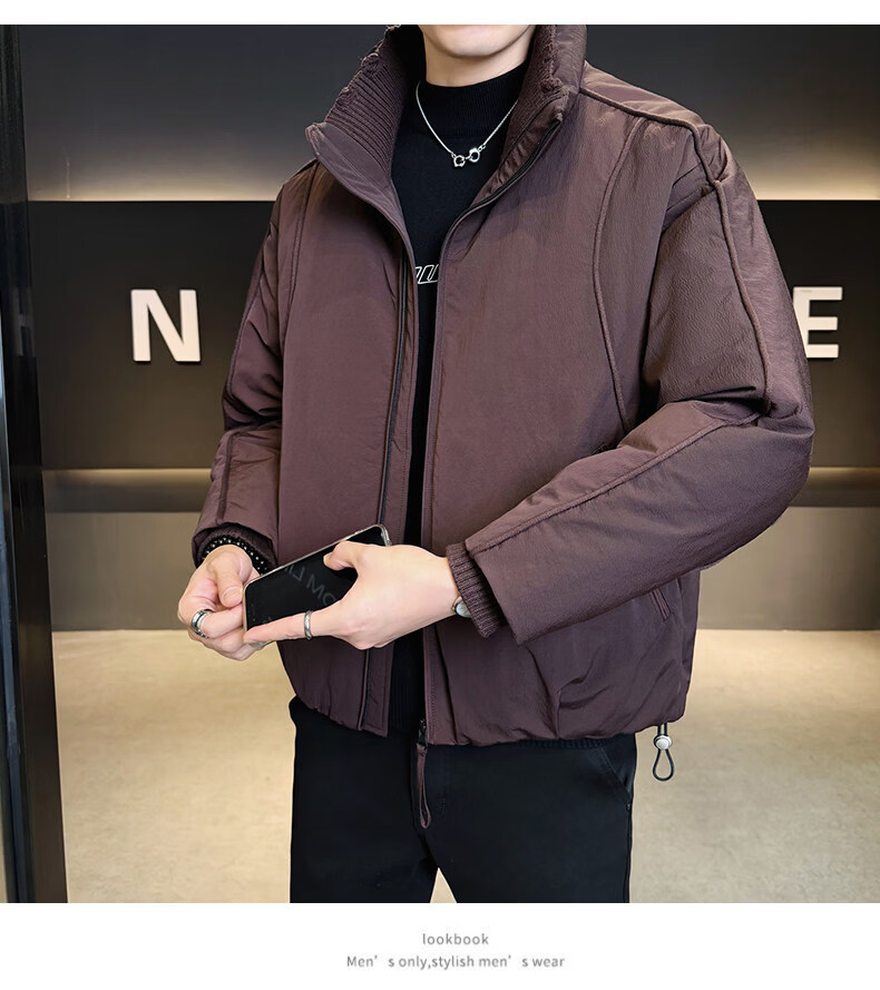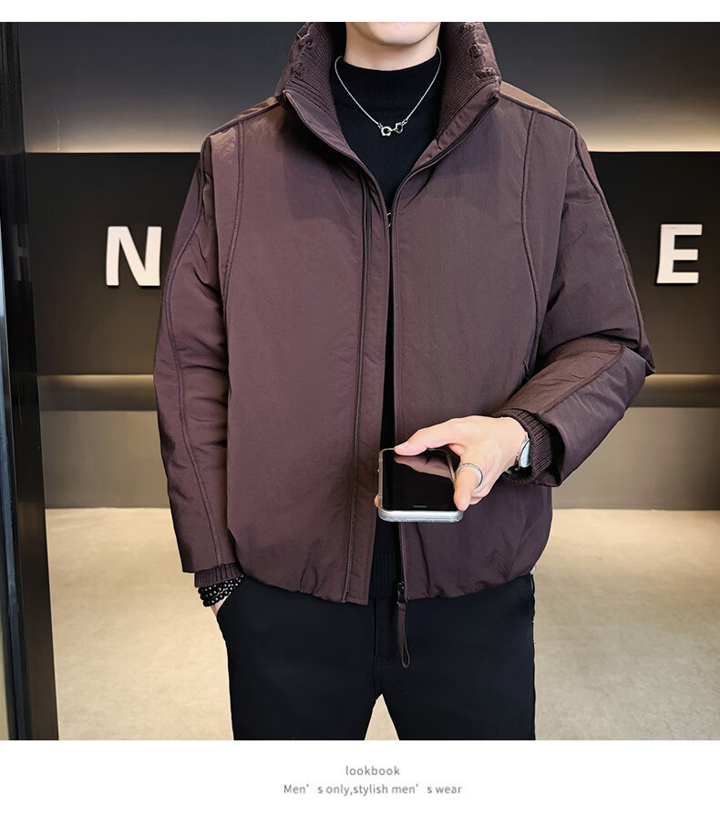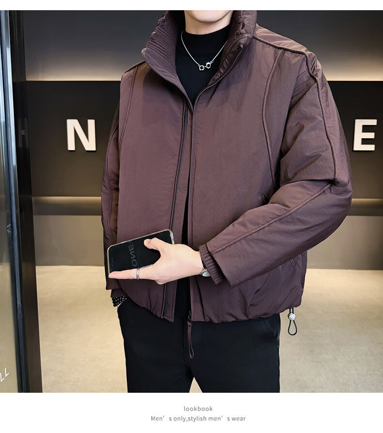KBXNG Jinba short workwear down jacket men's new winter trendy brand handsome stand-up collar jacket thickened warm and cold-resistant jacket purple 3XL