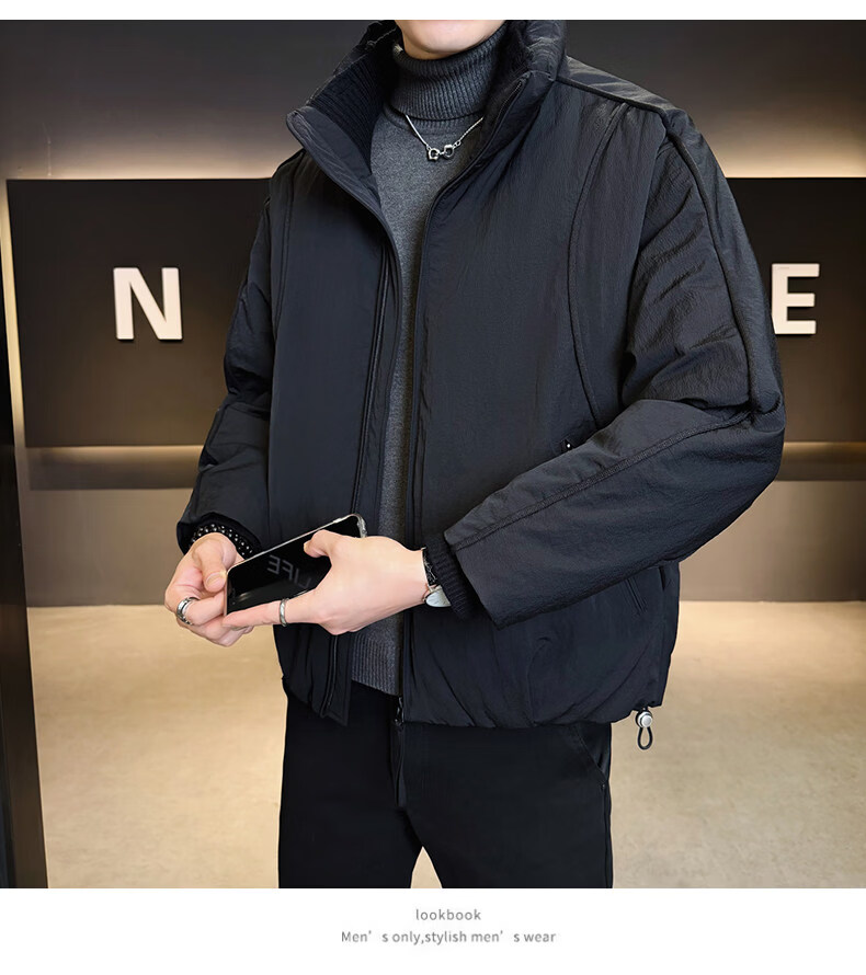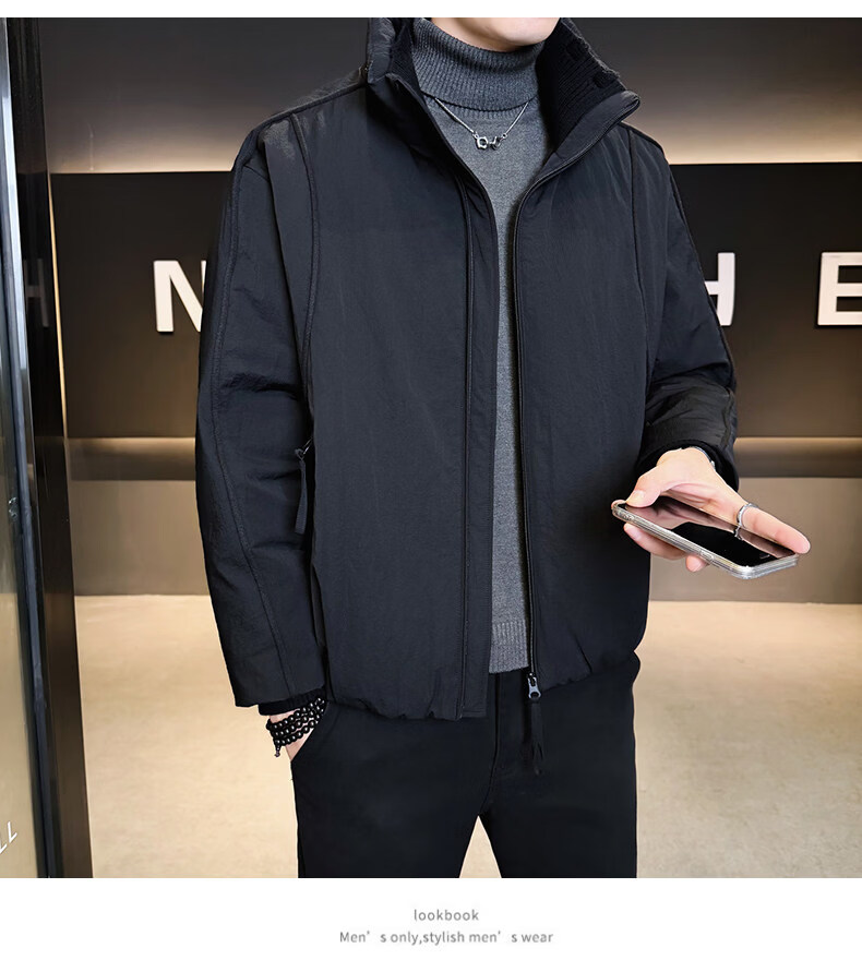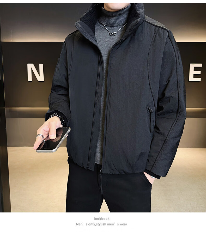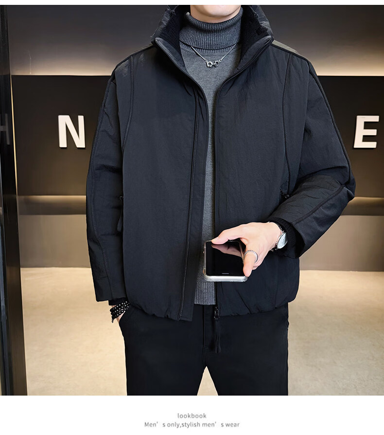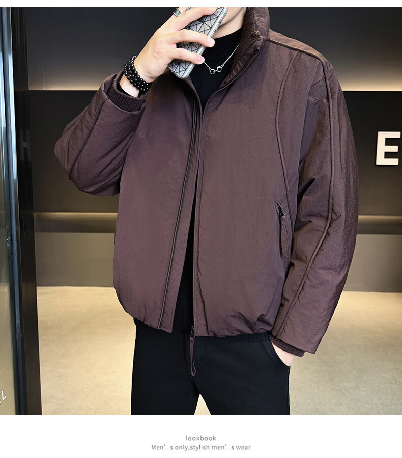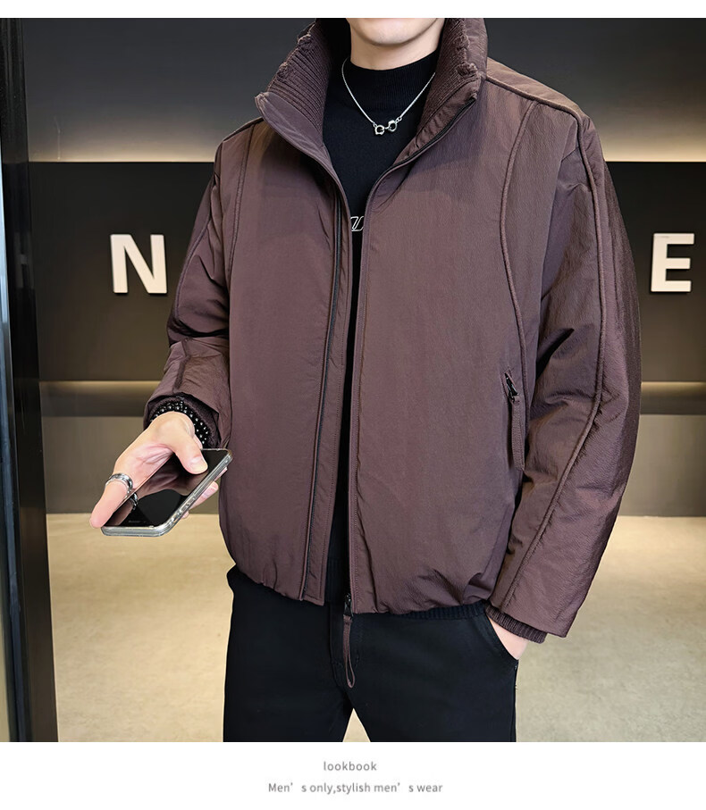 KBXNG Jinba short workwear down jacket men's new winter trendy brand handsome stand-up collar jacket thickened warm and cold-resistant jacket purple 3XL