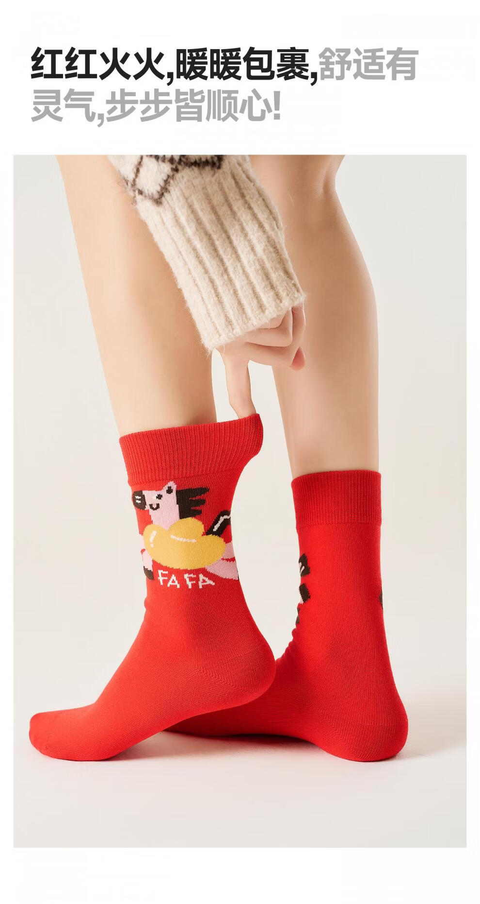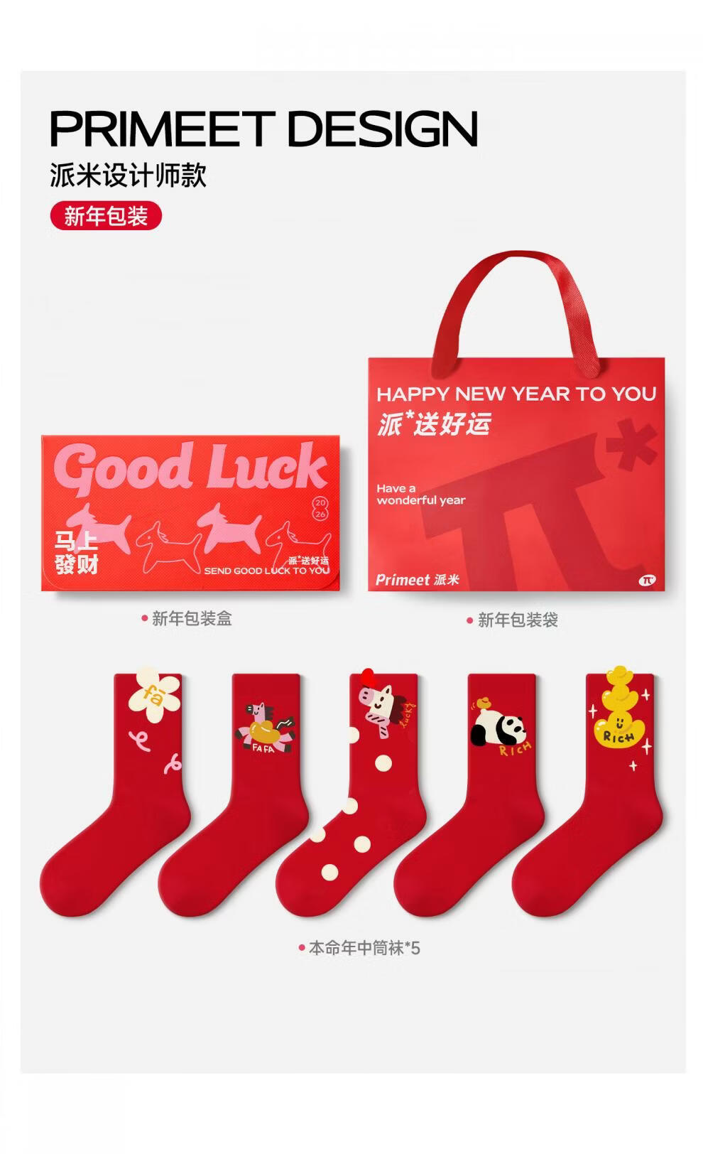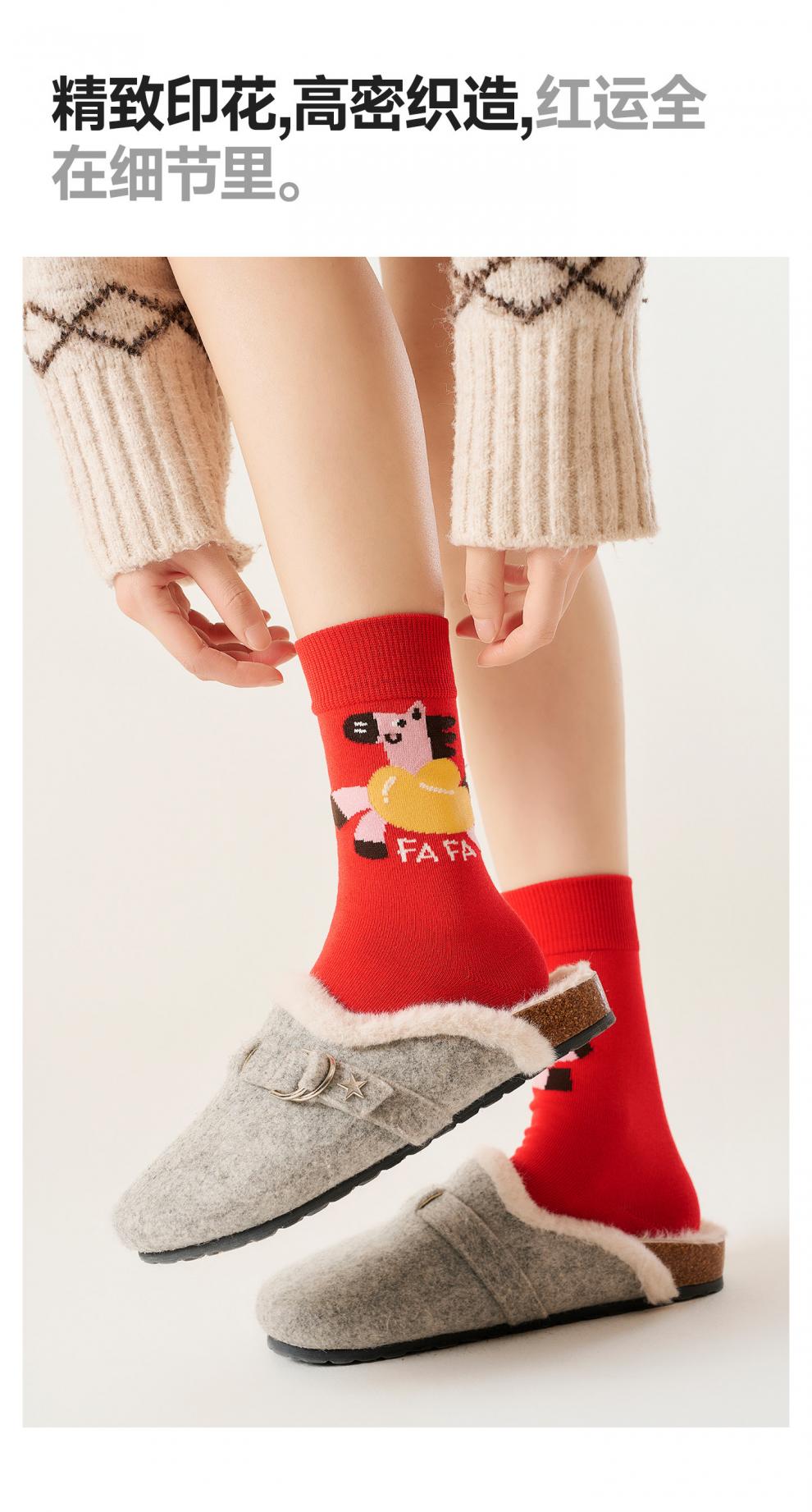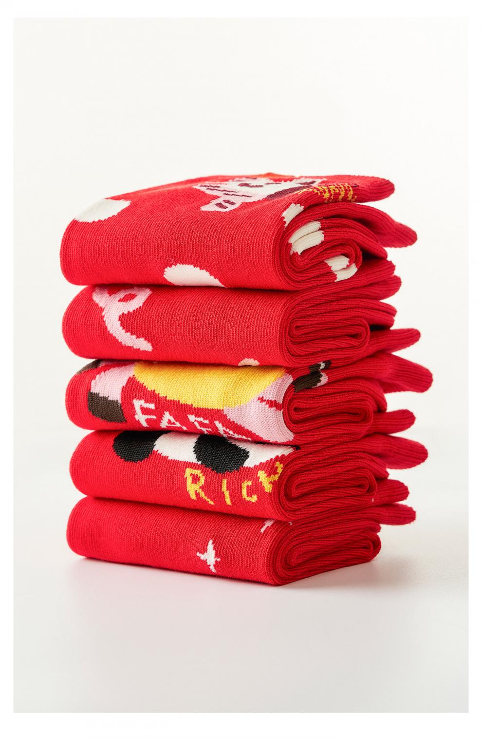 Pami Red Socks Women's Autumn and Winter Mid-Tube Socks Zodiac Year Red Socks 2026 Year of the Horse New Year Gift Box Pack Instant Success - Pack of 5 pairs One size fits all (suitable for sizes 36-43)