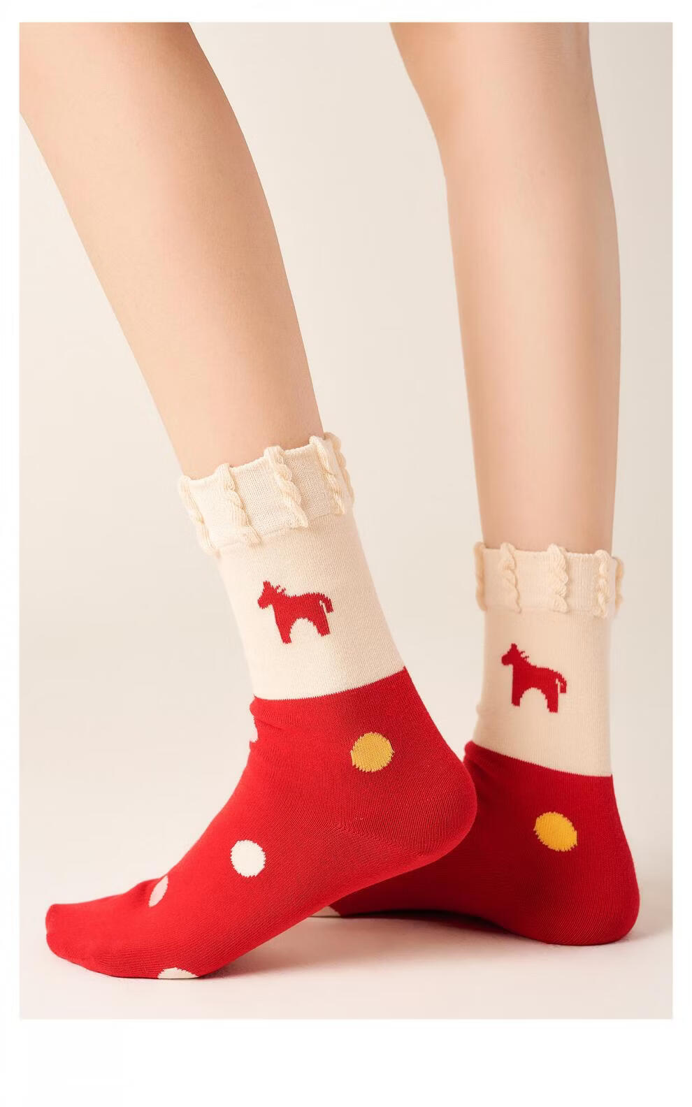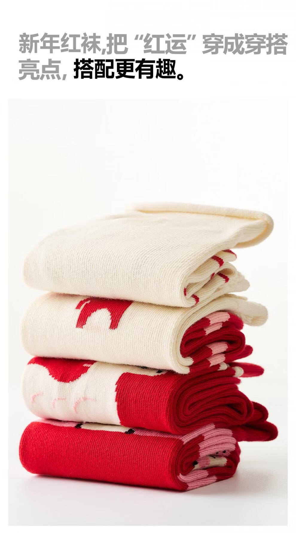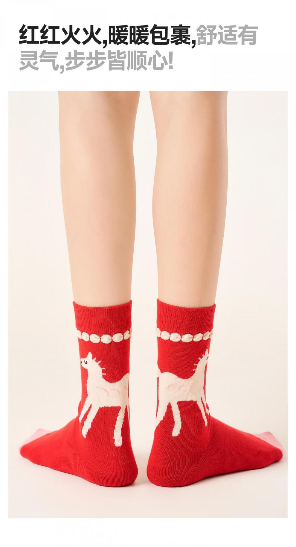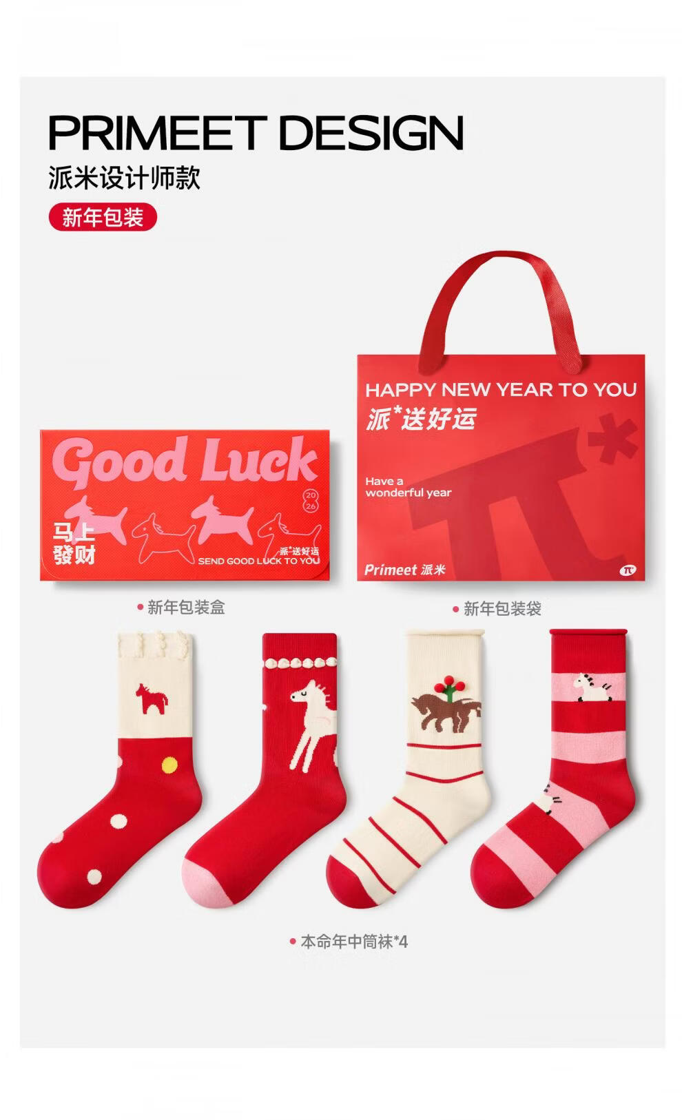 Pami Red Socks Year of the Horse Zodiac Year Socks Women's Autumn and Winter Mid-Tube Socks 2026 New Year Gift Box New Gifts Immediately Cute-Pack (Designed Gift Box) 4 Pairs One Size Suitable for Sizes 36-39