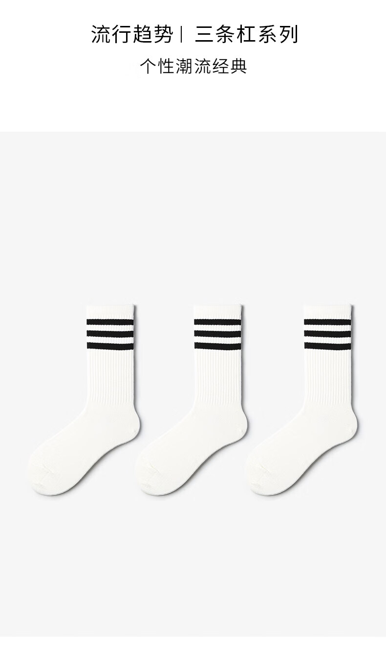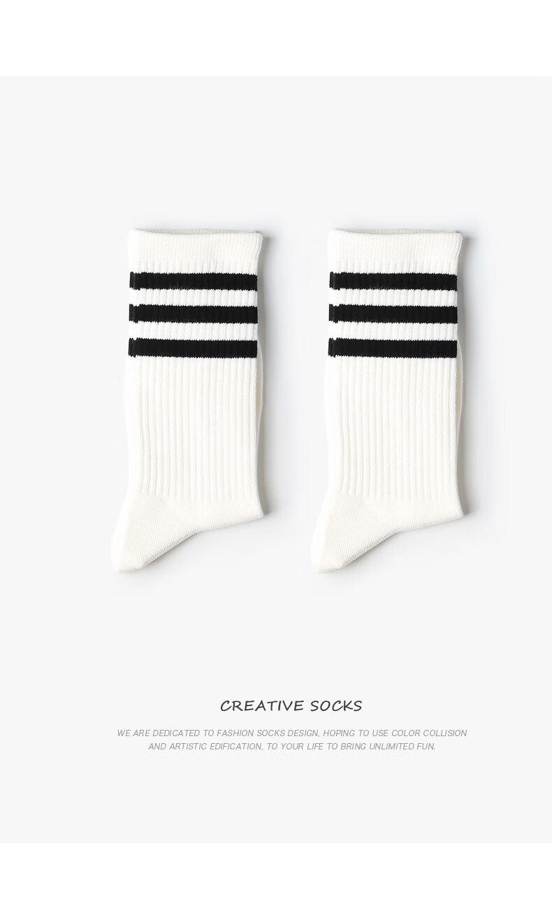 Pami (pami) white socks sports spring and summer women's running Japanese college style black striped men's spring and summer mid-calf socks long socks cotton three meters white one-size-fits-all couple size (suitable for sizes 36-43)