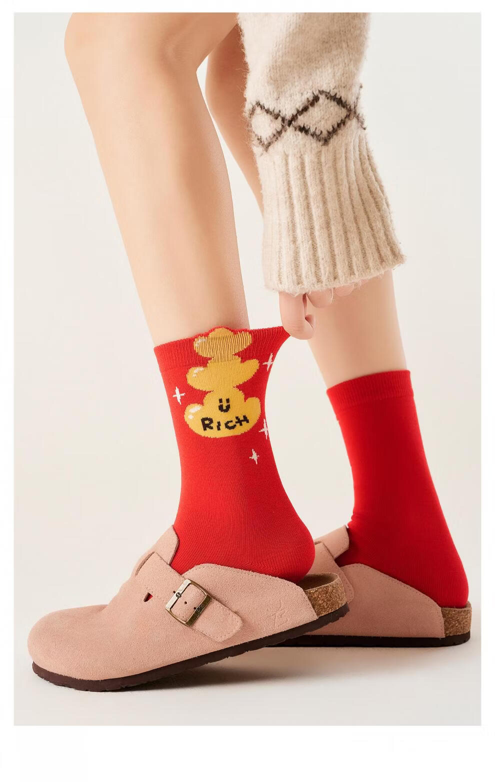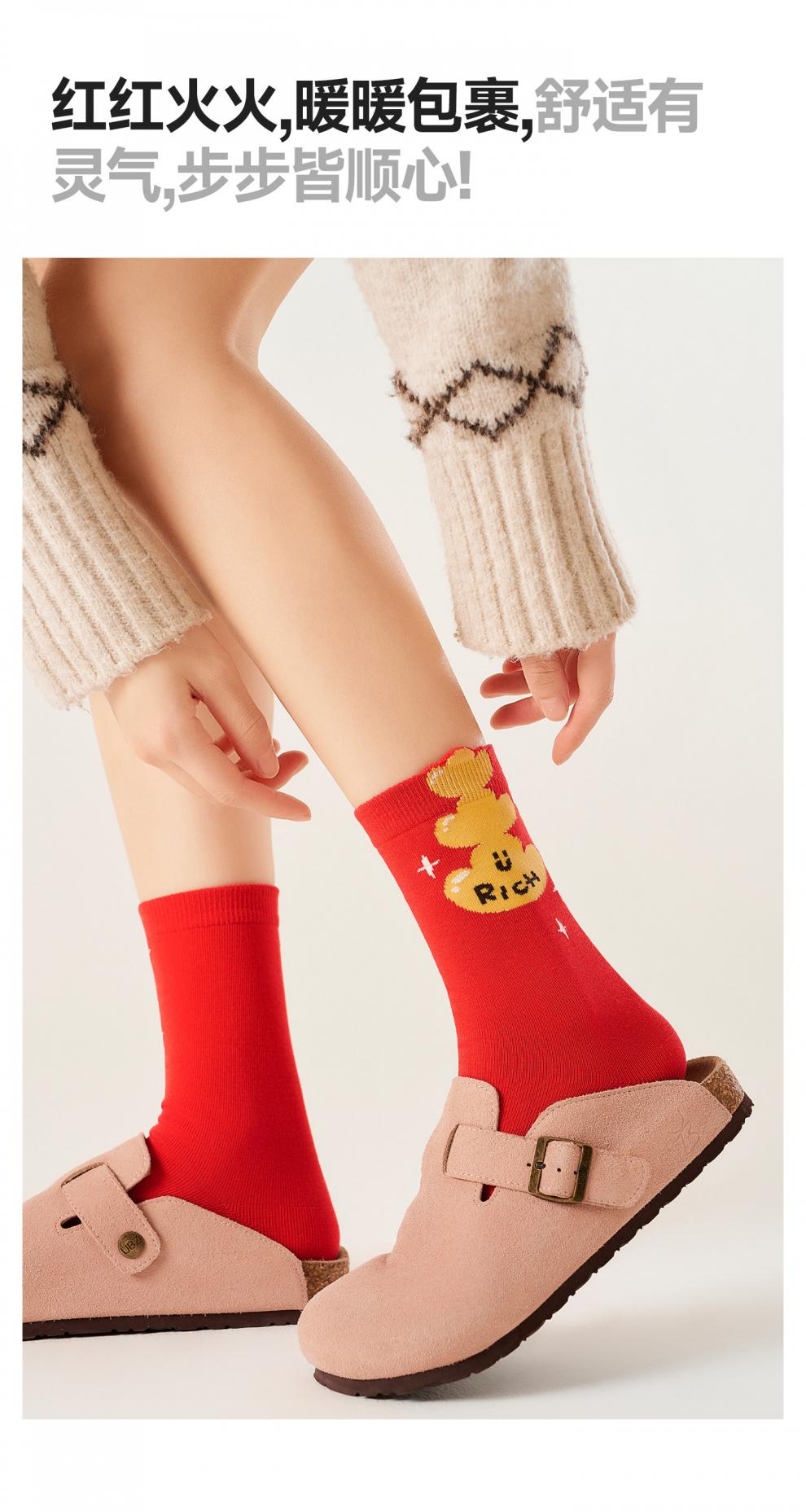 Pami (pami) zodiac year red socks for women, autumn and winter mid-calf socks, 2026 New Year, Year of the Horse, horse gift, red stockings, get rich immediately - pack of 2 pairs, one size fits all (suitable for sizes 36-39)