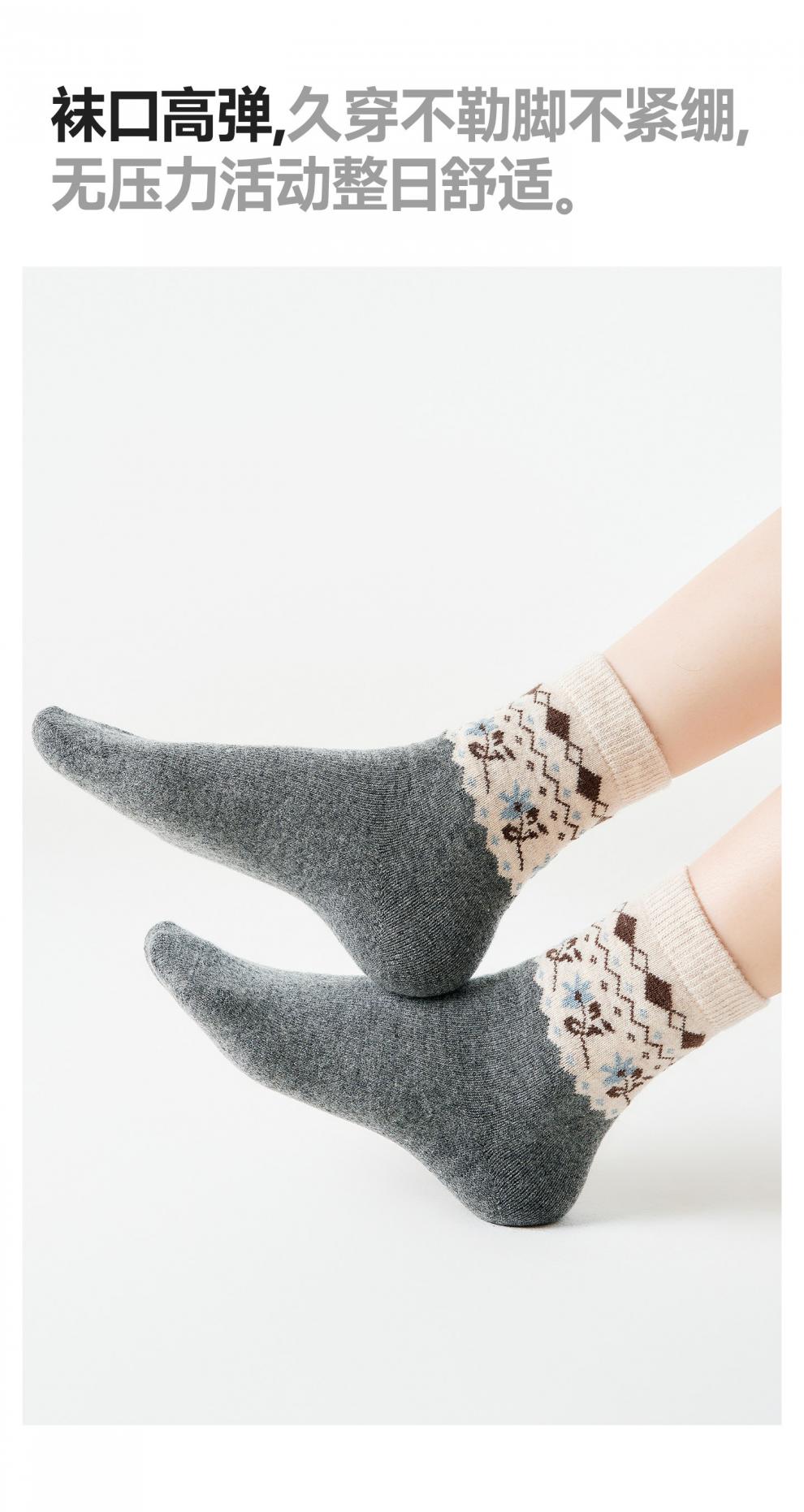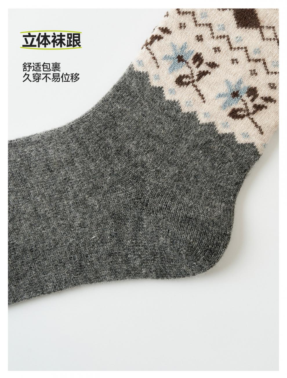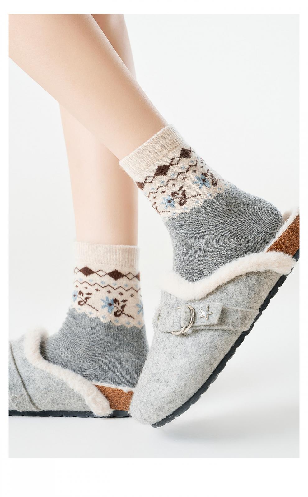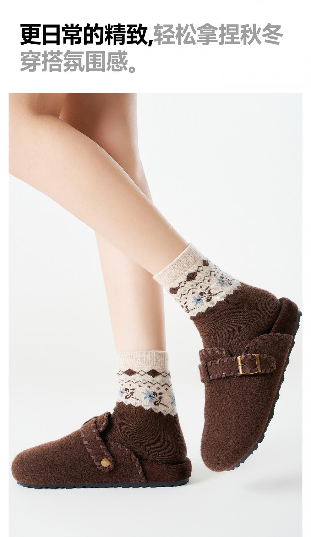Pami Fair Isle Socks Women's Autumn and Winter 2025 New Thickened Warm Mid-Tube Socks Winter Sleeping Floor Socks Flower Socks - Pack of 4 Pairs One-size-fits-all Suitable for sizes 36-39