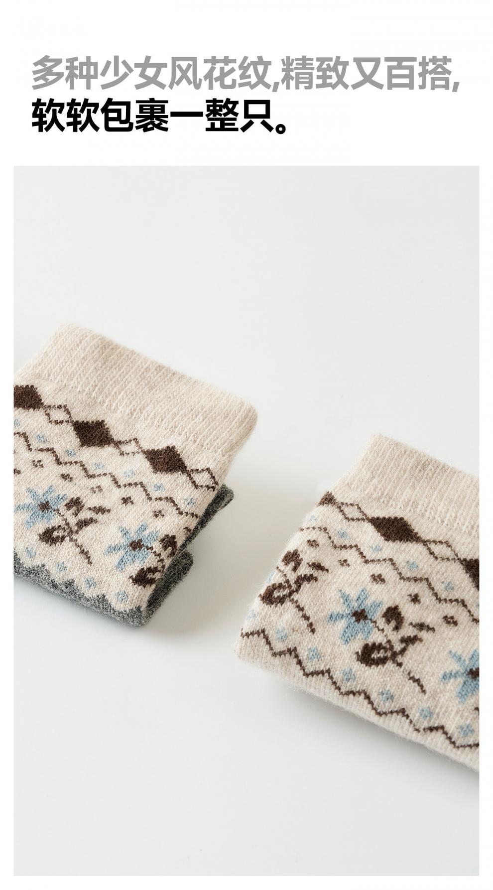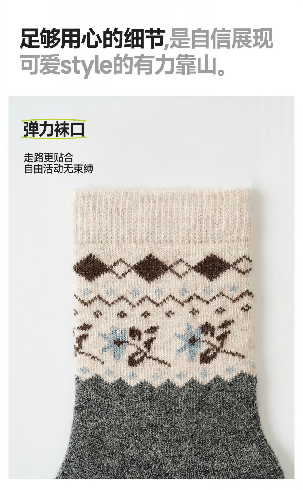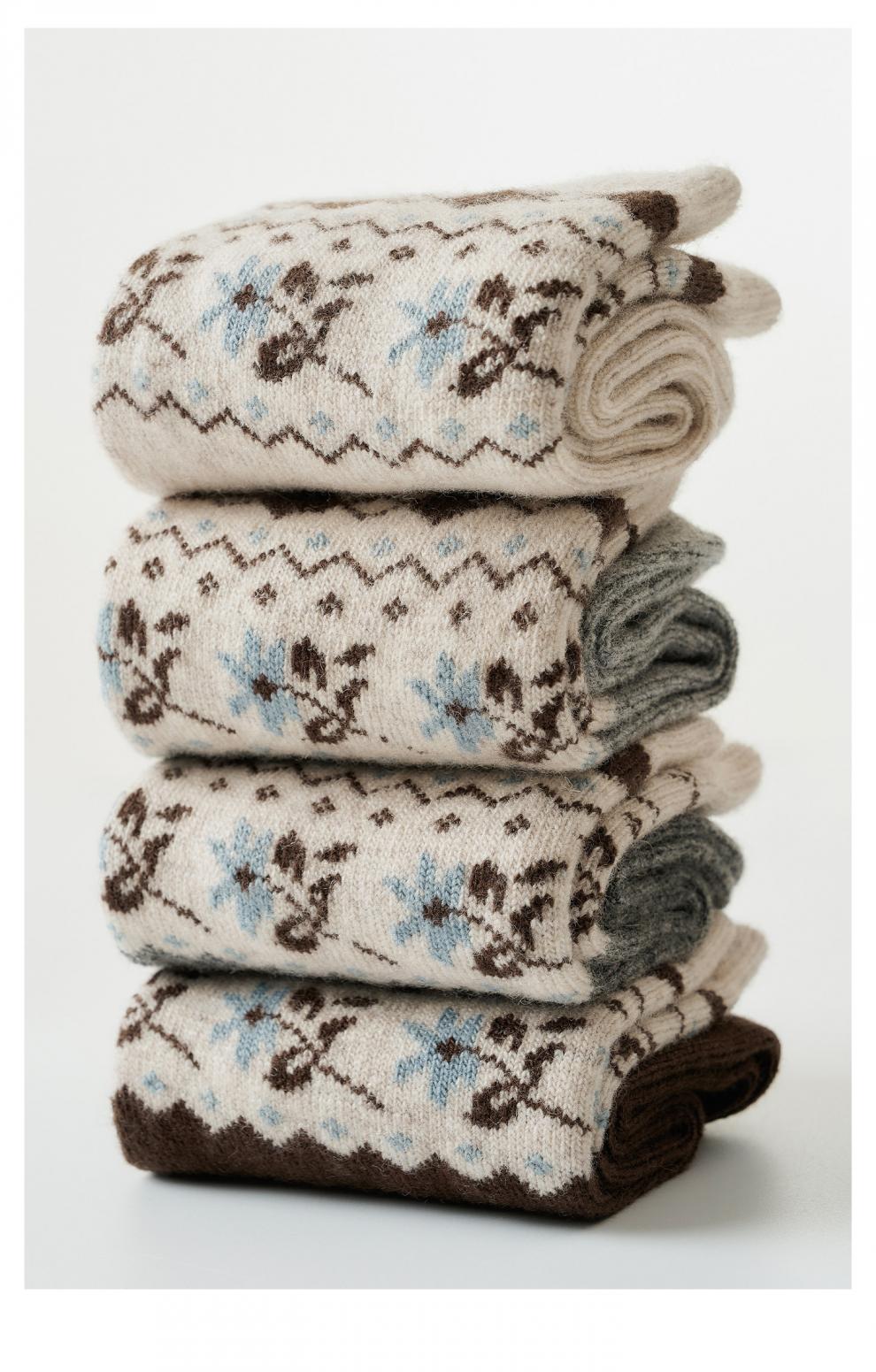 Pami Fair Isle Socks Women's Autumn and Winter 2025 New Thickened Warm Mid-Tube Socks Winter Sleeping Floor Socks Flower Socks - Pack of 4 Pairs One-size-fits-all Suitable for sizes 36-39