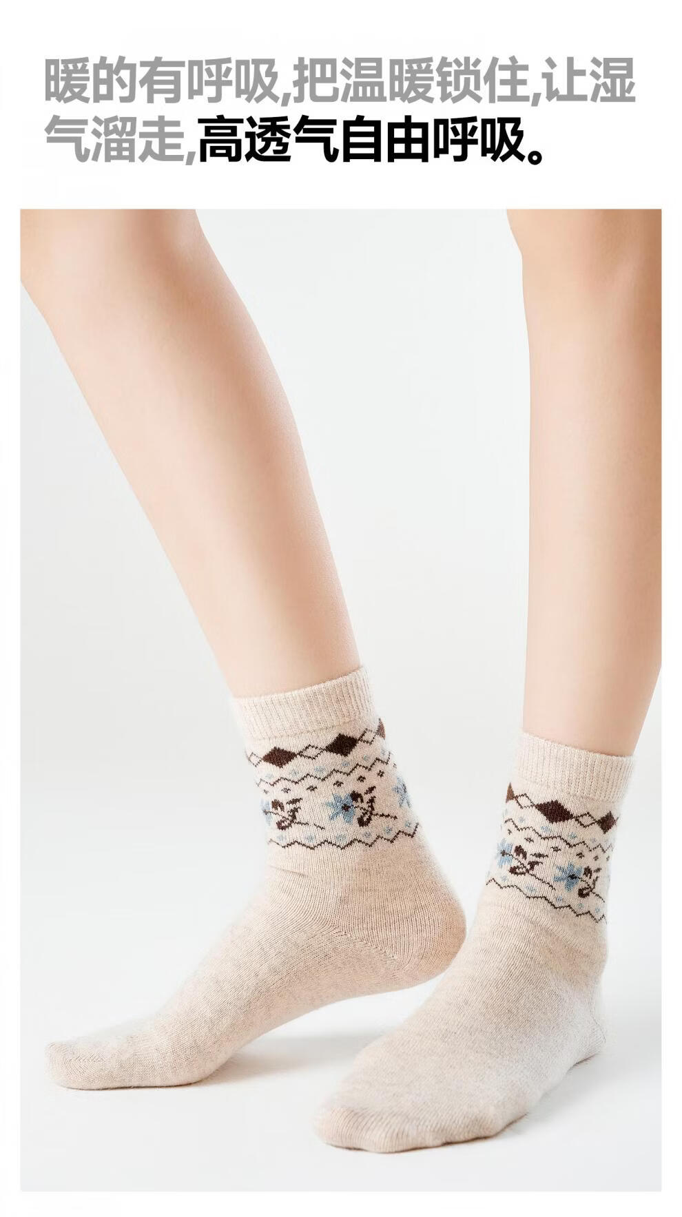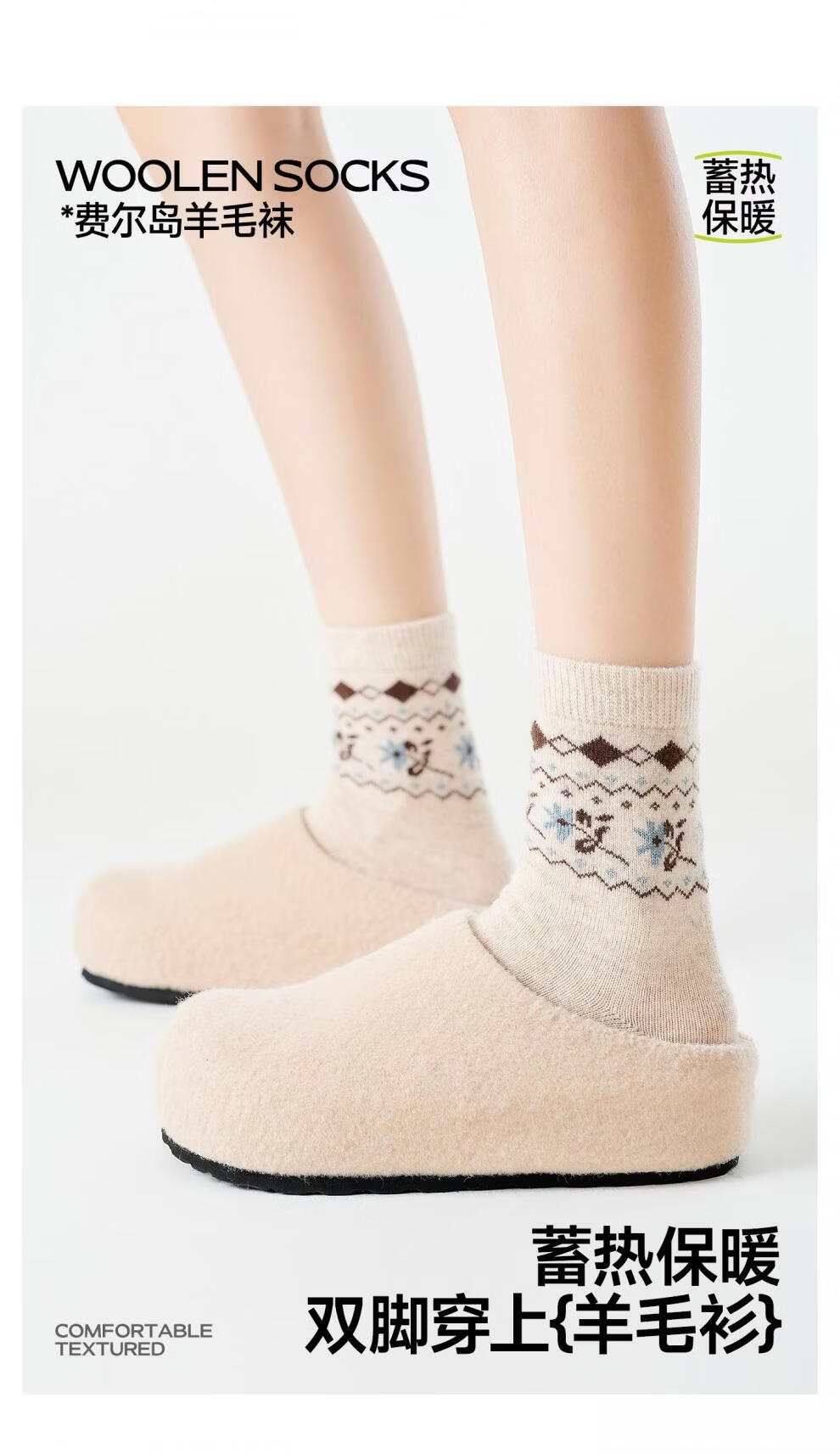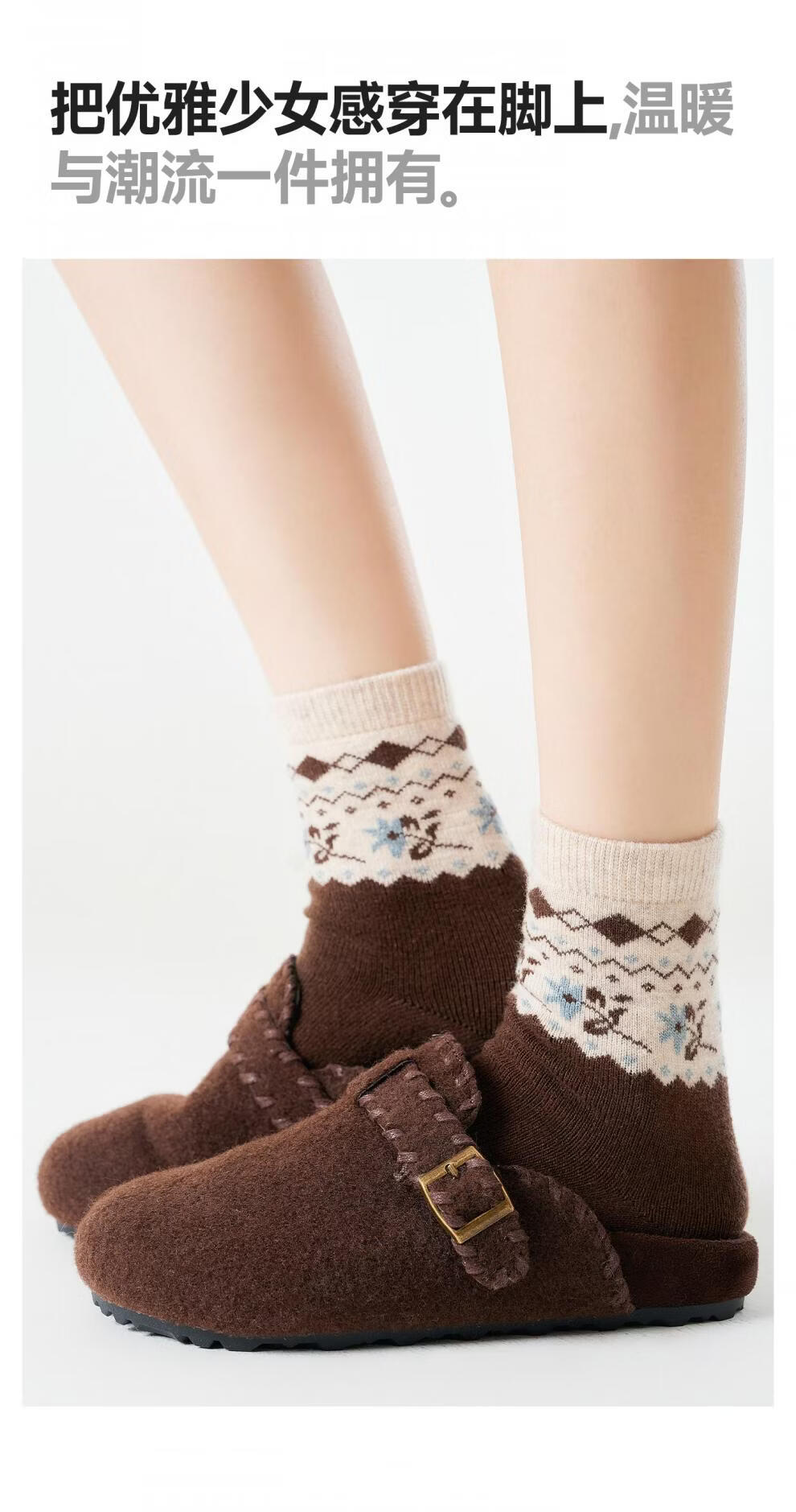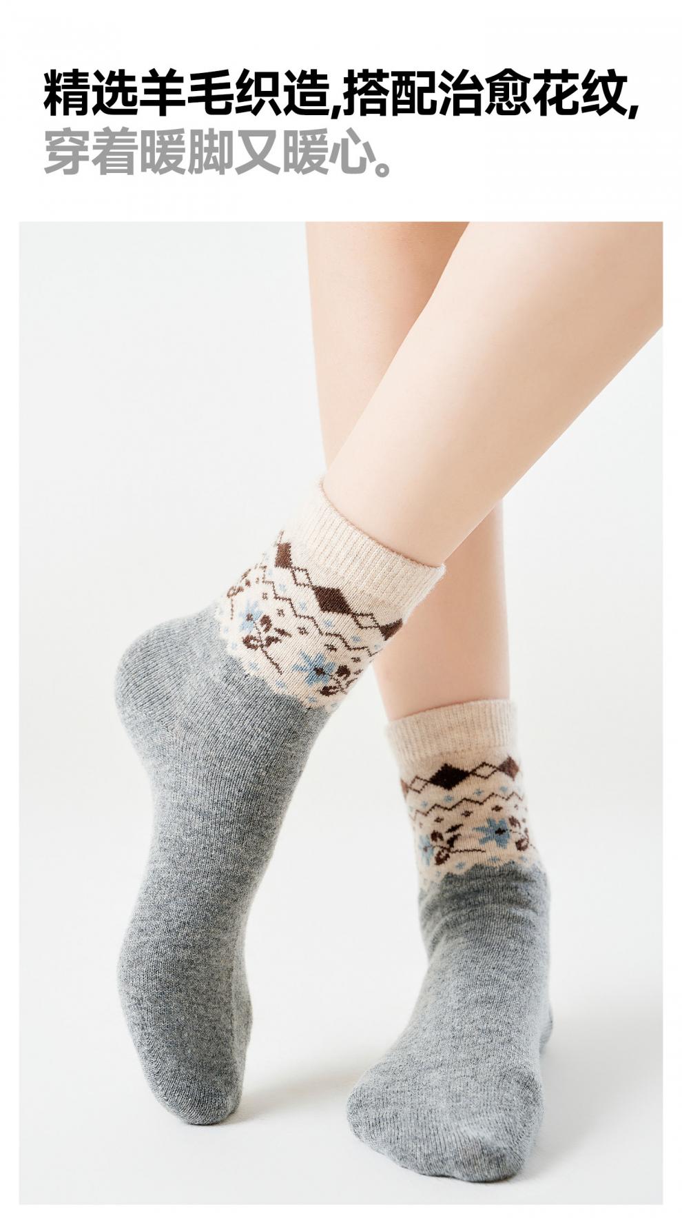 Pami Fair Isle Socks Women's Autumn and Winter 2025 New Thickened Warm Mid-Tube Socks Winter Sleeping Floor Socks Flower Socks - Pack of 4 Pairs One-size-fits-all Suitable for sizes 36-39