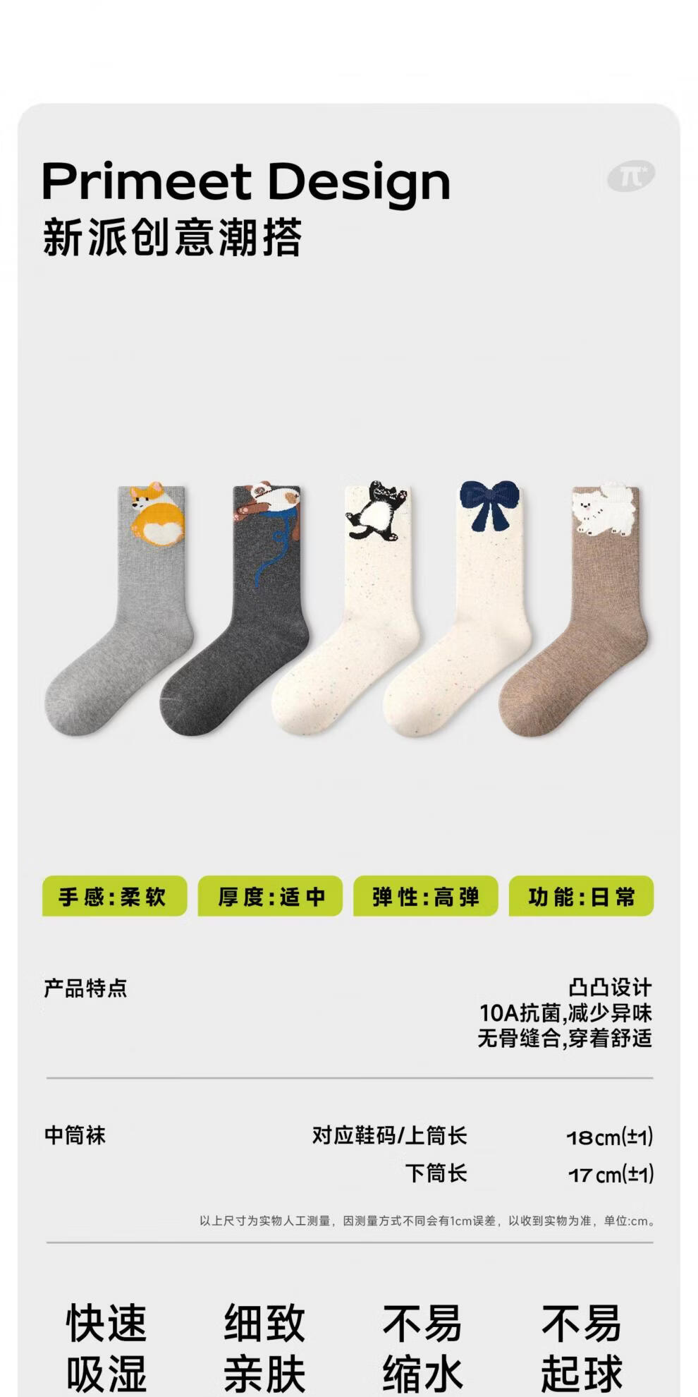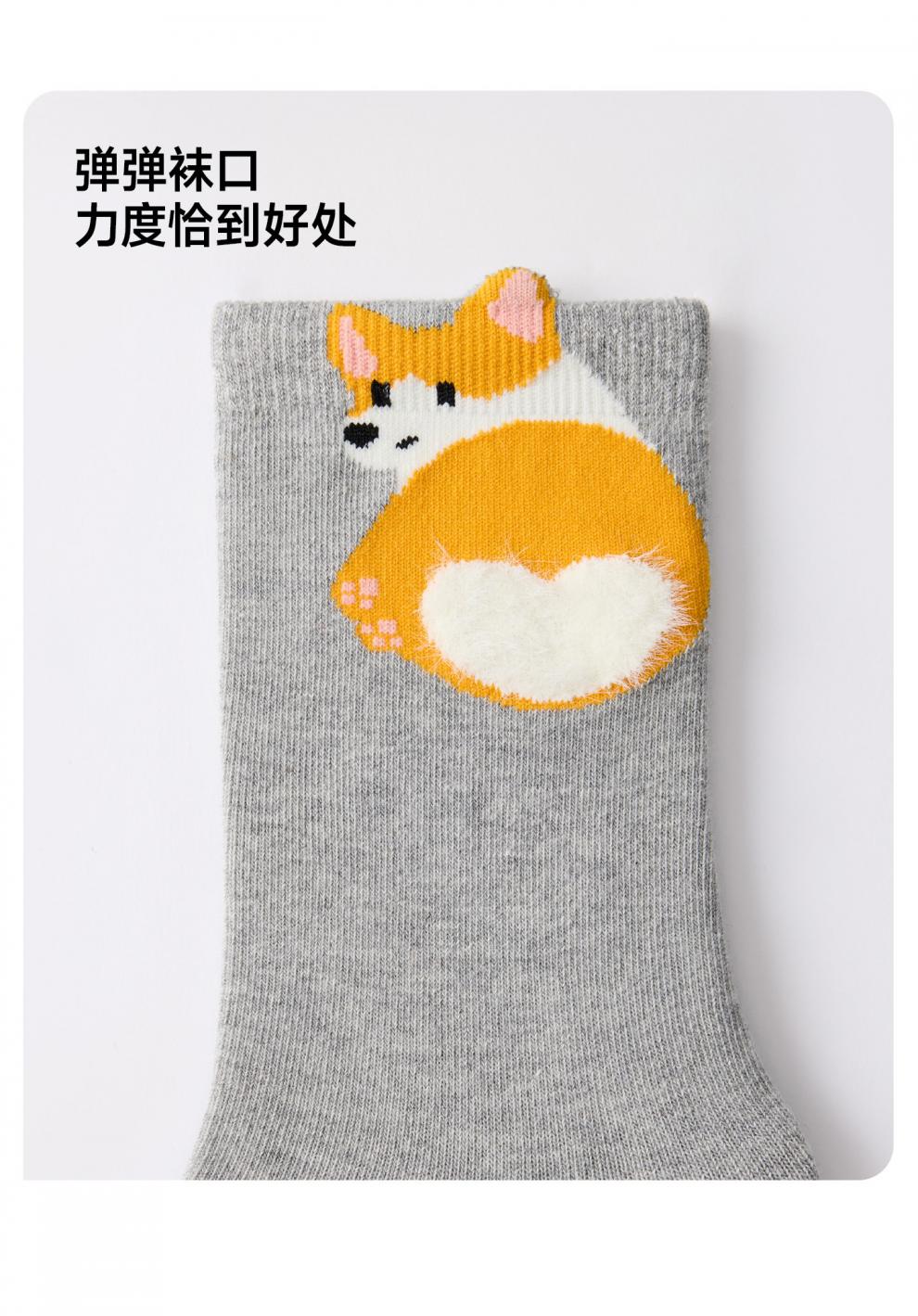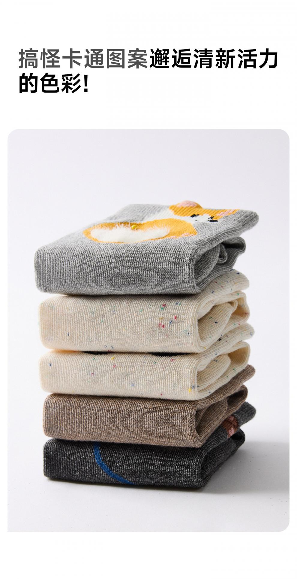 Pami Gray Socks Women's Spring and Autumn Mid-calf Socks Idea Yarn 2025 New Japanese Cartoon Cute Autumn and Winter Long Socks Stretch - Pack of 5 pairs One size fits all (suitable for sizes 36-39)