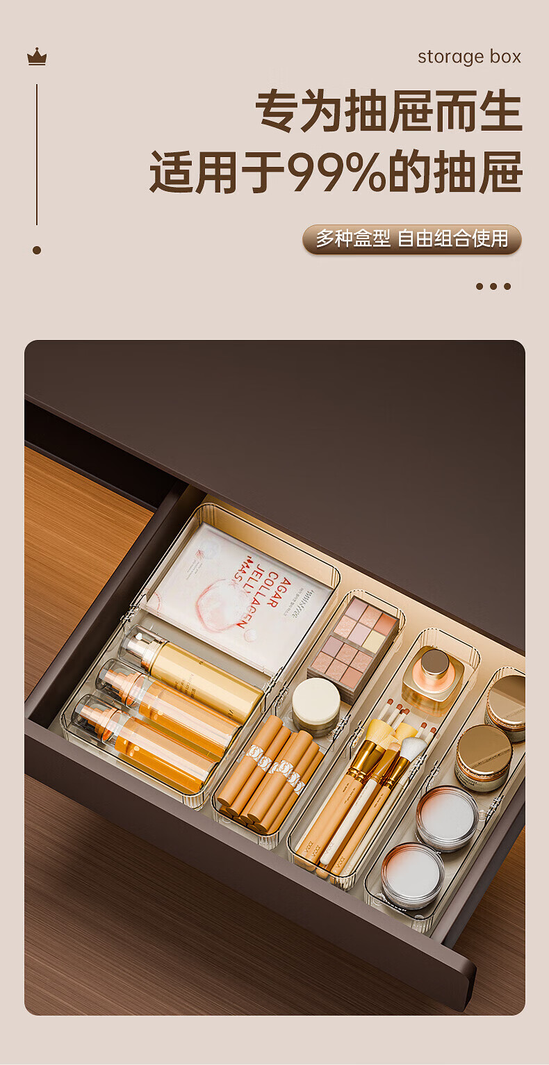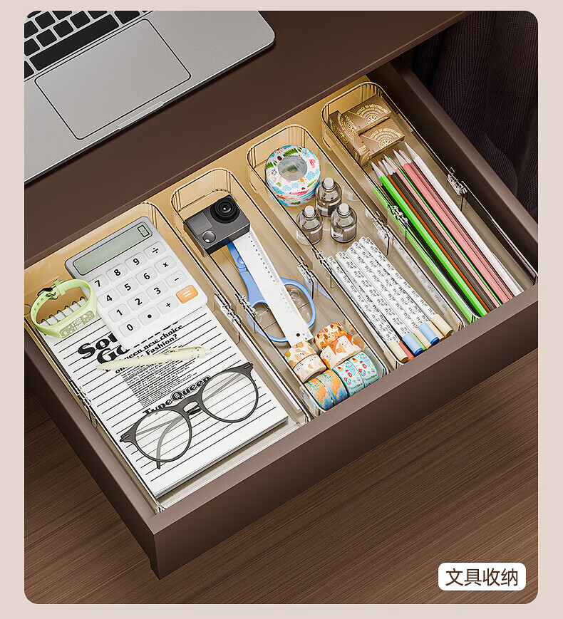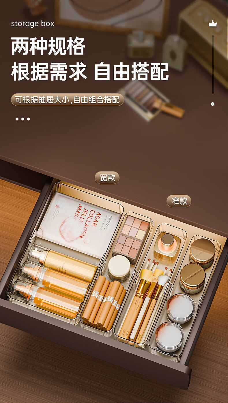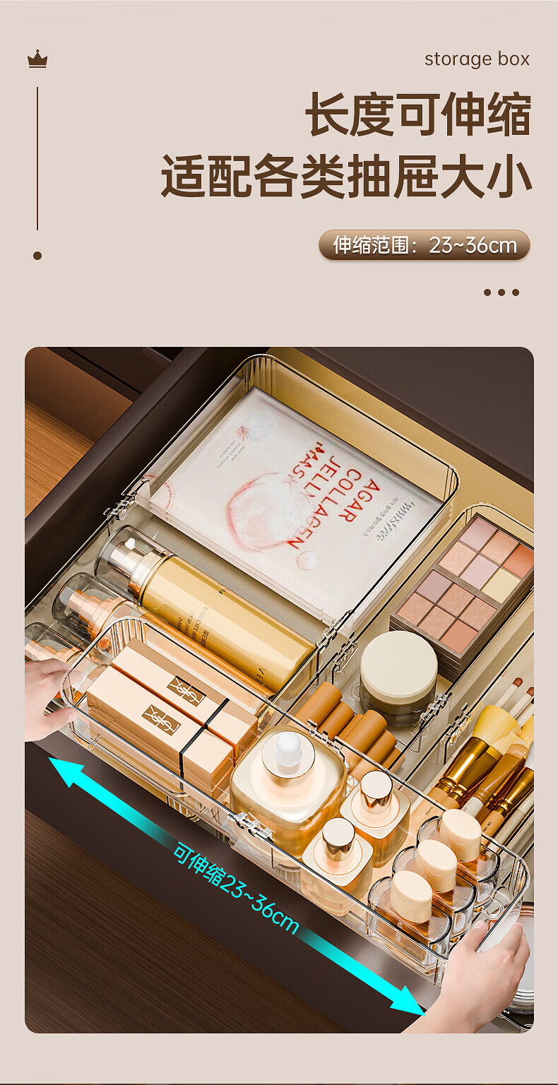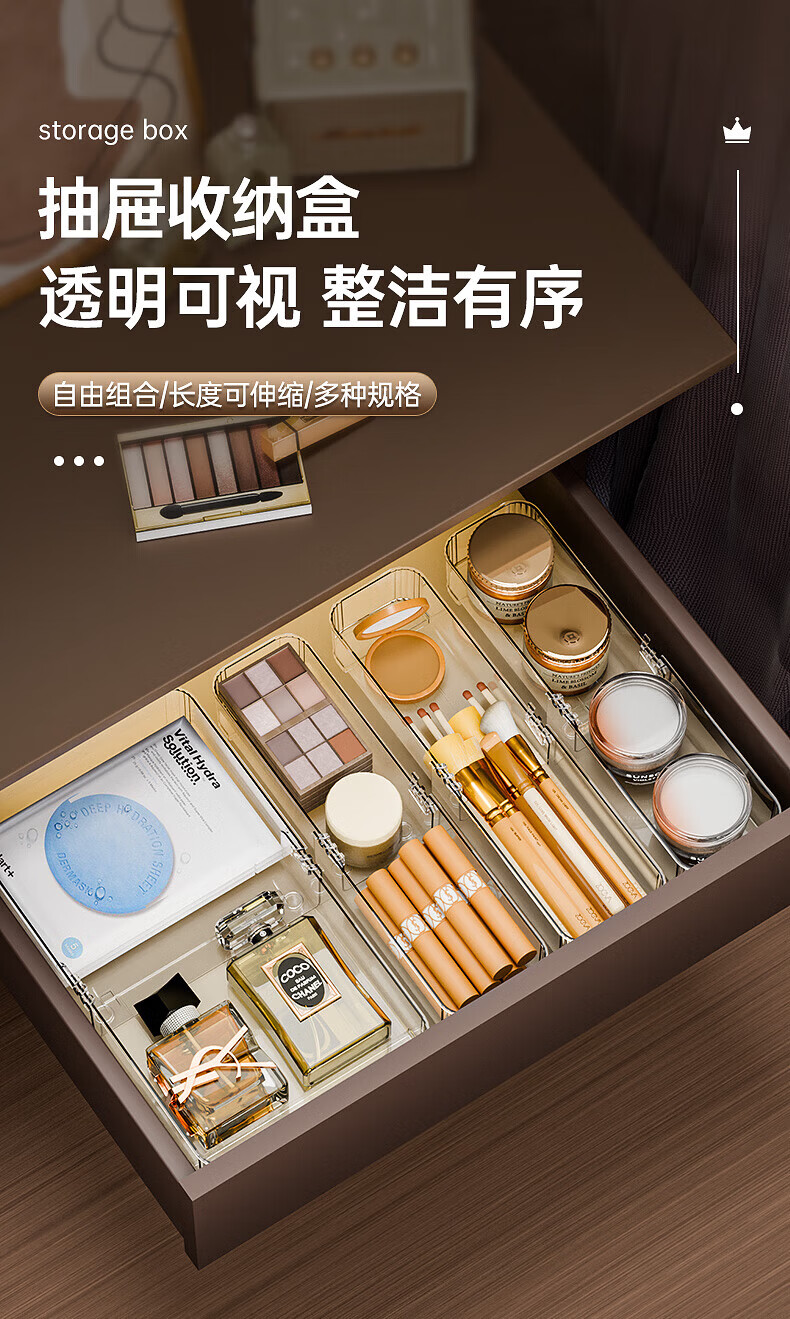 Straw Bear (DOCOXO) Drawer Storage Box Transparent Retractable Drawer Box Cosmetic Sundries Organizer Box Cutlery Drawer Storage Retractable Transparent Narrow Style 1 Pack Retractable