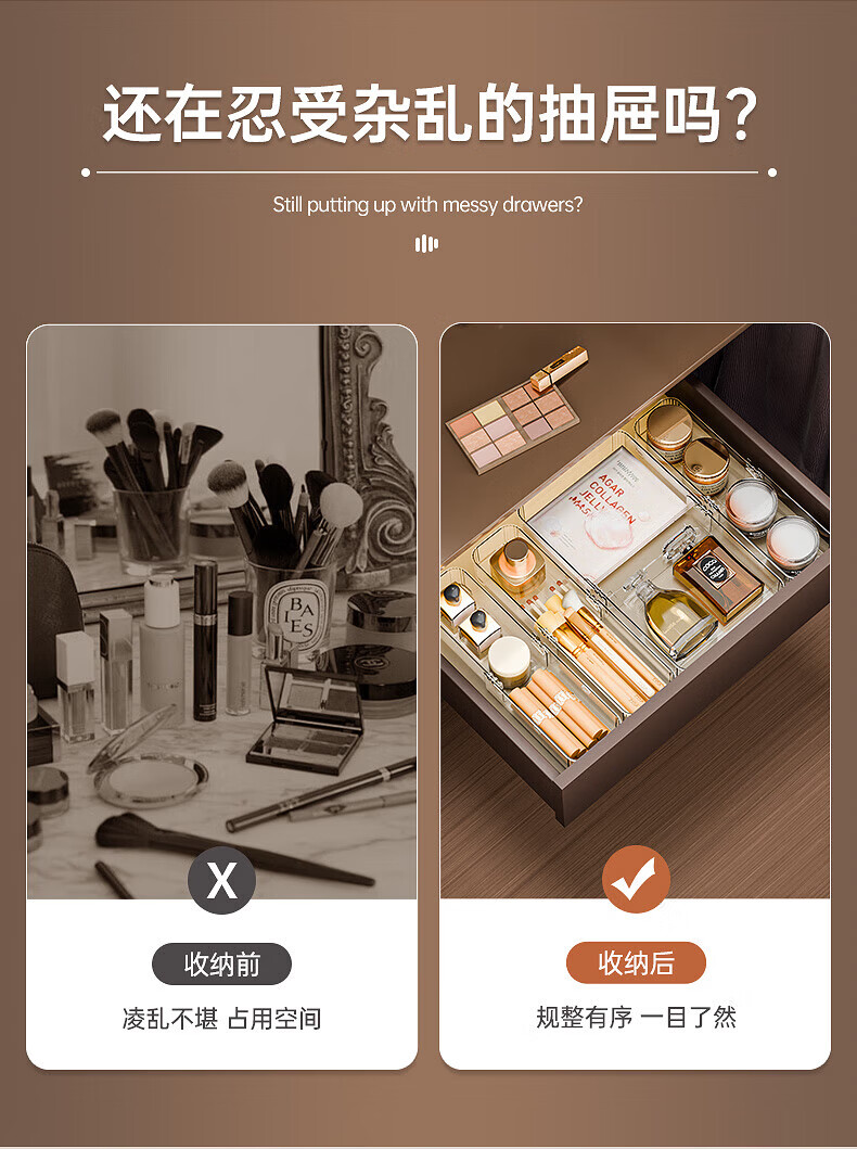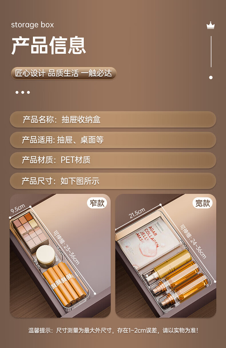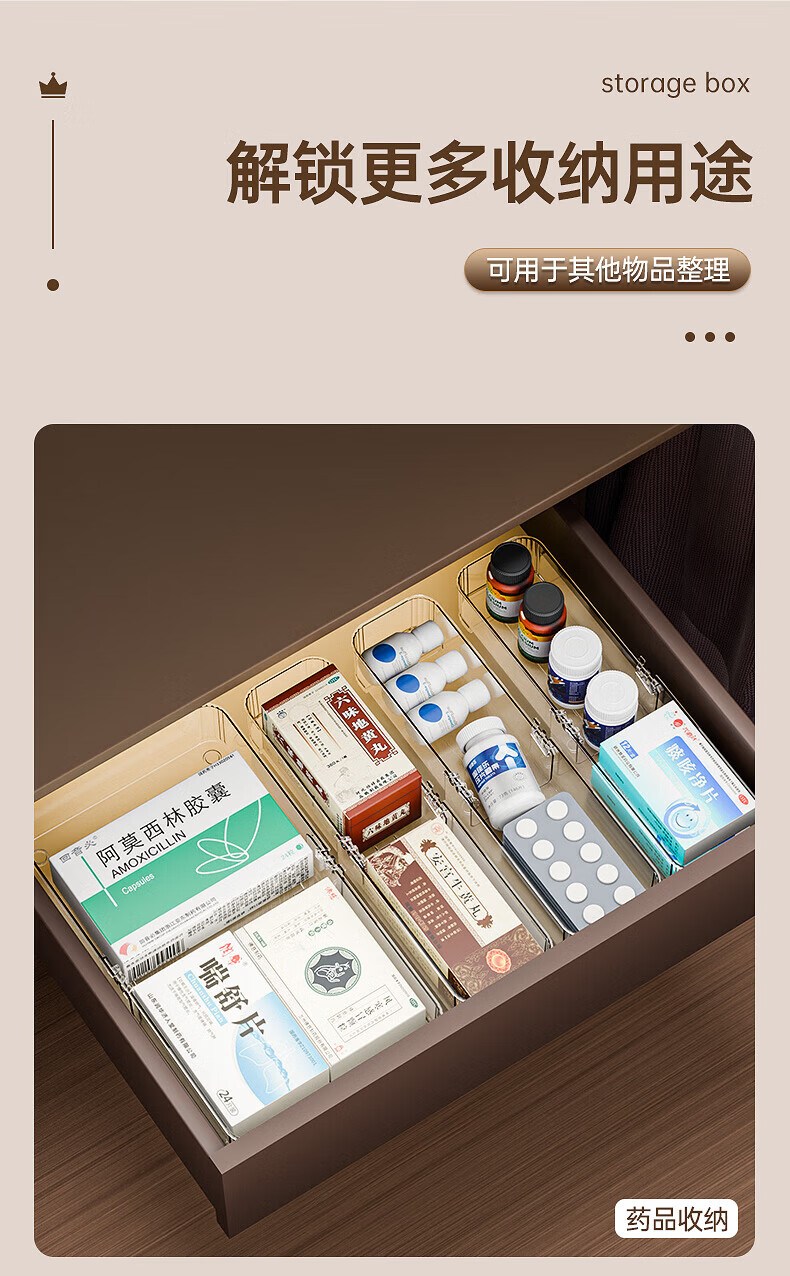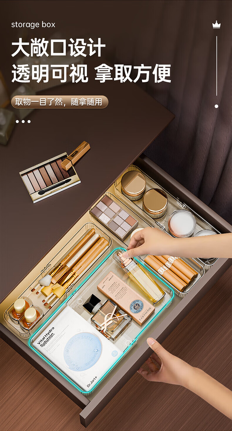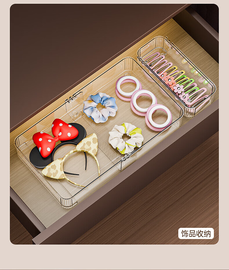 Straw Bear (DOCOXO) Drawer Storage Box Transparent Retractable Drawer Box Cosmetic Sundries Organizer Box Cutlery Drawer Storage Retractable Transparent Narrow Style 1 Pack Retractable