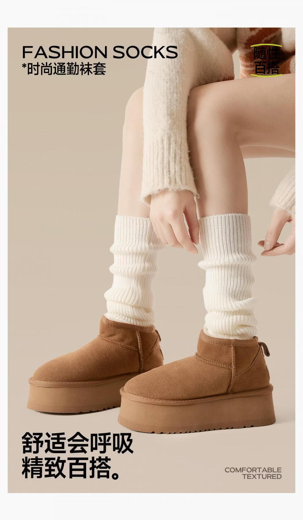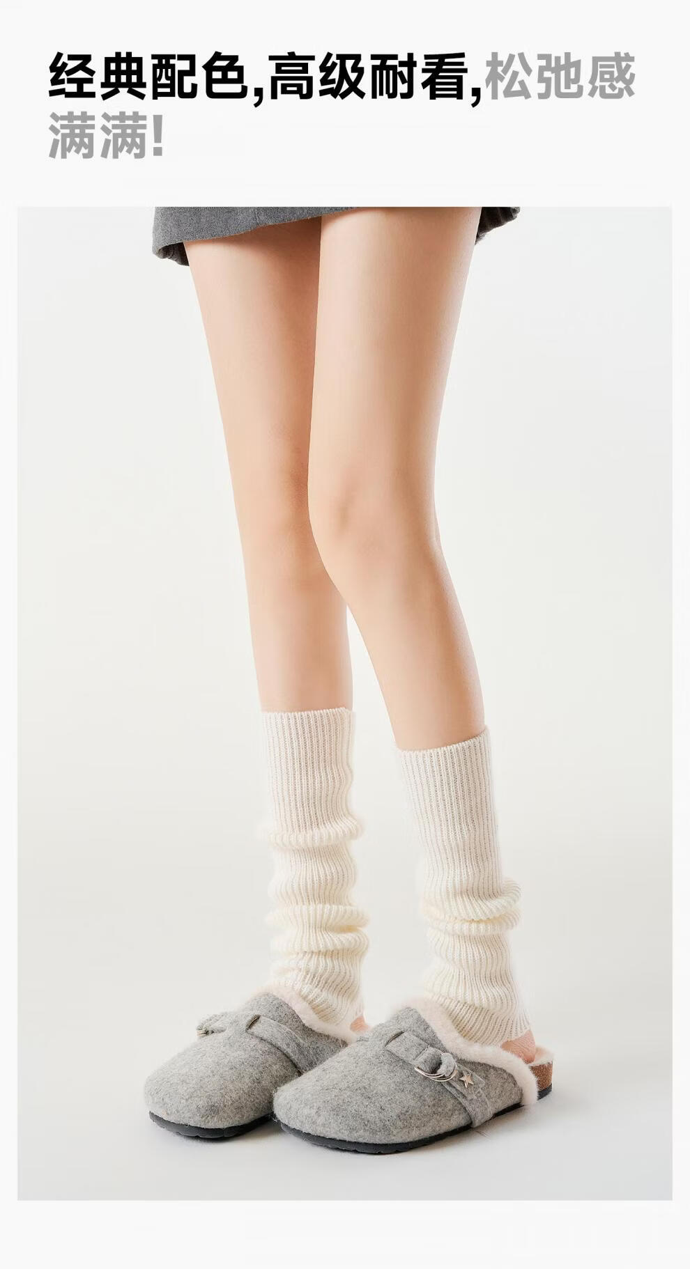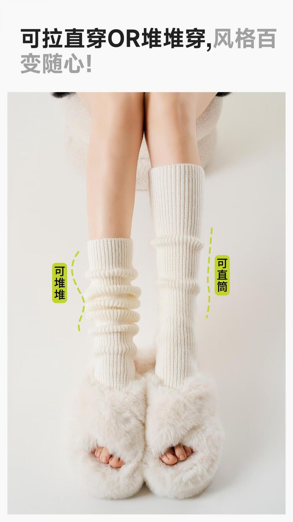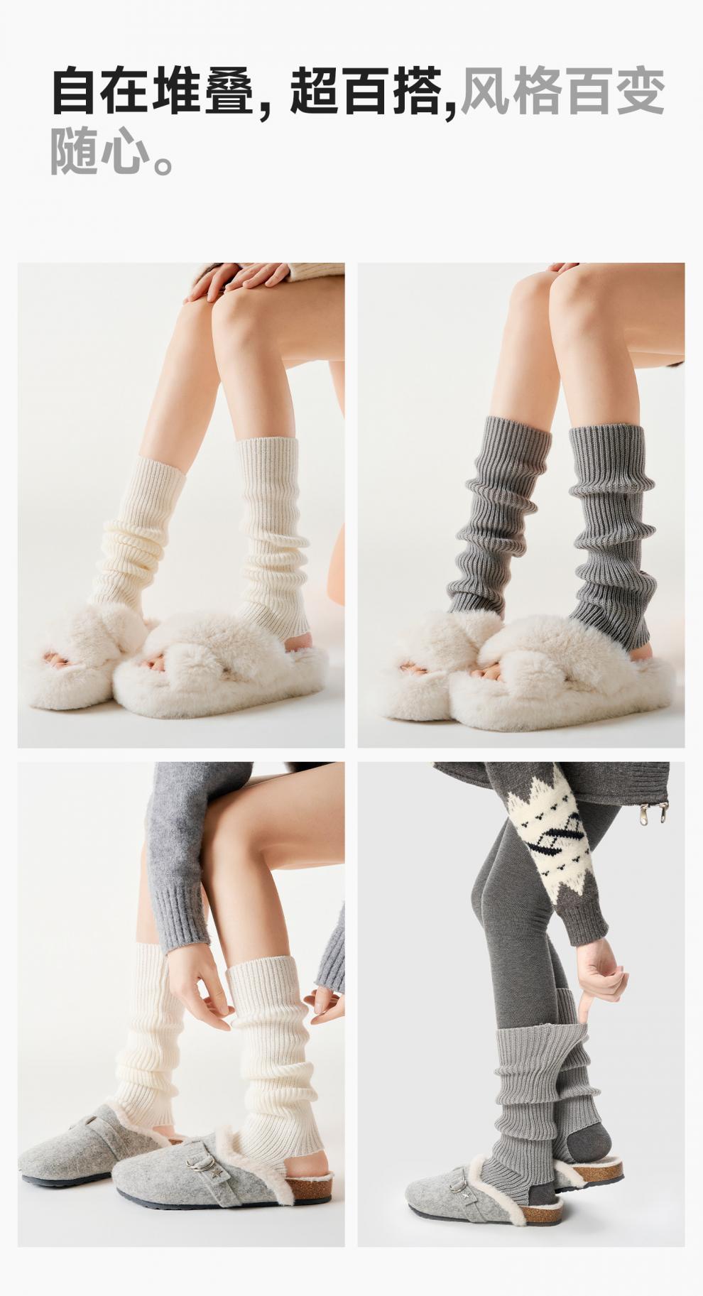 Pami Pile Socks Women's Autumn and Winter Knitted White Sock Covers Long Boot Socks Mid-calf Socks Y2K Leg Cover Spring and Autumn Calf Socks Straight Beige_ 50cm One Size Women's (36-39)