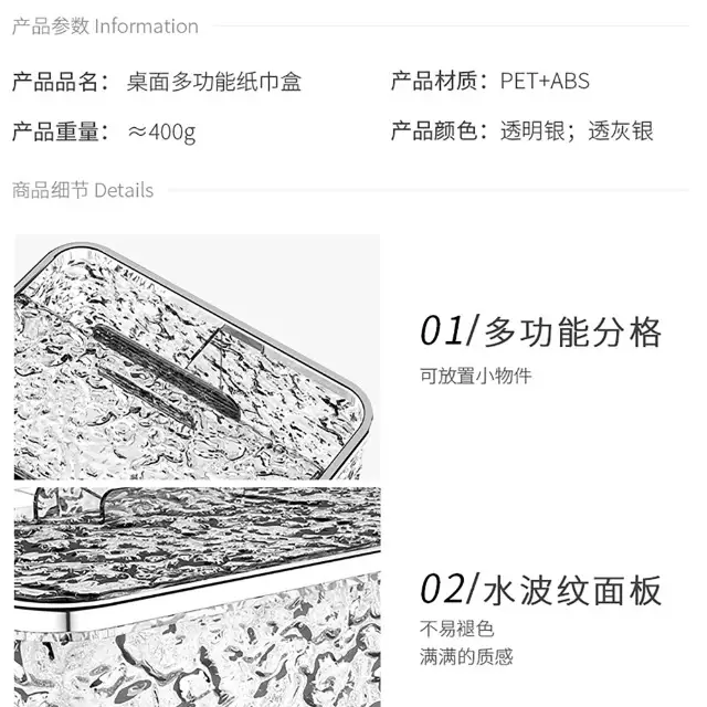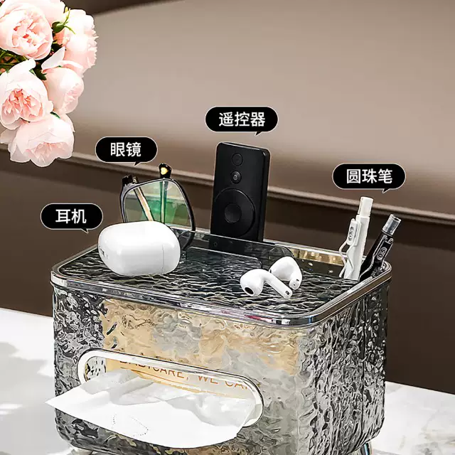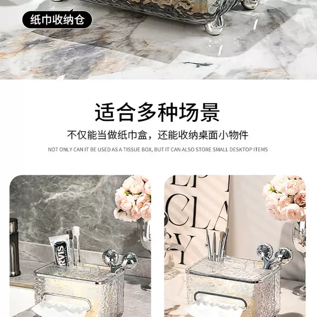 Yusenyi light luxury tissue box, high-end sense, home living room, high-end napkin box, creative paper drawer, paper box, remote control storage (black, gray and silver), divided model, multi-functional - with spring inside