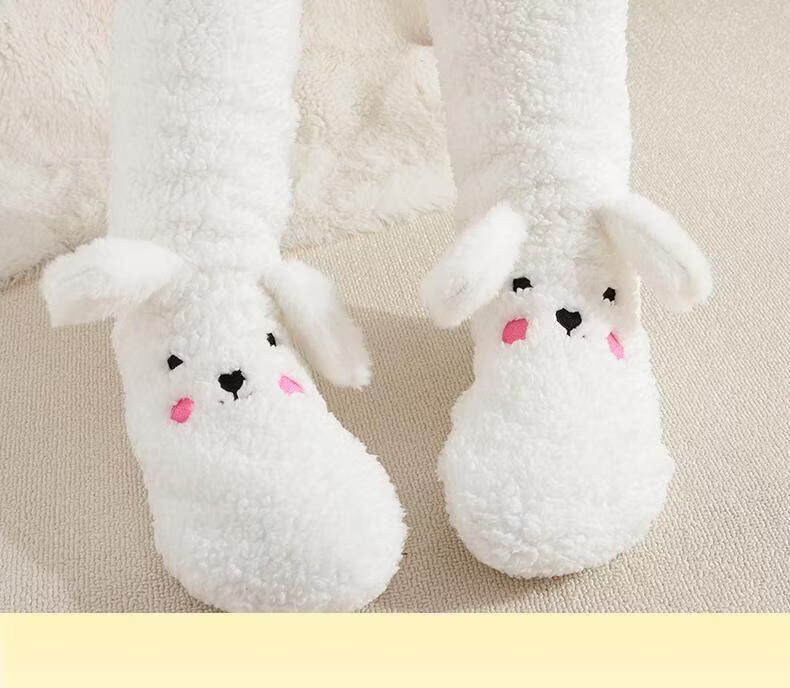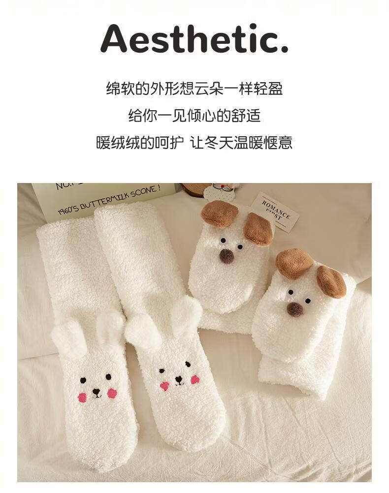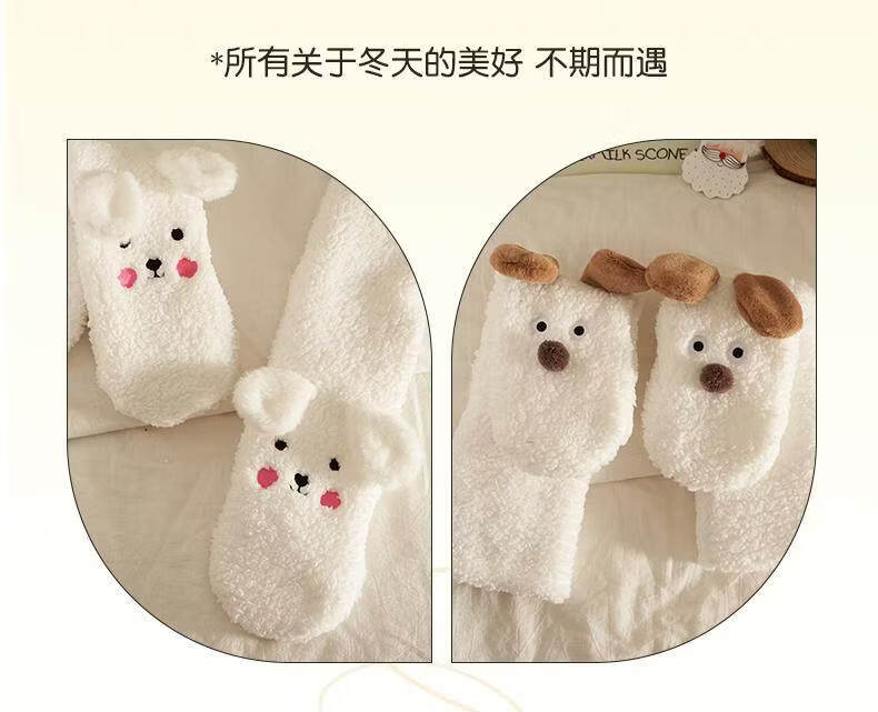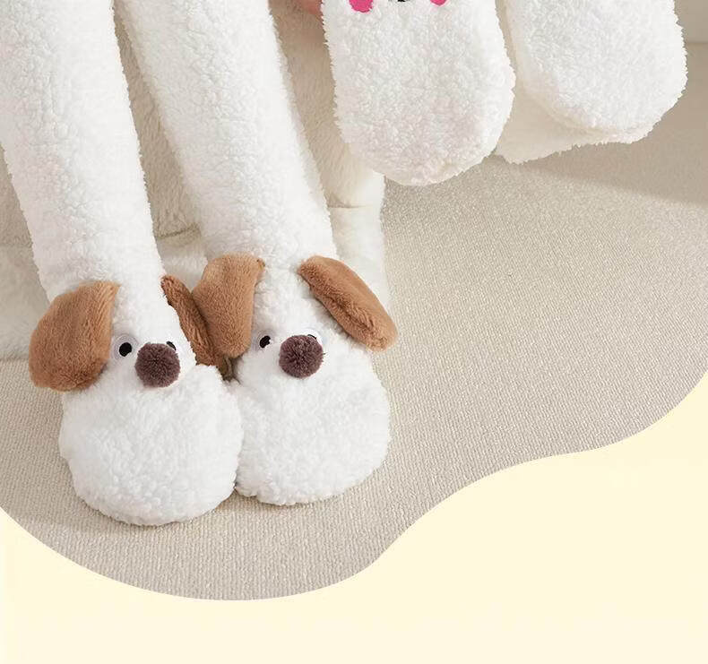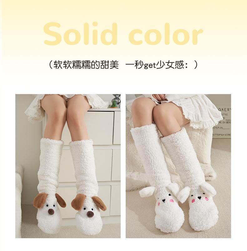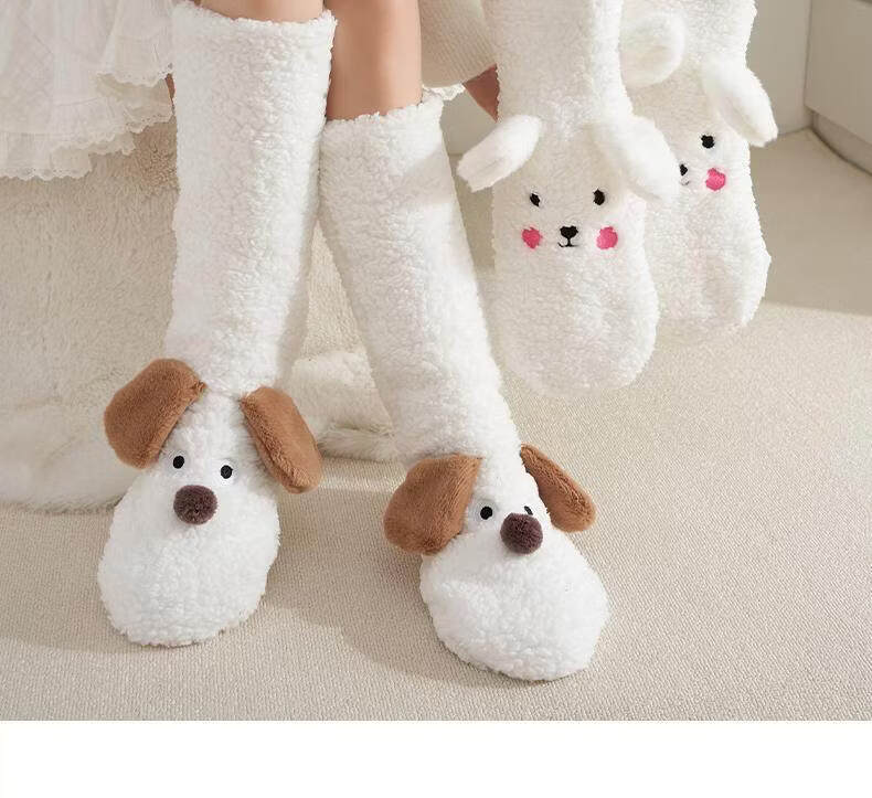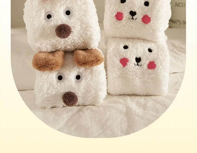 Puppy plush socks for women in autumn and winter, thickened lamb velvet floor socks, warm and velvet home sleeping socks, foot warmer artifact, puppy outfit, cute and fun, velvet and thickened 1 pair