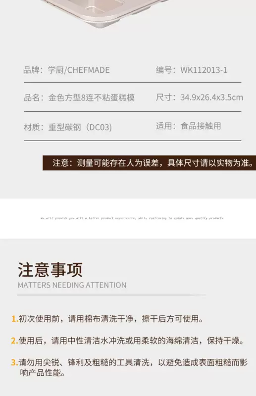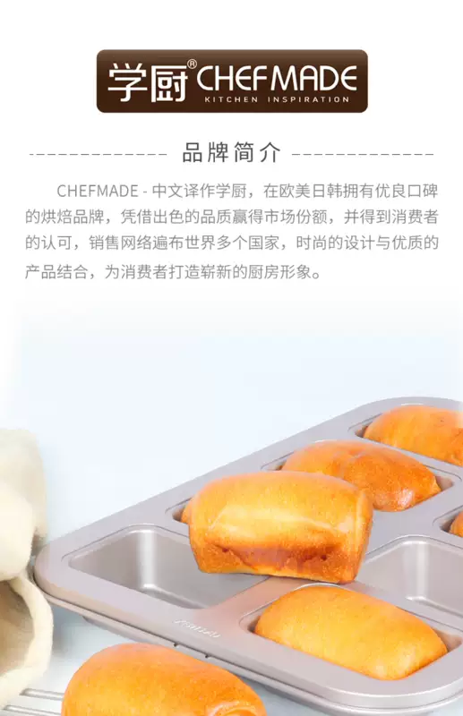 Yusenyi chefmade pound breakfast square 8-cup mini school cake hot dog kitchen snow mold Feinan bread baking tool Feinan snow mold Feinan snow mold 1g