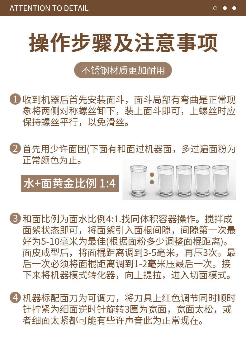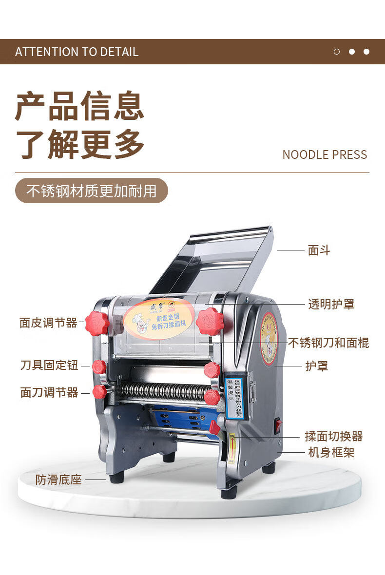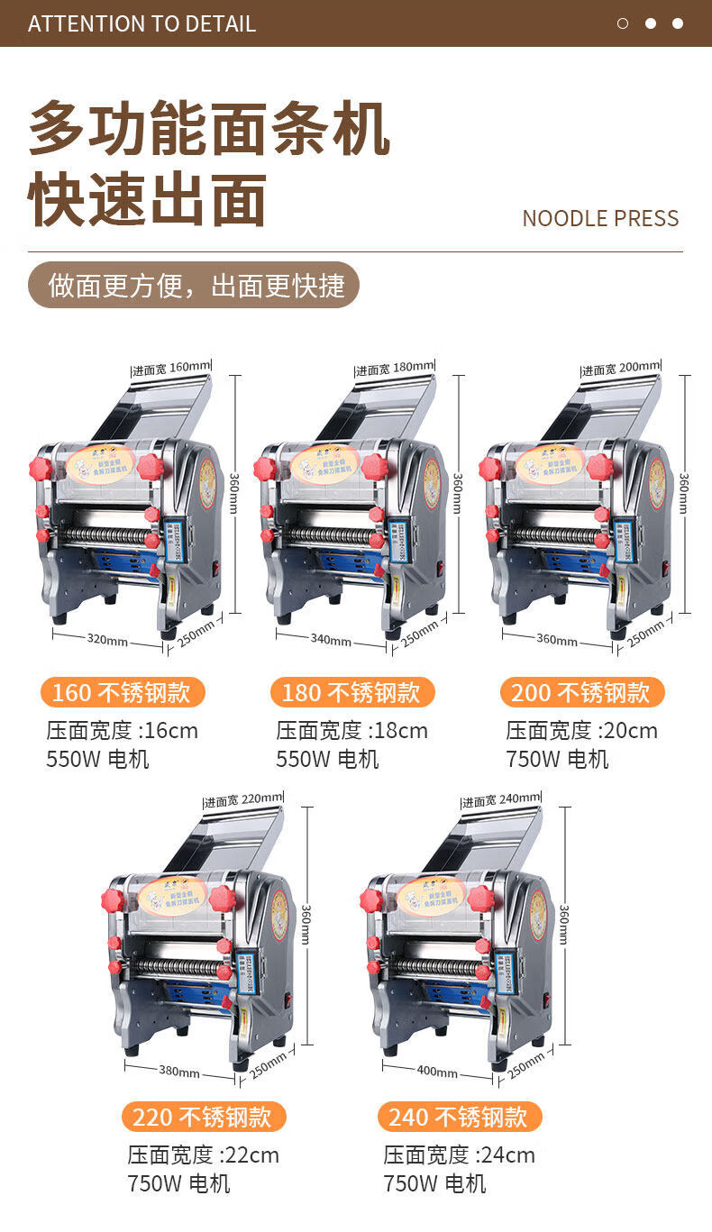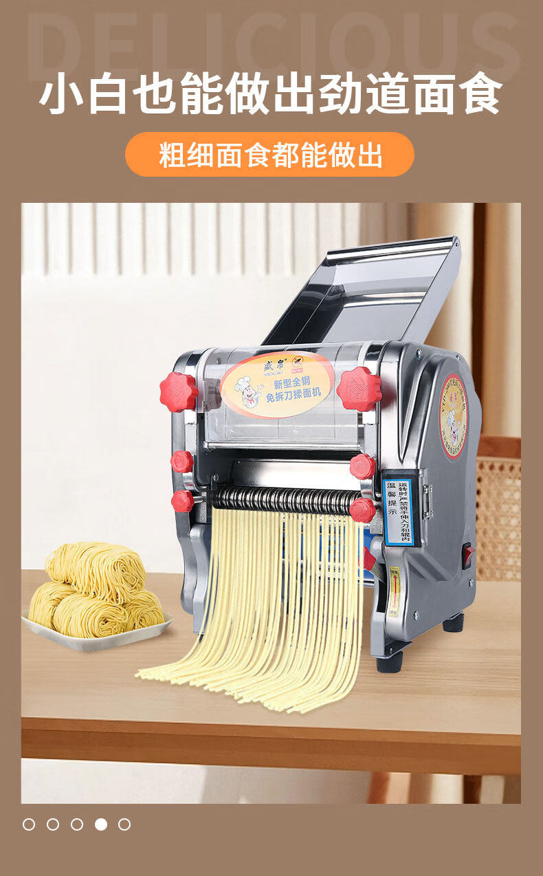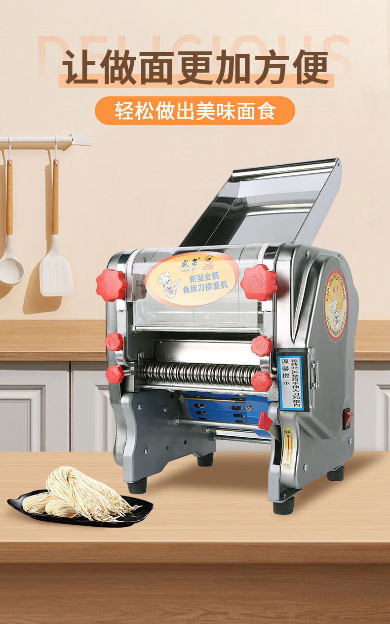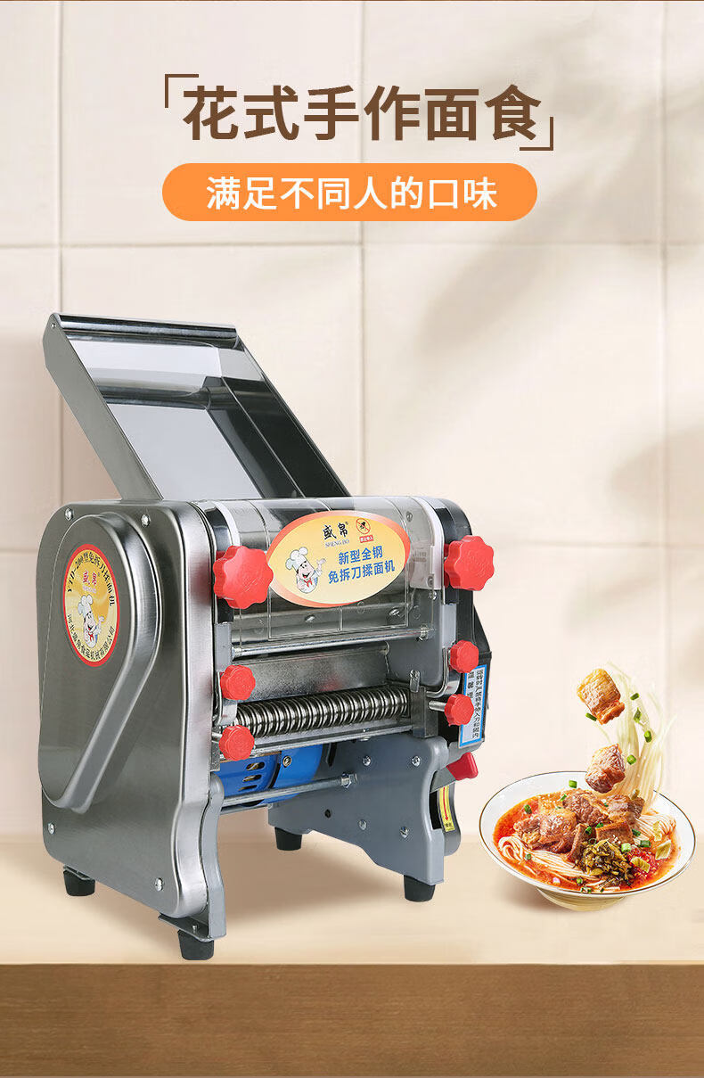 MPPMCK Japanese imported noodle machine, knife-free kneading and pressing machine, stainless steel electric multi-functional noodle machine, household commercial dumplings, type 160 knife-free, all-steel gear, stainless steel model, dough thickness 0.1-1