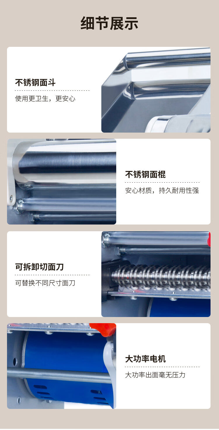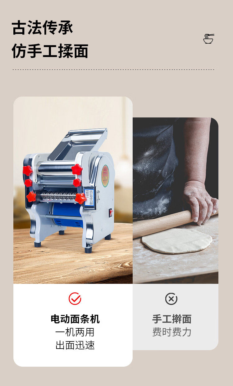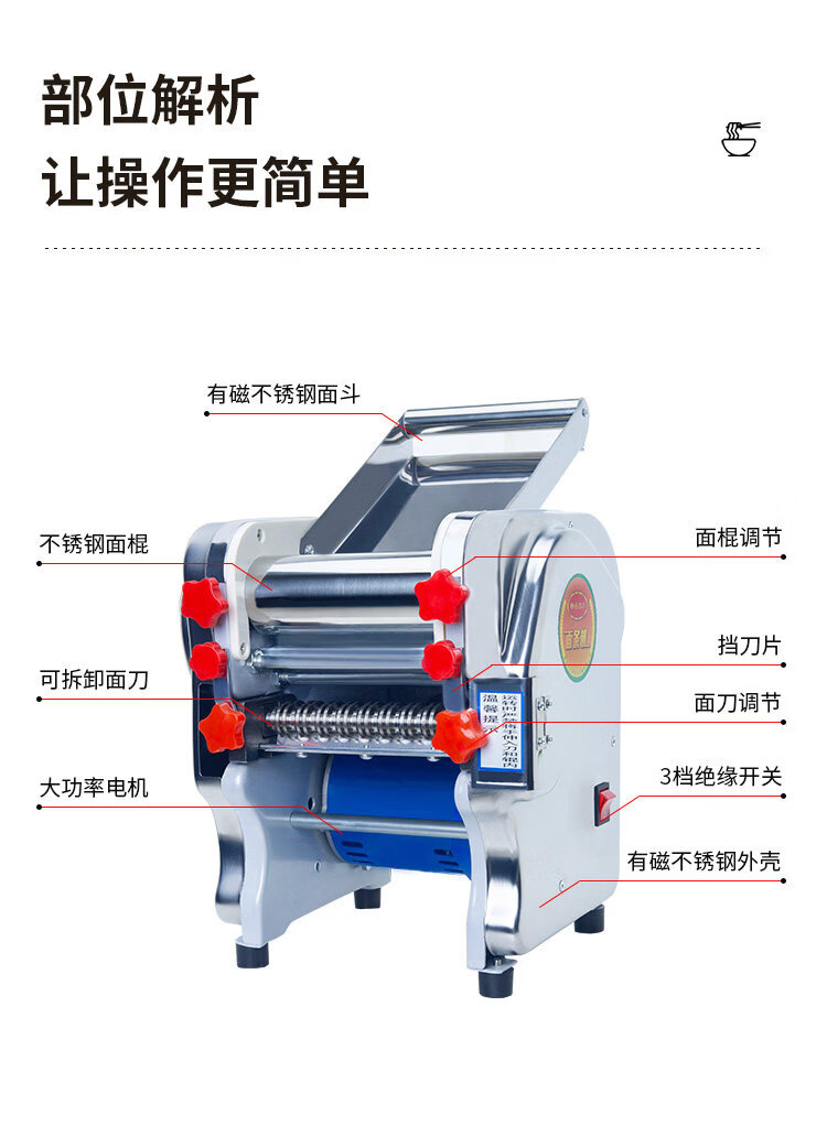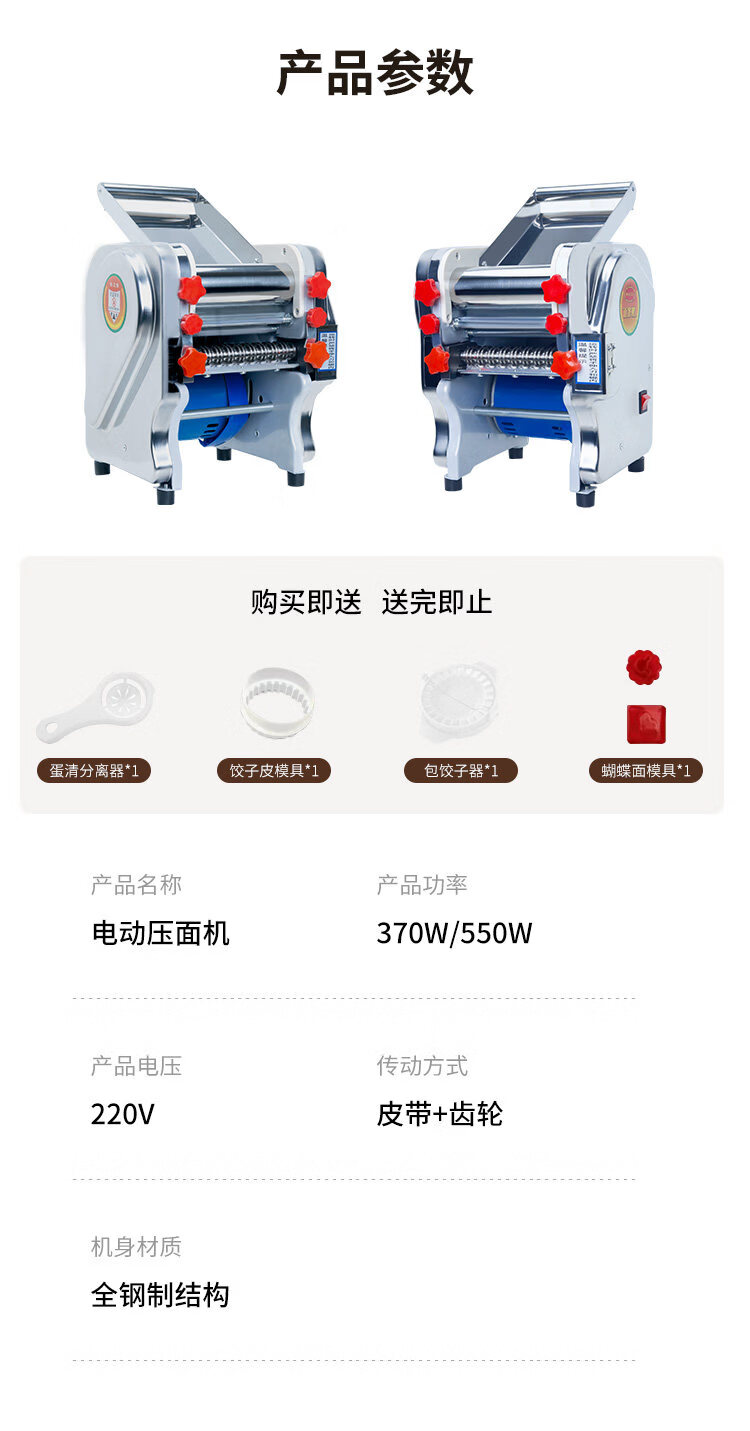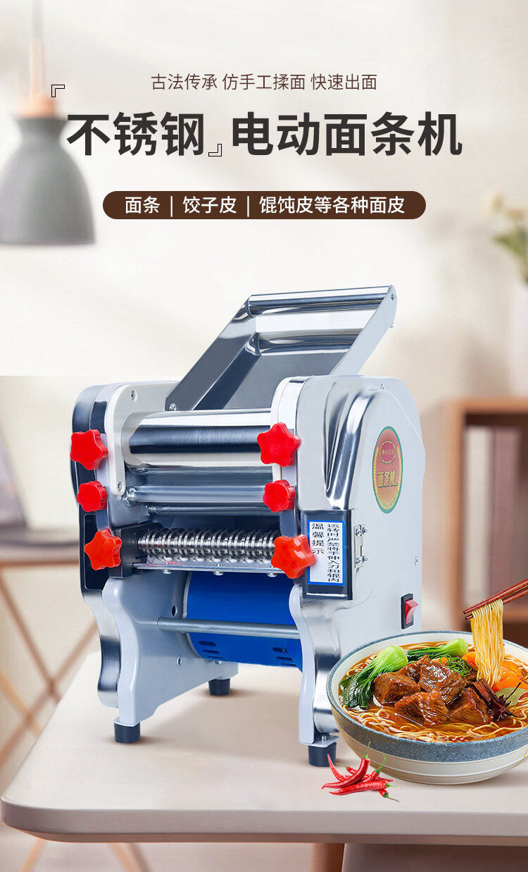 MPPMCK Japanese imported noodle machine, high-quality stainless steel electric noodle machine, small household noodle machine, multi-functional and fully automatic 140 luxury stainless steel noodle press model 370 watts, one knife, two kinds of noodles