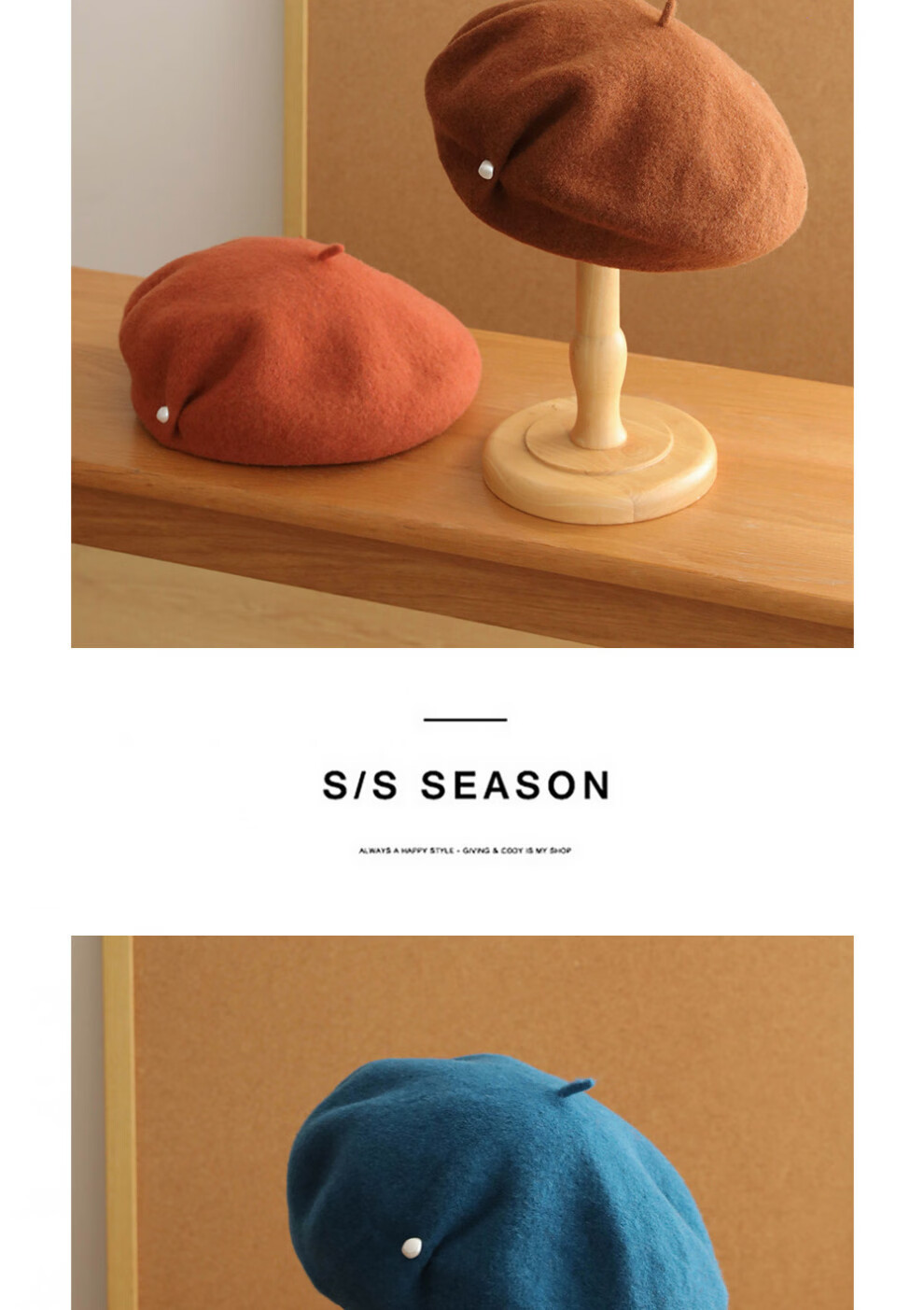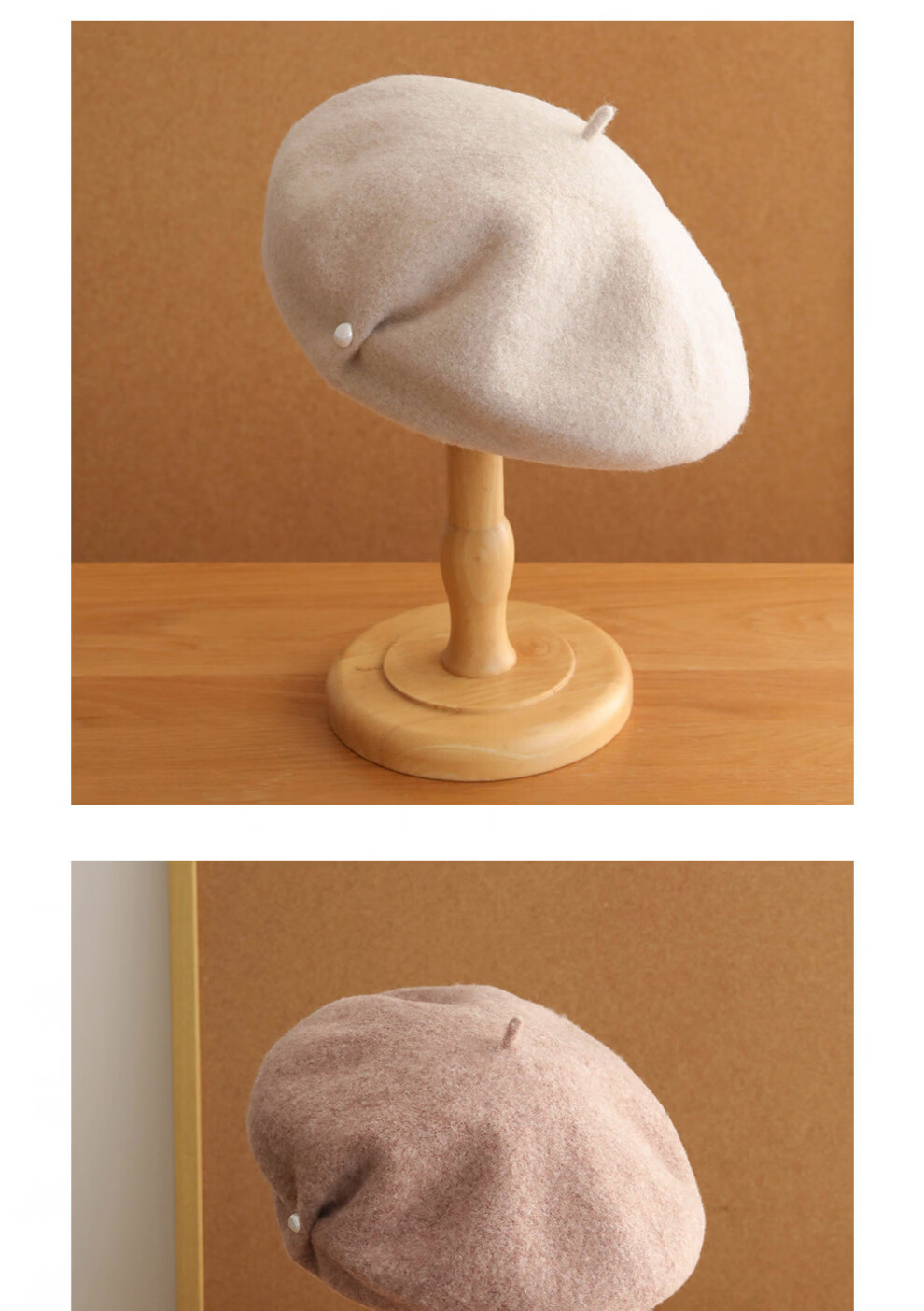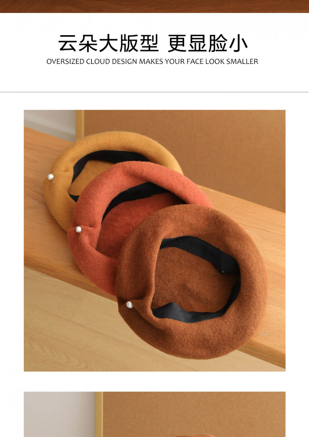 Ao Yan Lai Orange Colorful Beret 100 Australian Wool Large Top Pearl Painter Hat Literary Temperament Beret Hat Chestnut Color M One Size 55-59c)