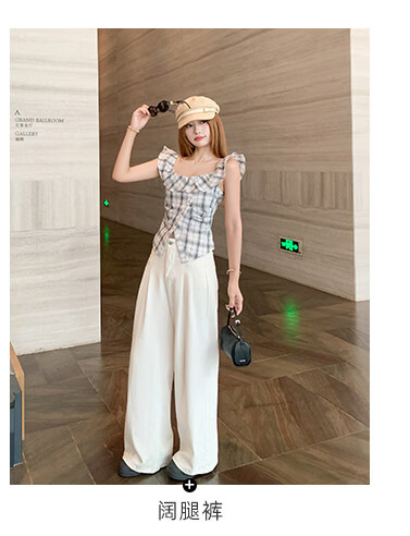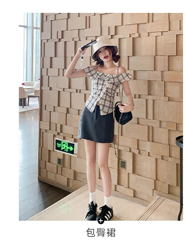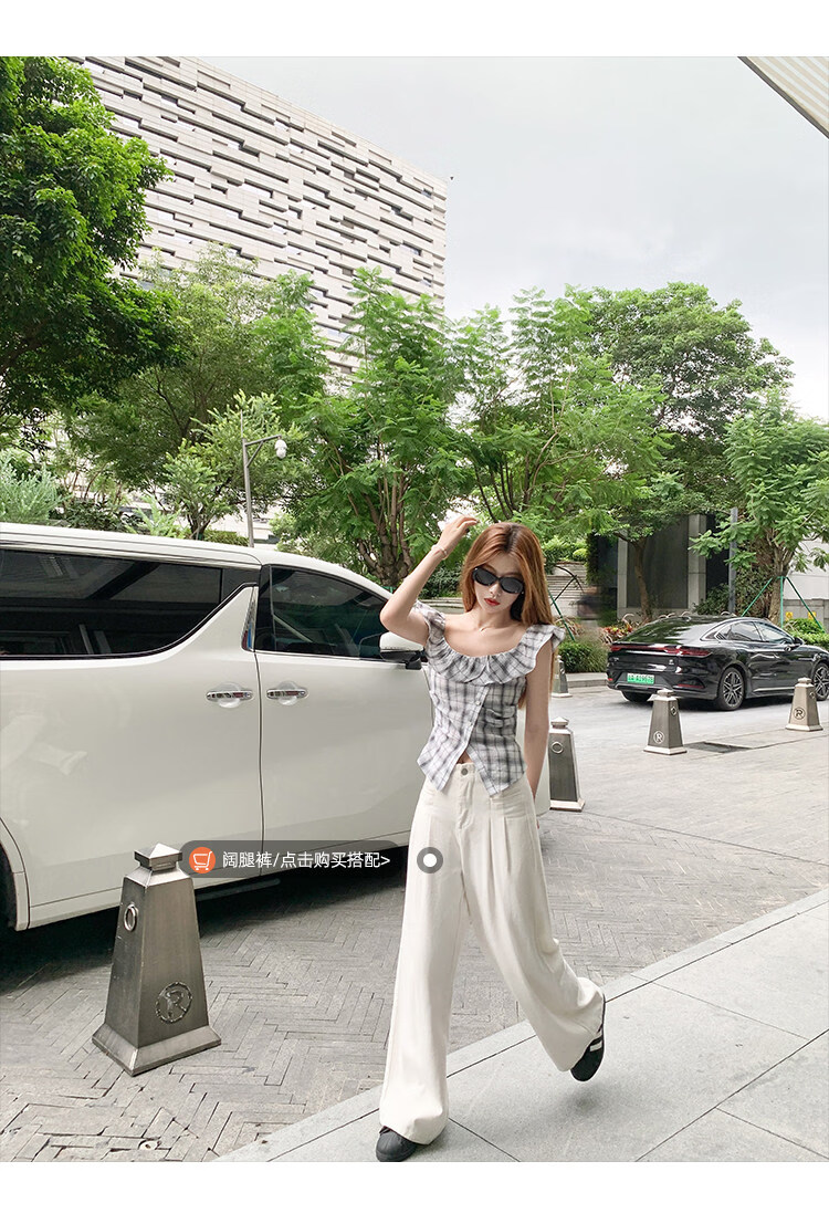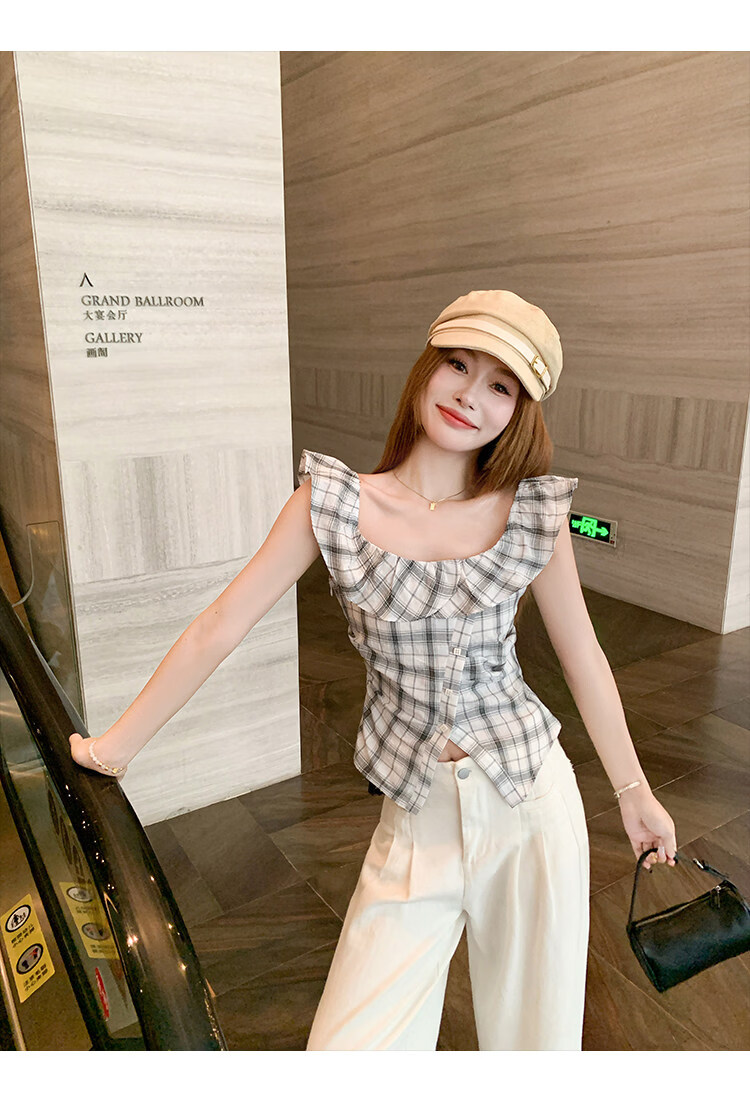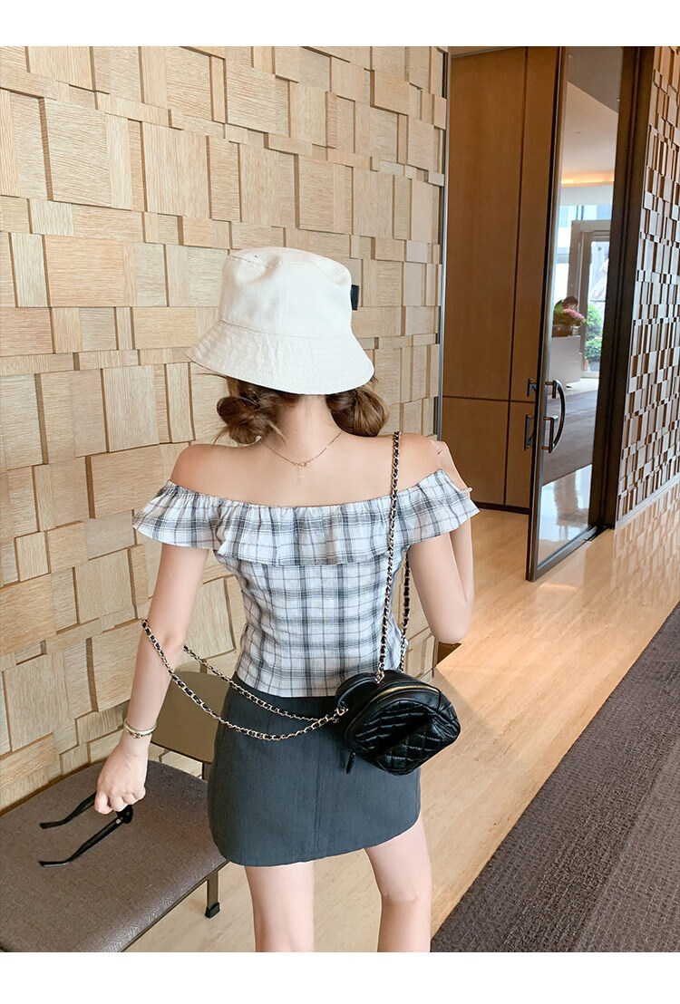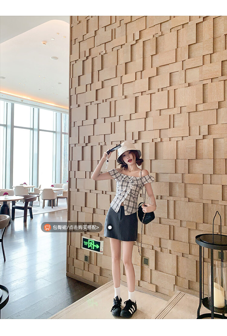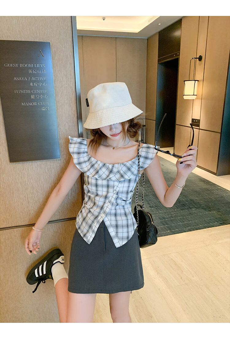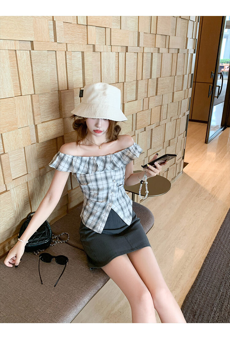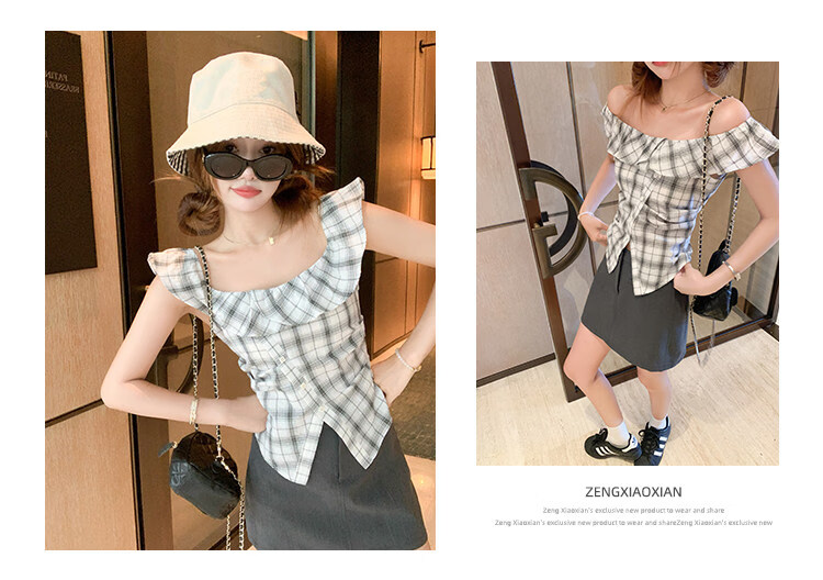 Zeng Xiaoxian Zeng Xiaoxian Korean style shoulder-breasted slit plaid shirt for women, black and white plaid M