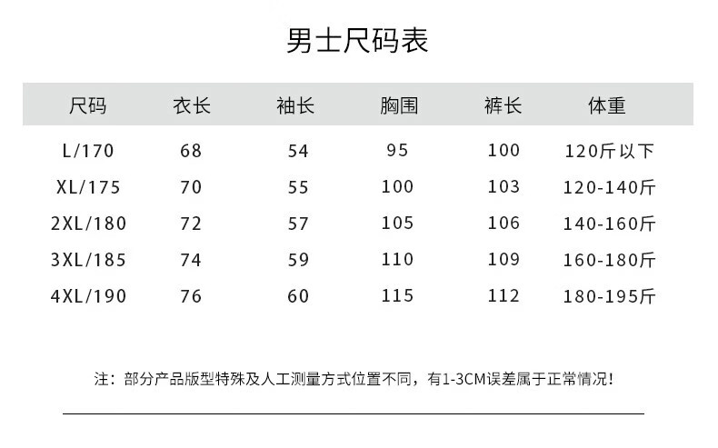 China (cm) 165 / 88-90 170 / 96-98 175 / 108-110 180 / 118-122 185 / 126-130