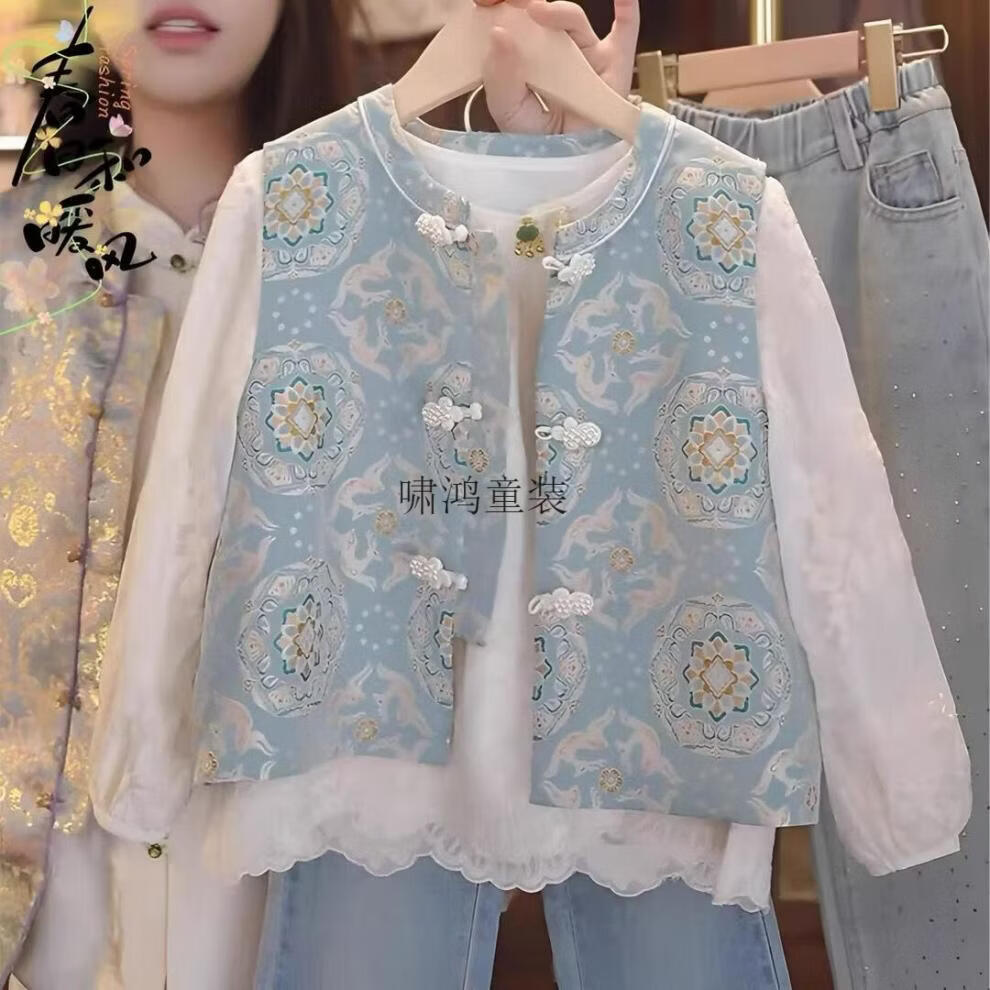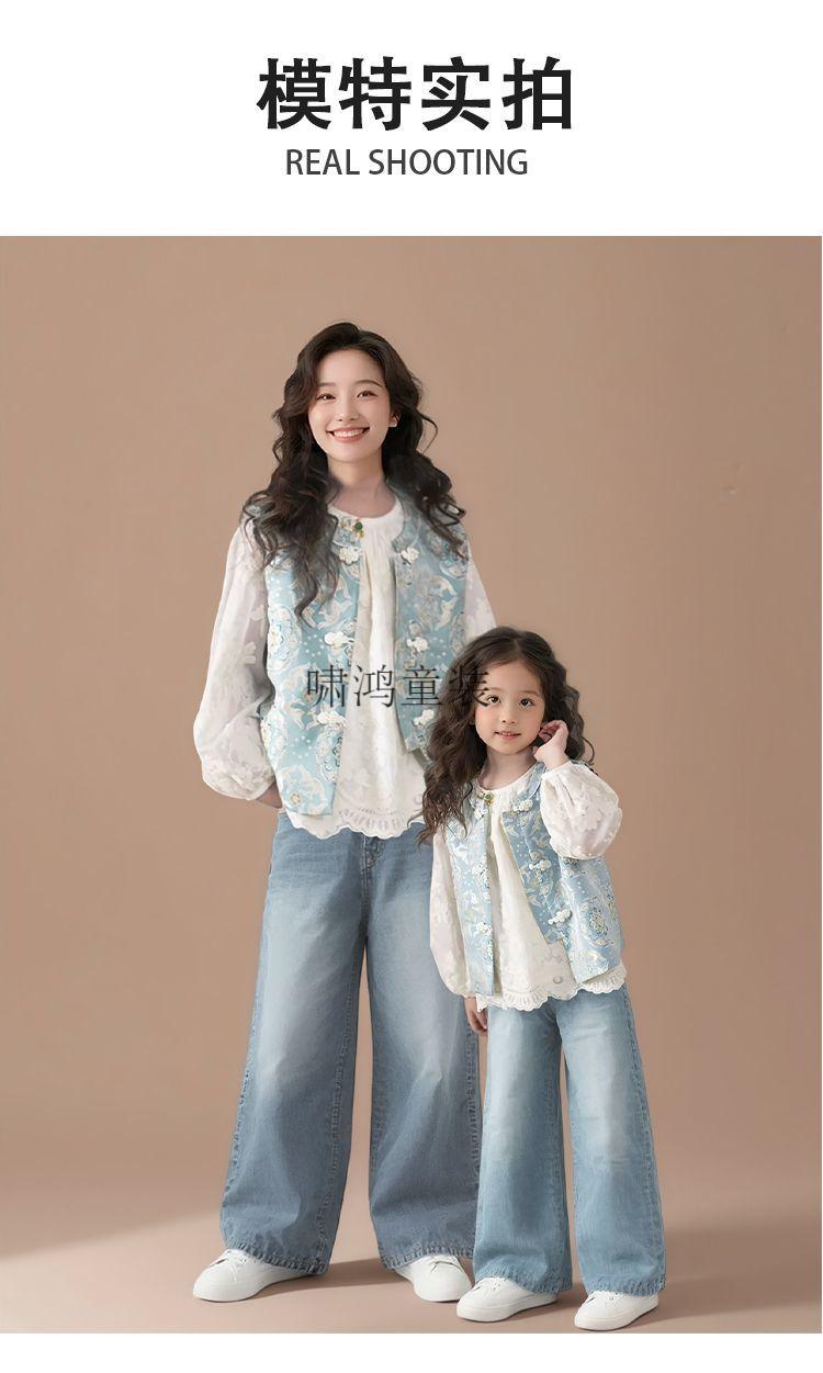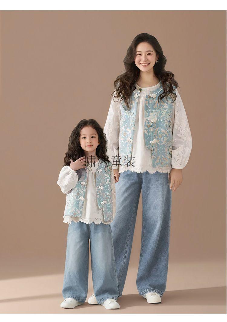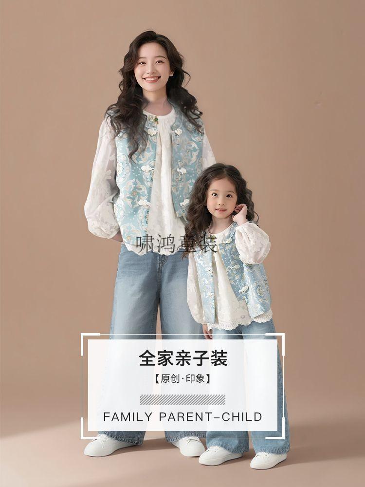 Wooden house parent-child wear new Chinese style vest shirt two-piece set Spring and Autumn 2026 new national style ethnic style mother-child mother-daughter wear vest 100