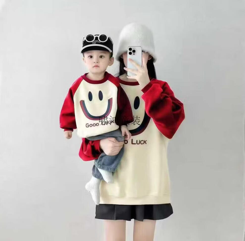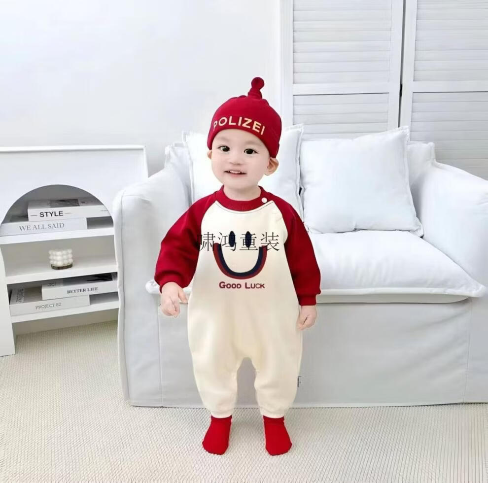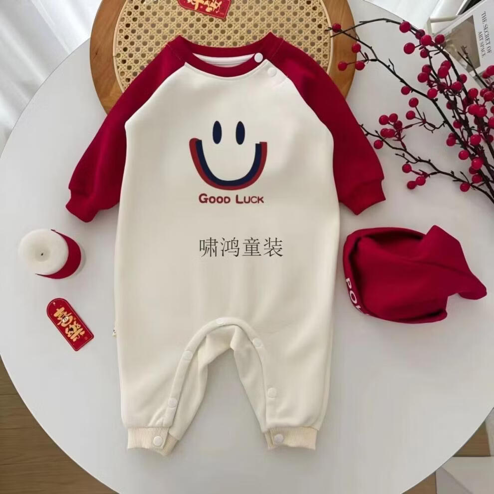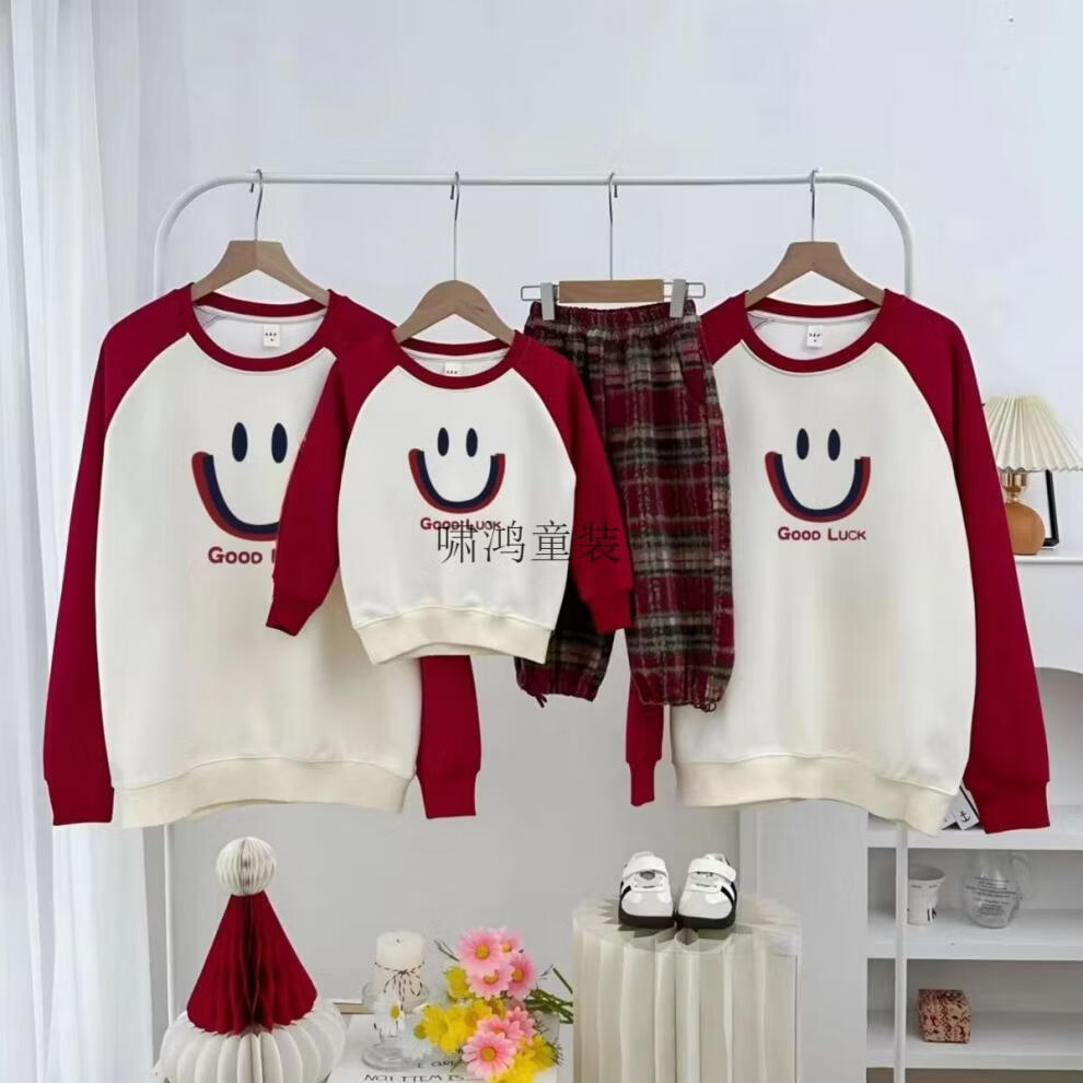 Wooden house parent-child outfits for autumn and winter photography for a family of three or four 2026 new red color mother-child mother-daughter baby one-piece family fashion apricot splicing burgundy (without velvet) 66 one-piece with hat
