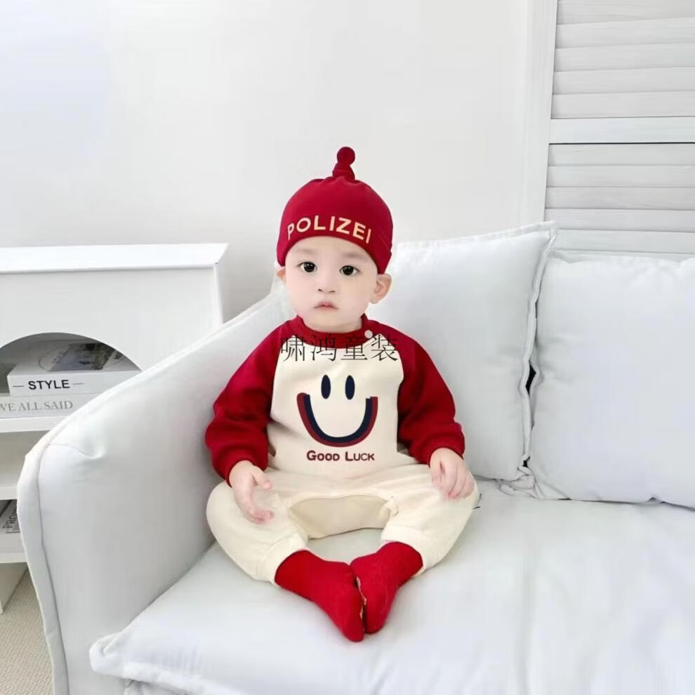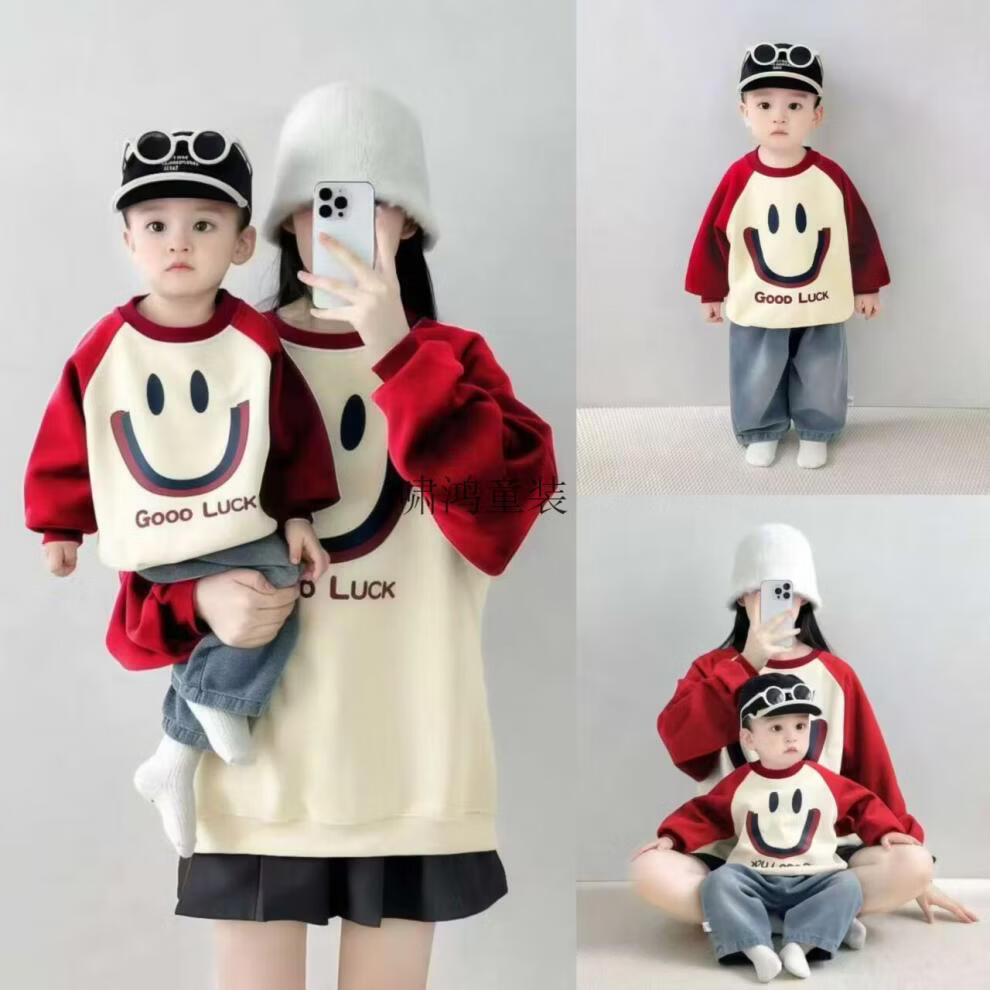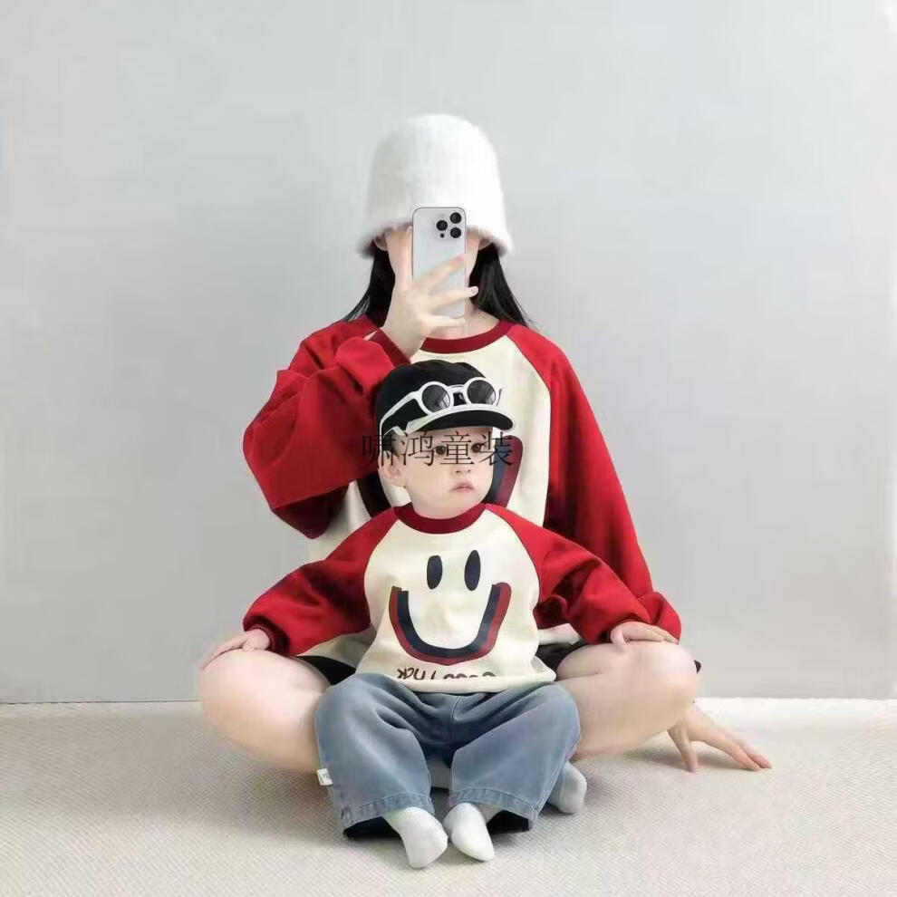 Wooden house parent-child outfits for autumn and winter photography for a family of three or four 2026 new red color mother-child mother-daughter baby one-piece family fashion apricot splicing burgundy (without velvet) 66 one-piece with hat