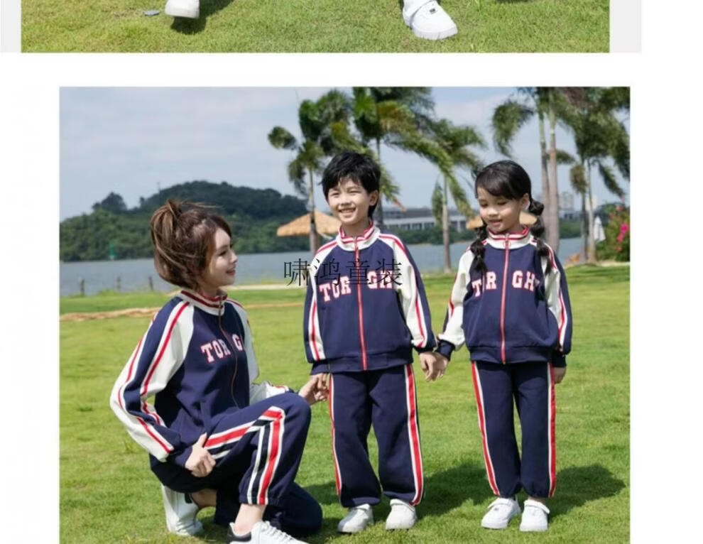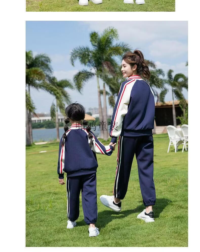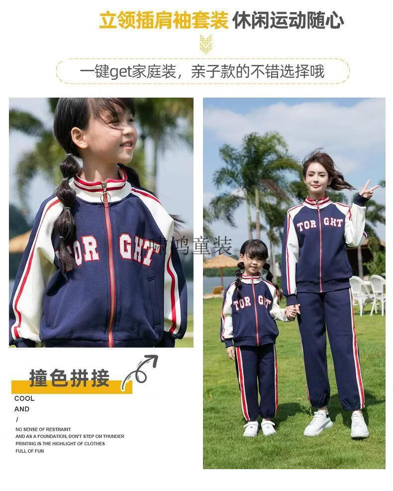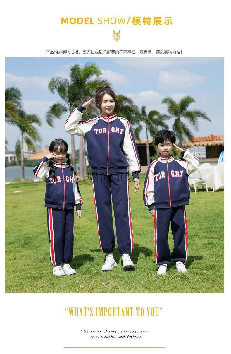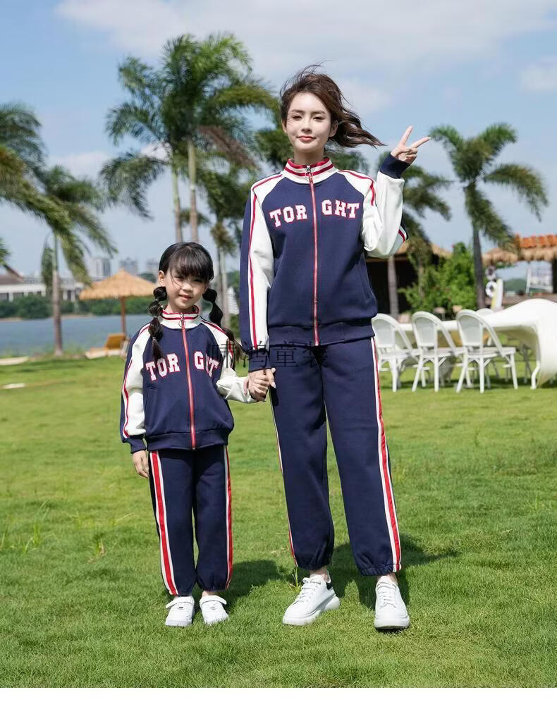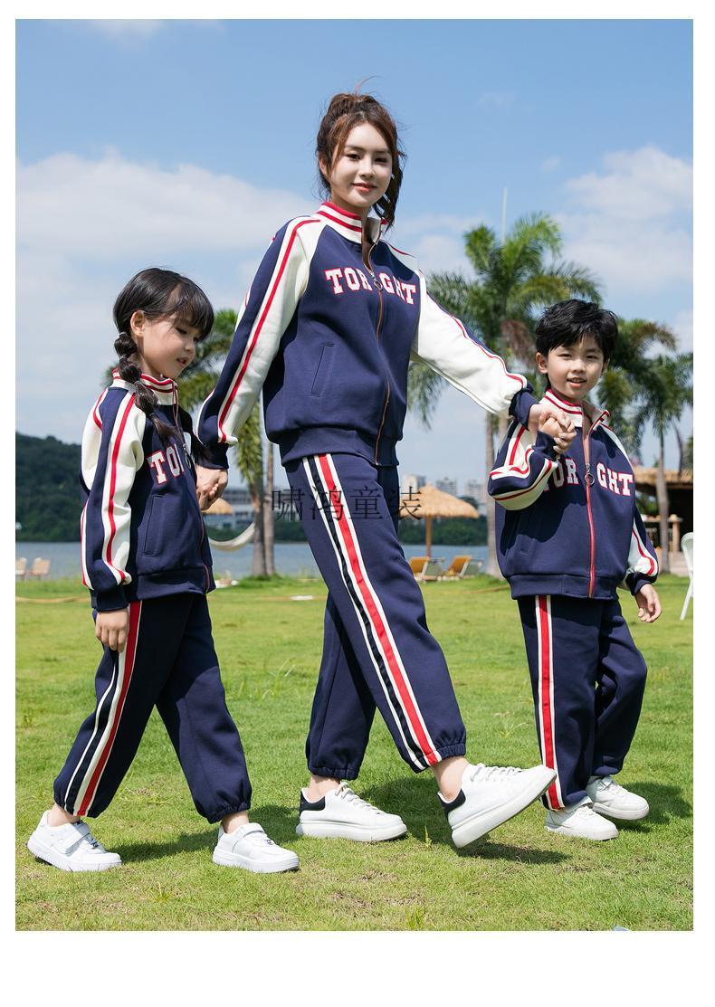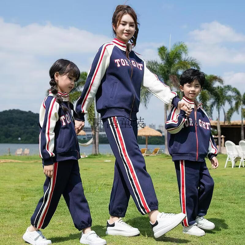 Wooden house parent-child clothing mother-son mother-daughter baseball uniform autumn clothing set high-end street-friendly family of three or four sports and leisure two-piece set navy blue jacket 120 cm