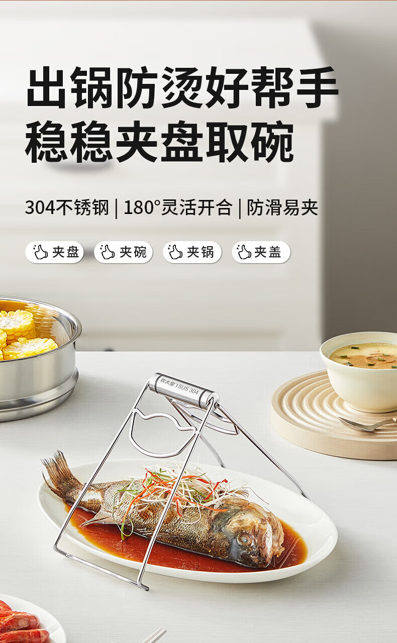 Cui Dahuang anti-scalding clip 304 stainless steel anti-scalding bowl and plate clamp steamer clip household anti-slip kitchen plate lifter 304 stainless steel anti-scalding clip