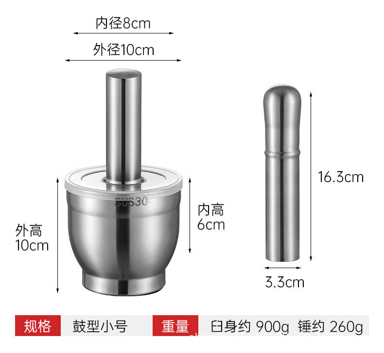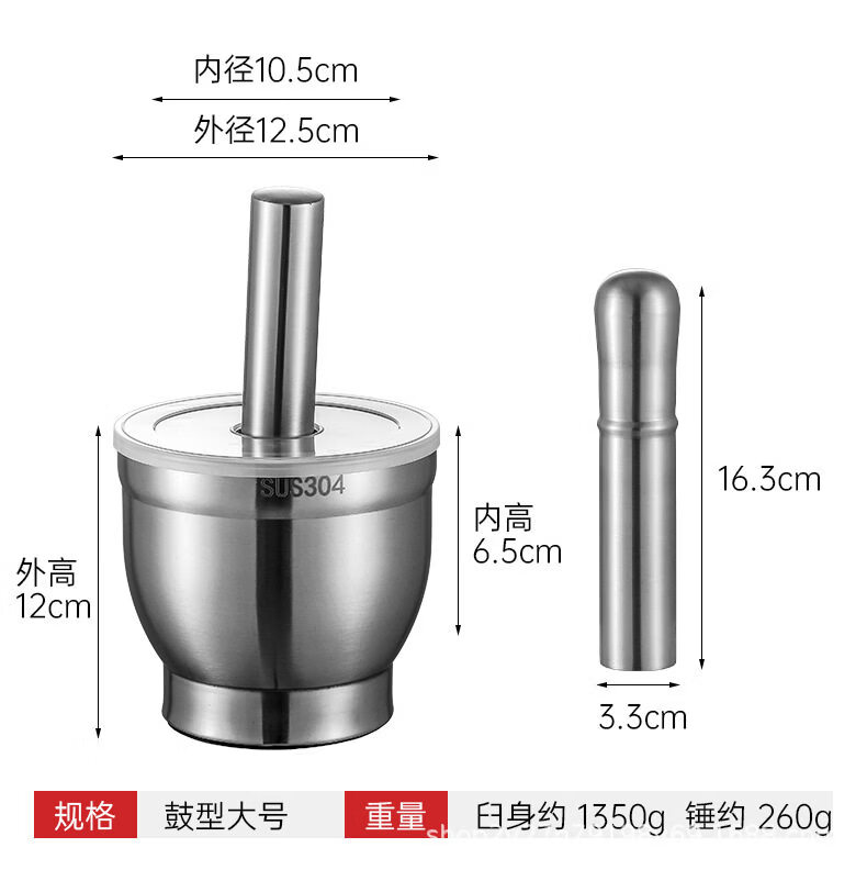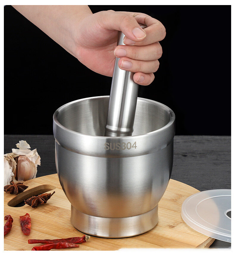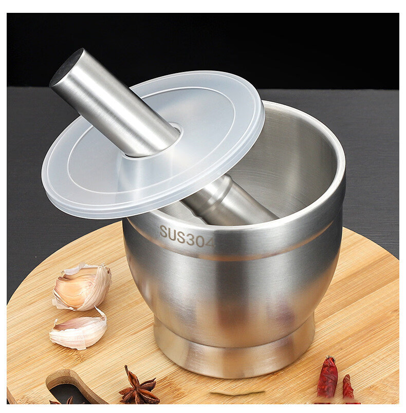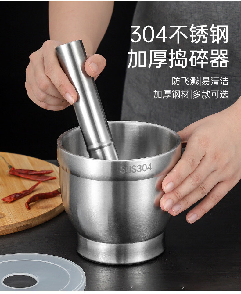 OUOETY German 304 stainless steel garlic mortar mashing grinding jar mashing garlic press stone mortar grinder bowl household grinding 304 stainless steel extra large 14.5cm upgraded and reinforced