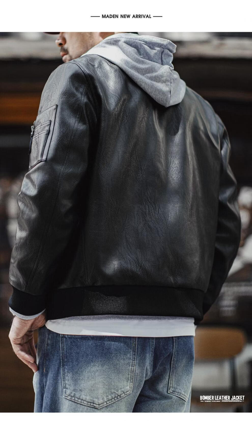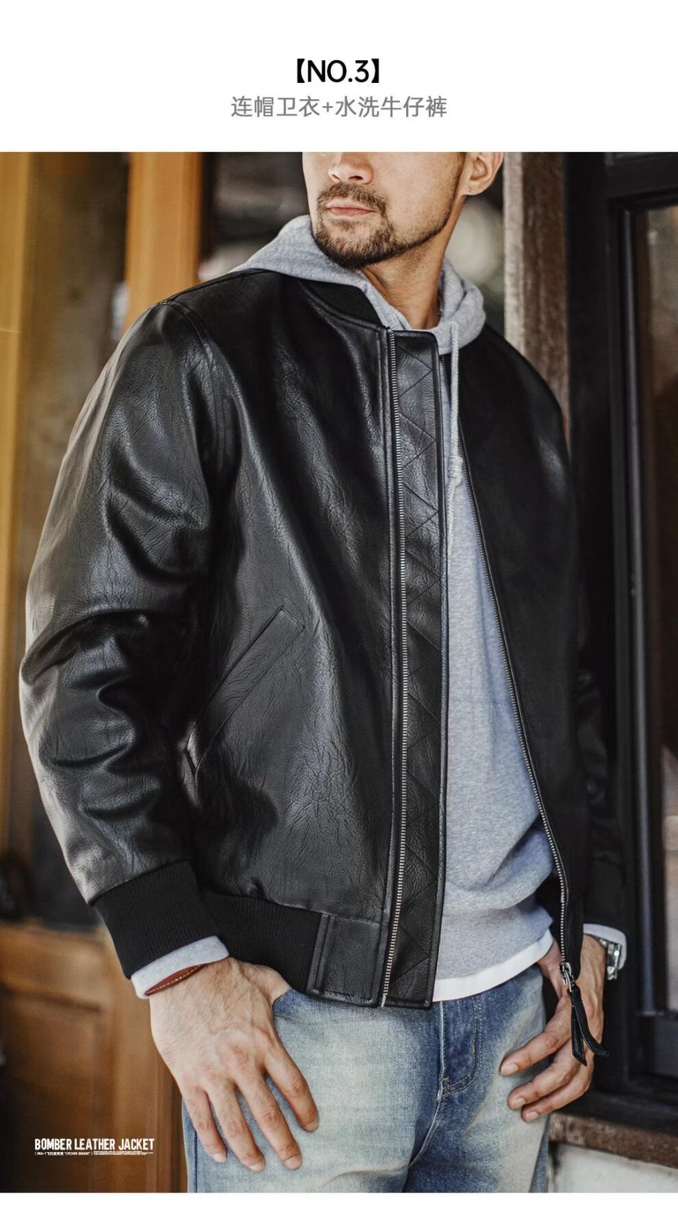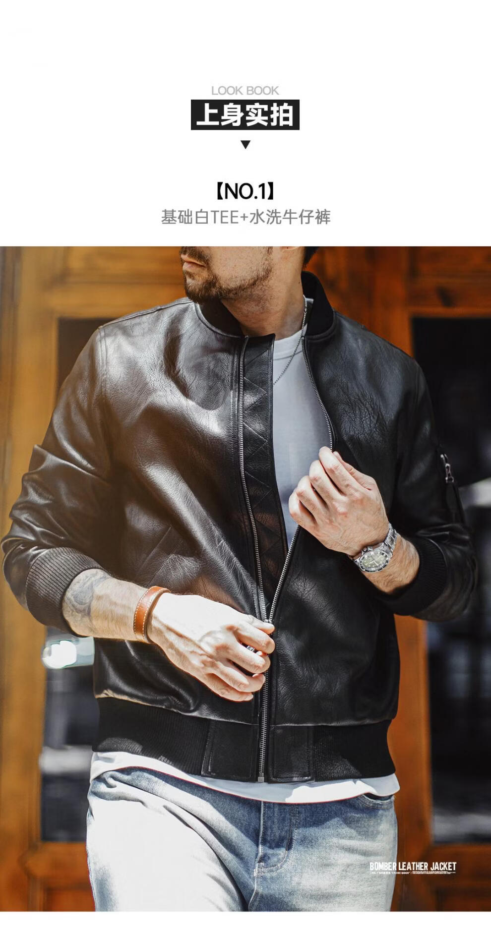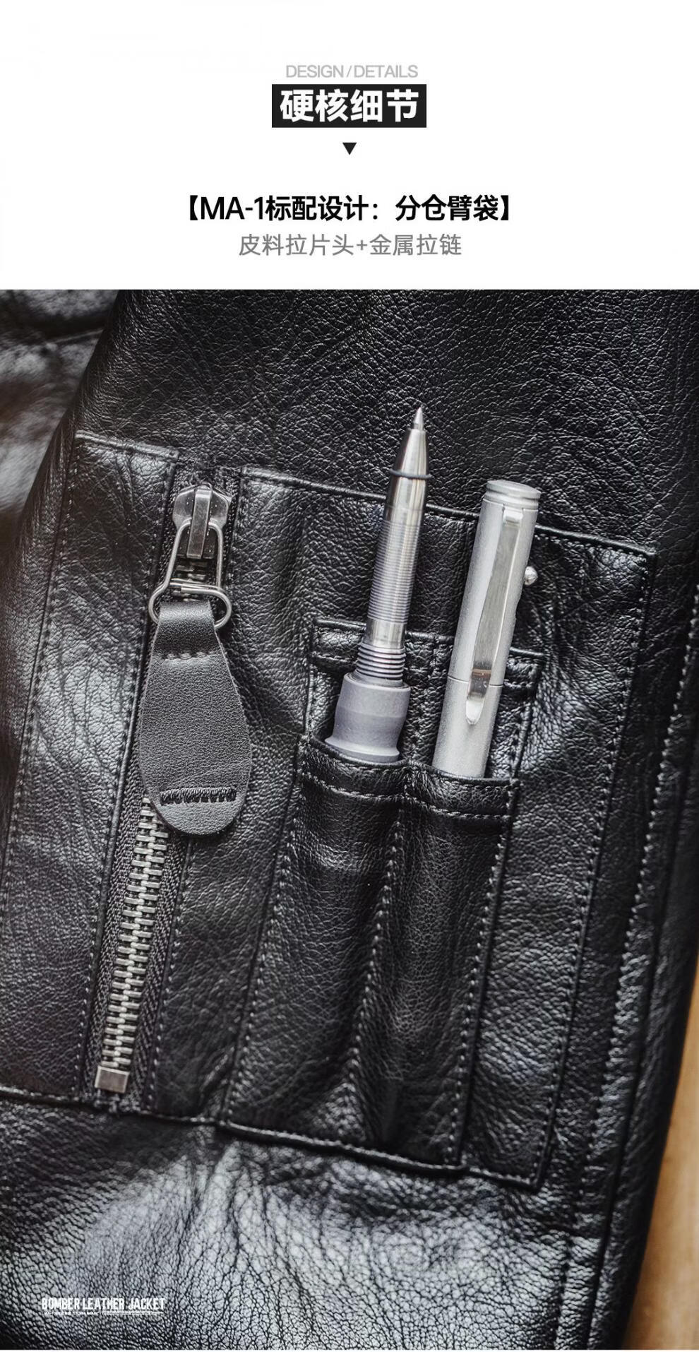 MADEN Workwear American Black MA1 Pilot Leather Jacket Handsome Short Litchi Pattern Short Jacket Men Quiet Black S