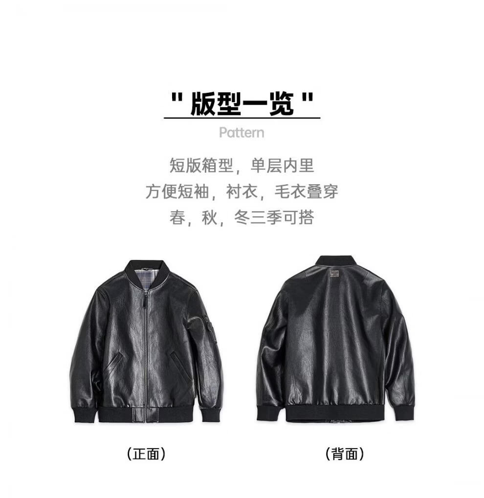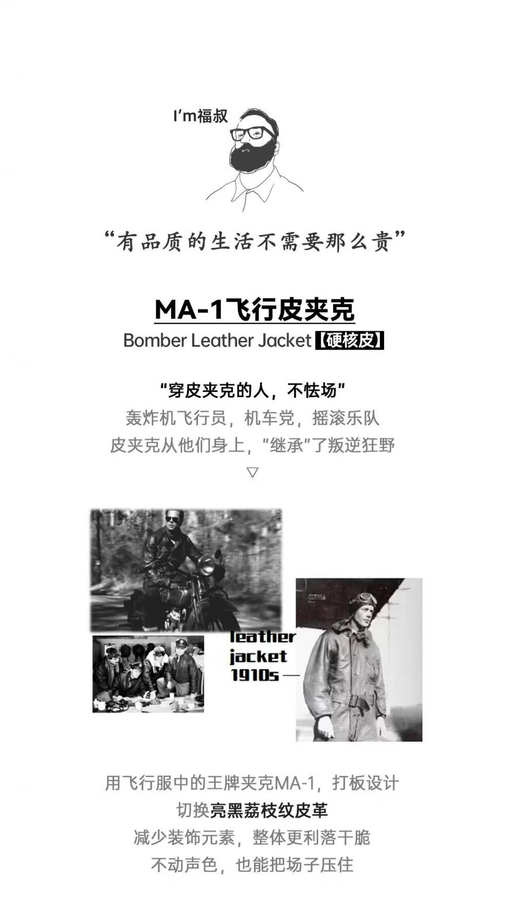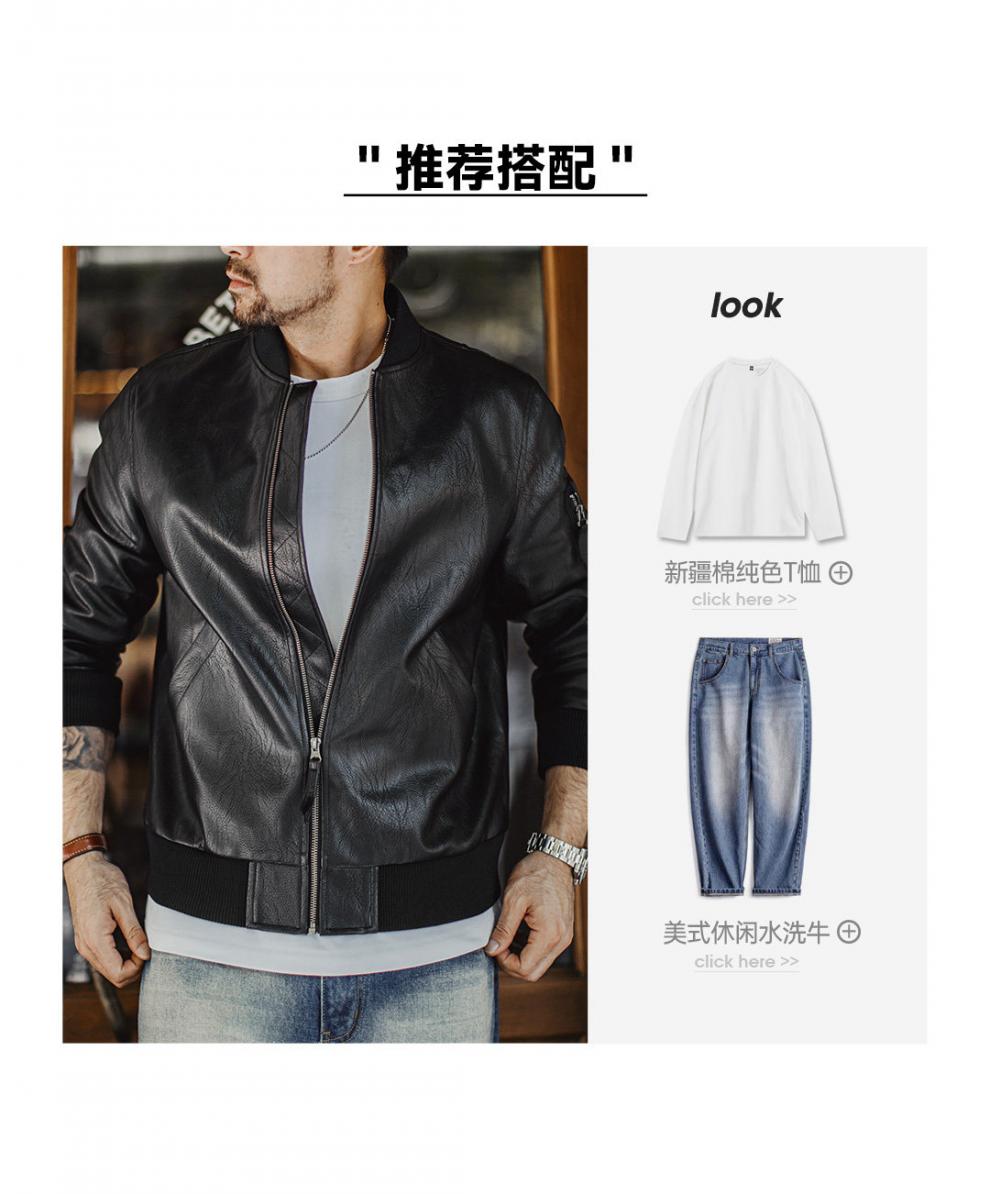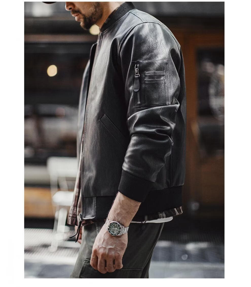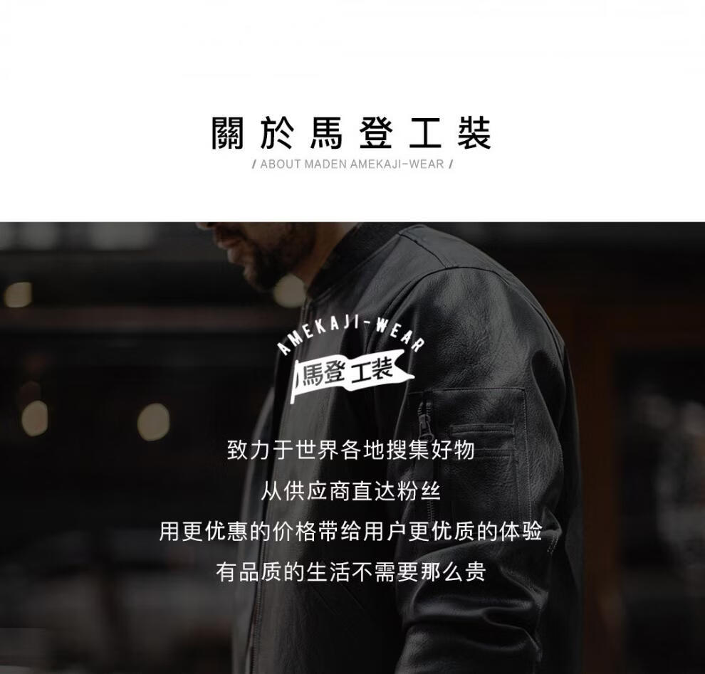 MADEN Workwear American Black MA1 Pilot Leather Jacket Handsome Short Litchi Pattern Short Jacket Men Quiet Black S