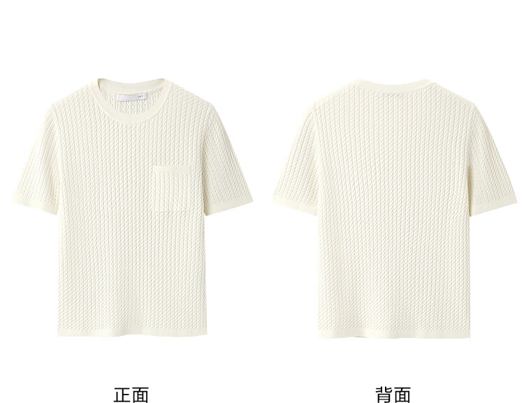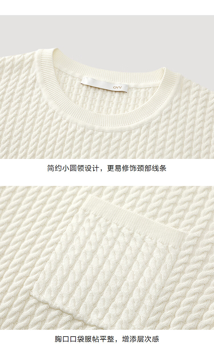 OVV2026 new spring and summer women's silk-cotton blended round neck casual and comfortable short-sleeved sweater ivory white S