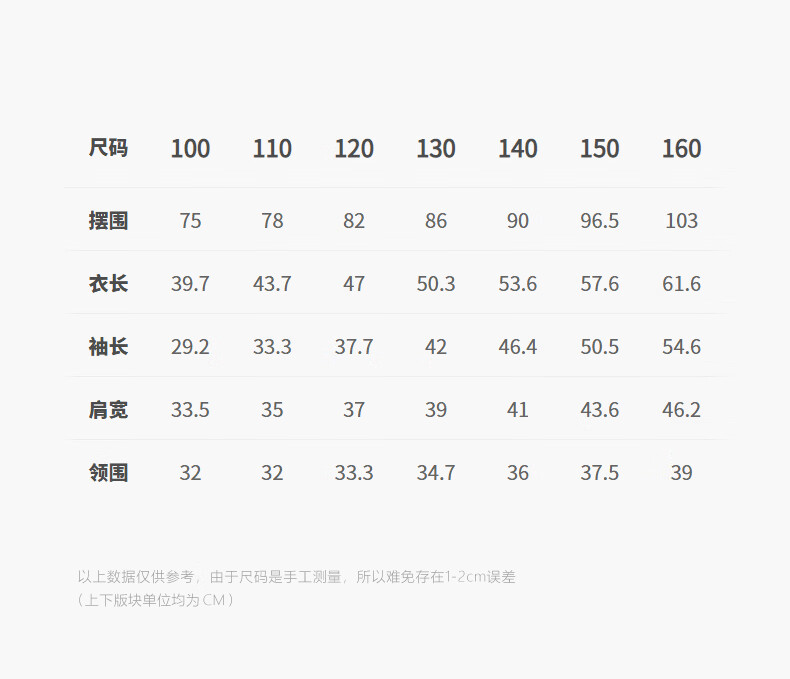 Size (cm) 42 44 46 48 50
