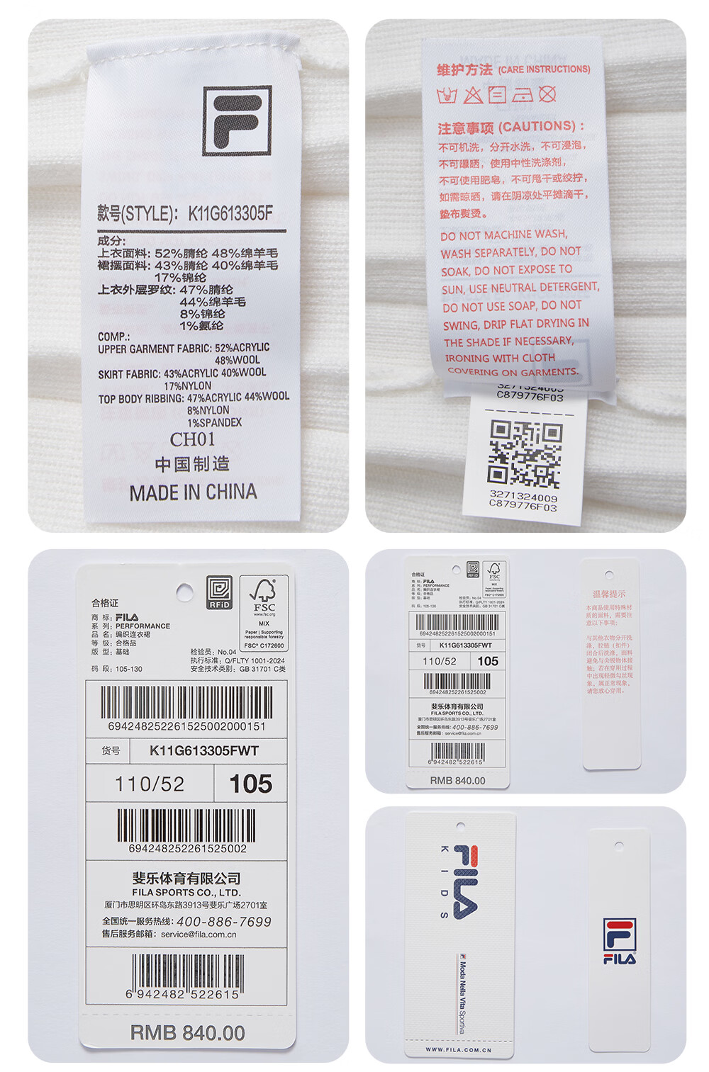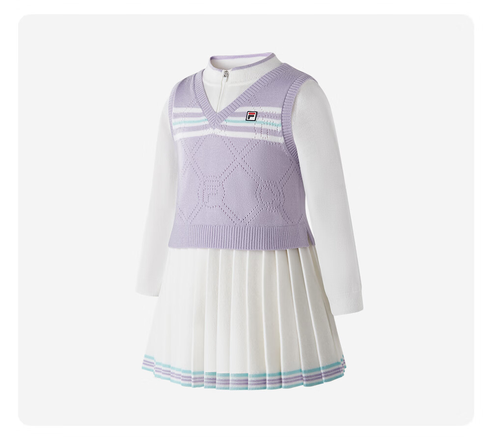 FILA children's clothing dress 2026 spring new style girls and children's fake two-piece woolen pleated skirt cloud white-WT 105