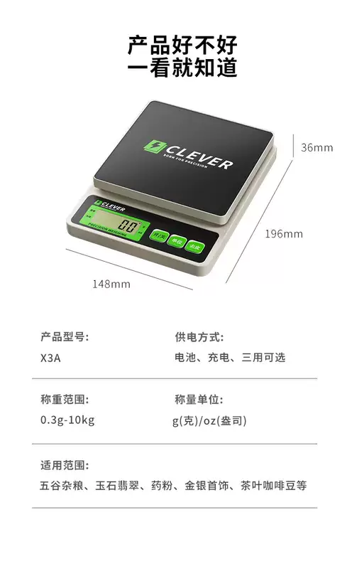 Yusenyi's new accurate weighing kitchen electronic scale food commercial roaster weighs high-precision small grams and grams (high-end waterproof black film) battery model 3kg0.1g free shipping insurance high precision 0.1g