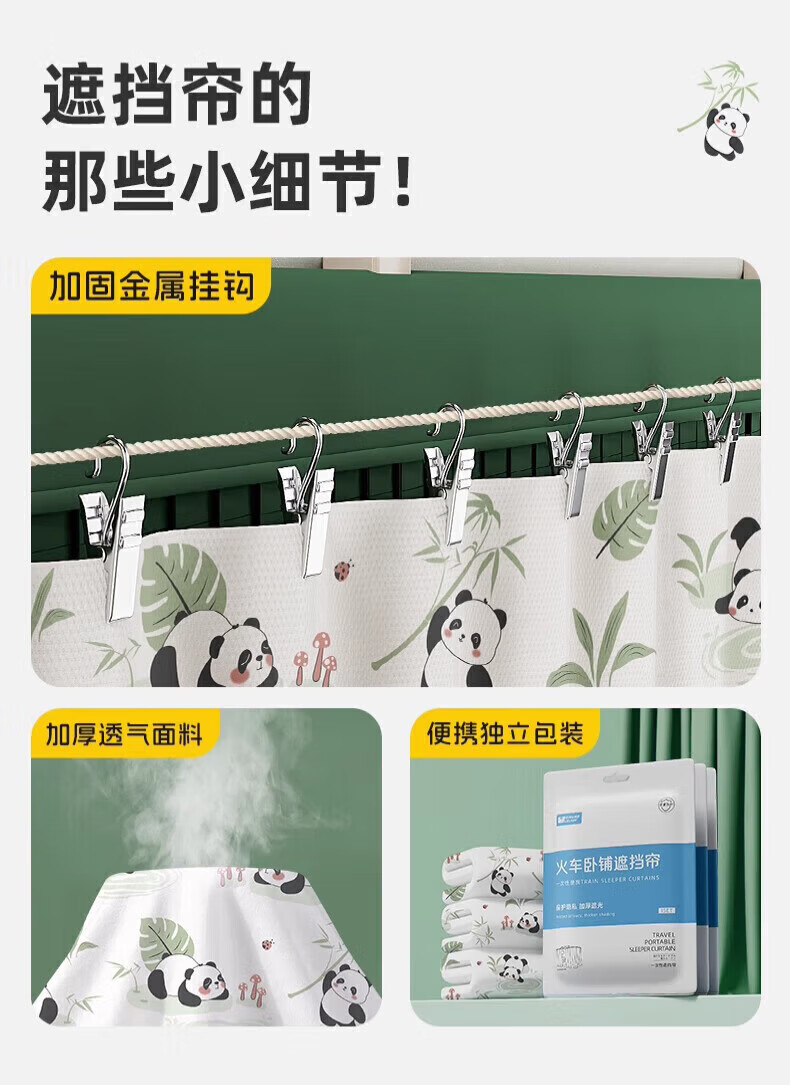 Train sleeper block curtain disposable curtain train curtain hard sleeper bed curtain three-piece set blackout curtain hanging curtain 3 sides thickened train block curtain protect privacy thickened blackout