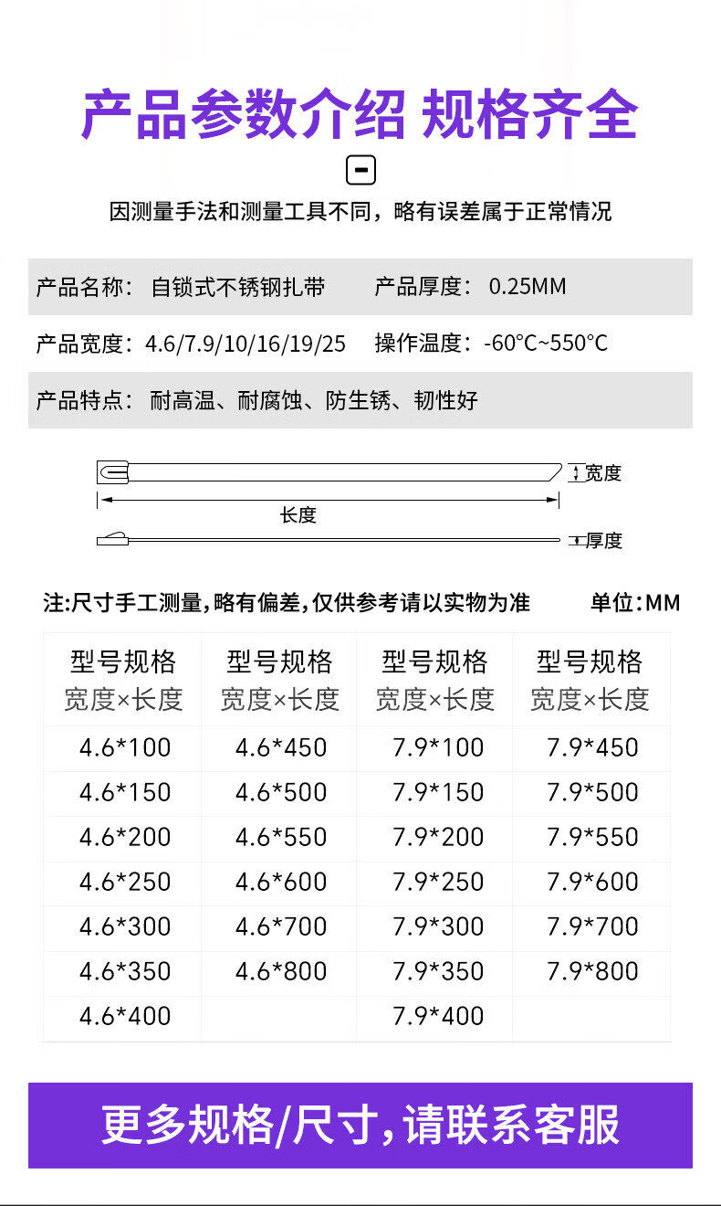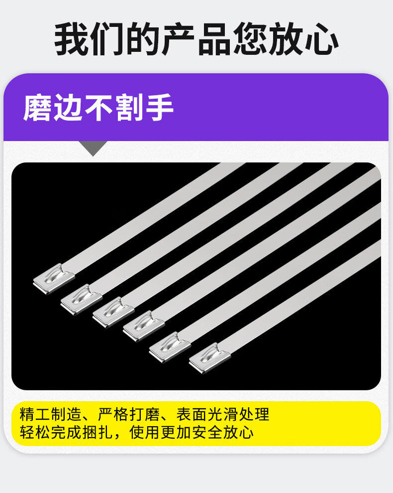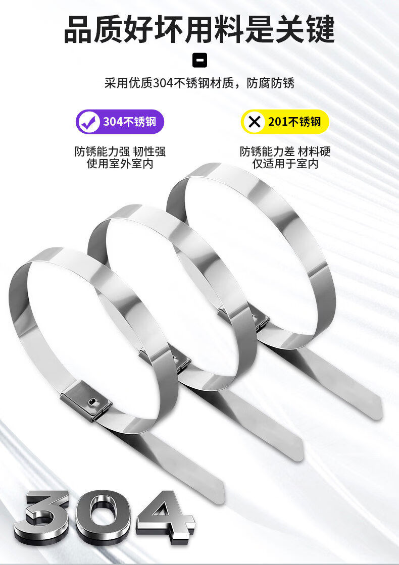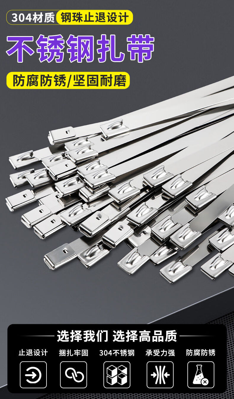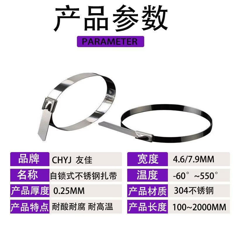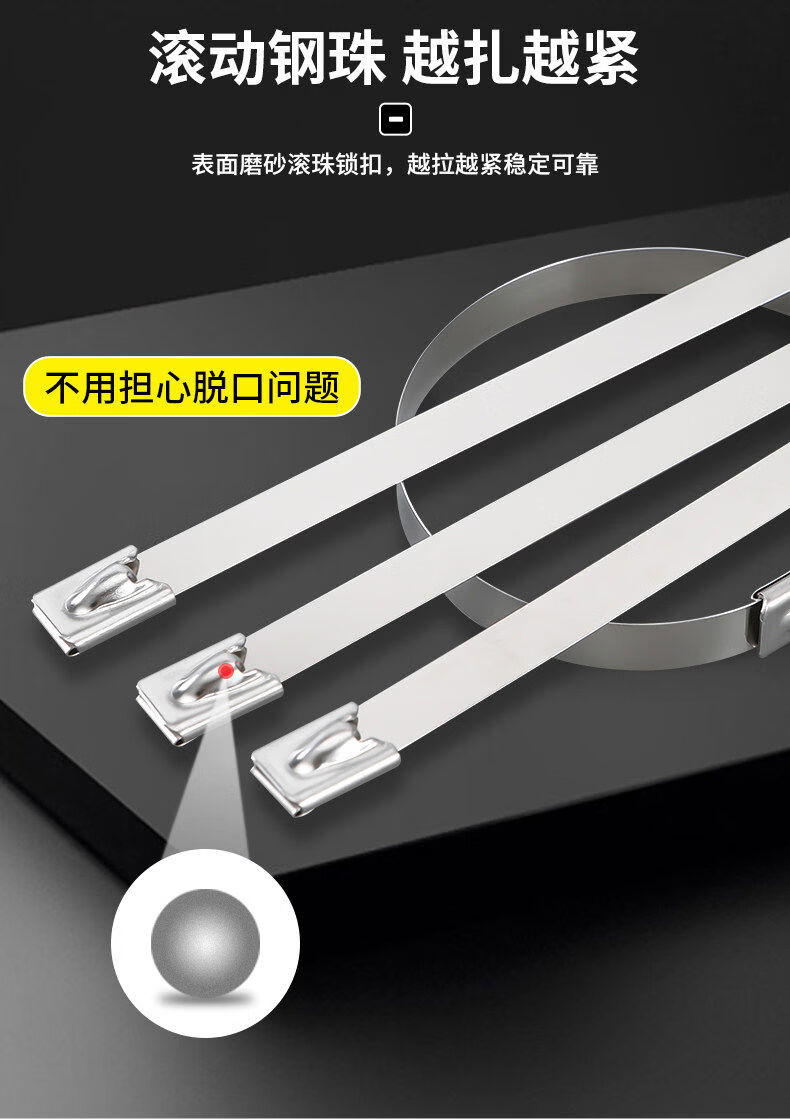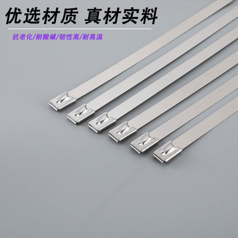 304 stainless steel cable tie self-locking tightener buckle outdoor high temperature resistant binding cable tie strong fixator 4 points 6*800mm 100 pieces