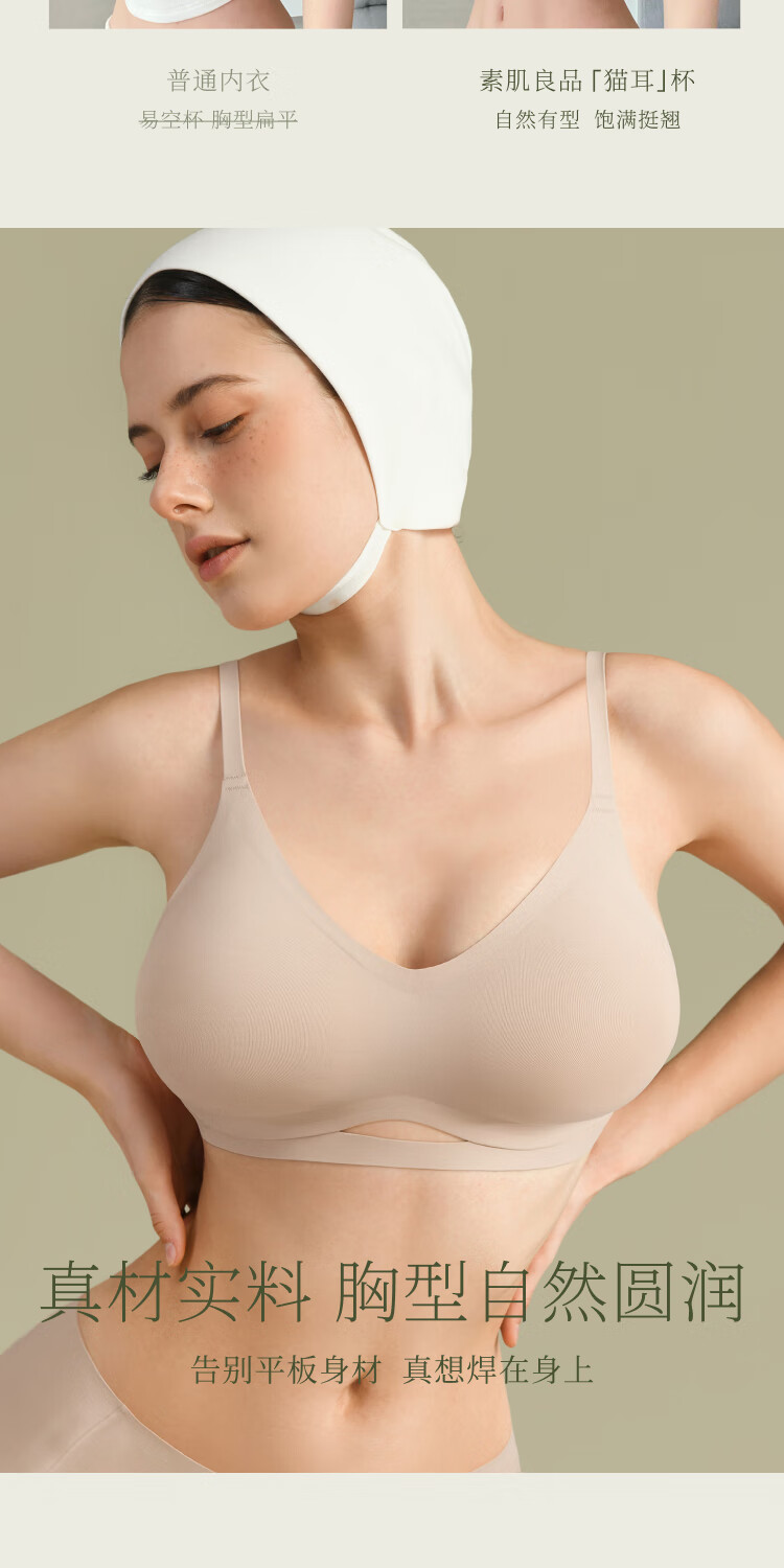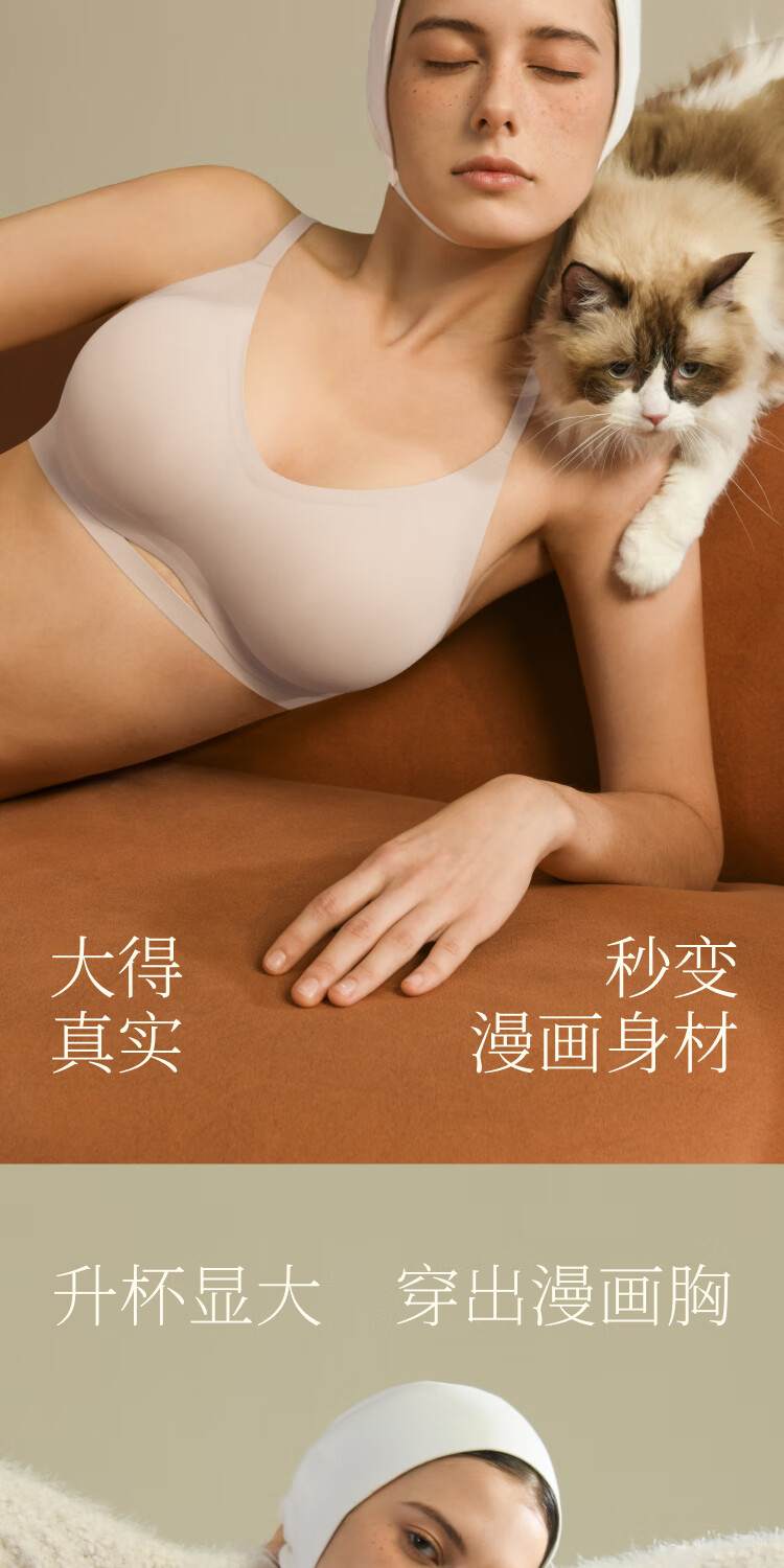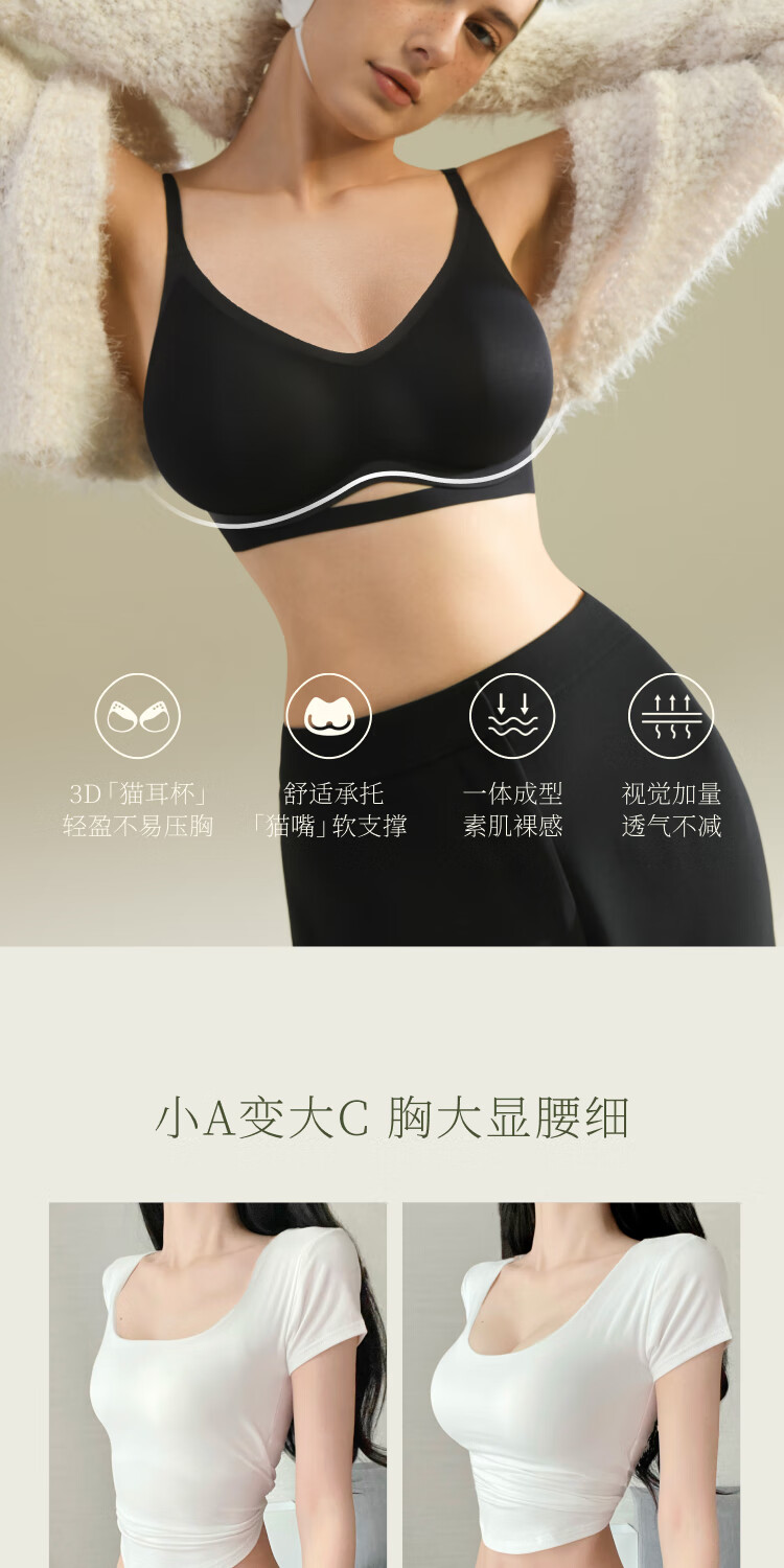 Sujiliangpin Expanded Comic Breasts Small Breasts Make Big Breasts Bra + Laundry Bag Comfortable Seamless Vest Underwear for Women Cold Porcelain Powder Vest Style (+ Laundry Bag) S (65A, 70A, 70B, 70C)
