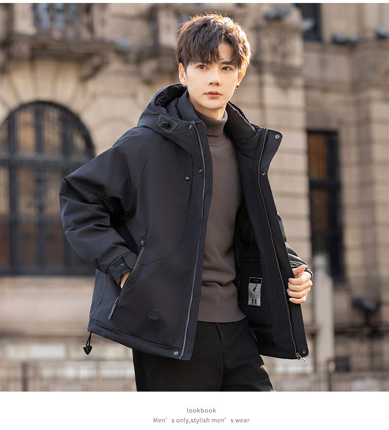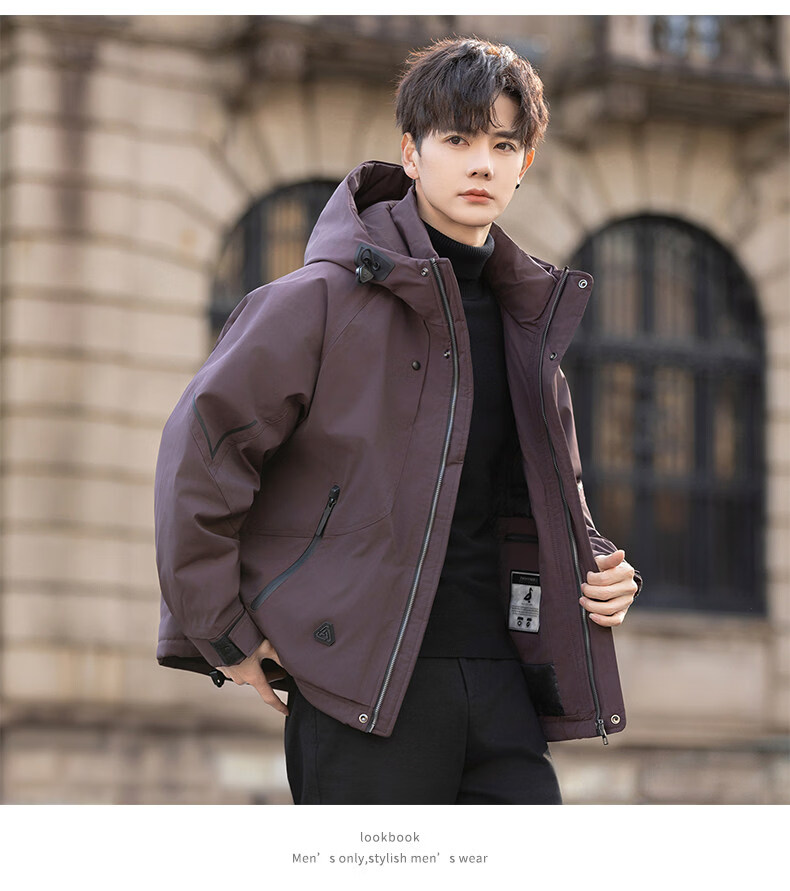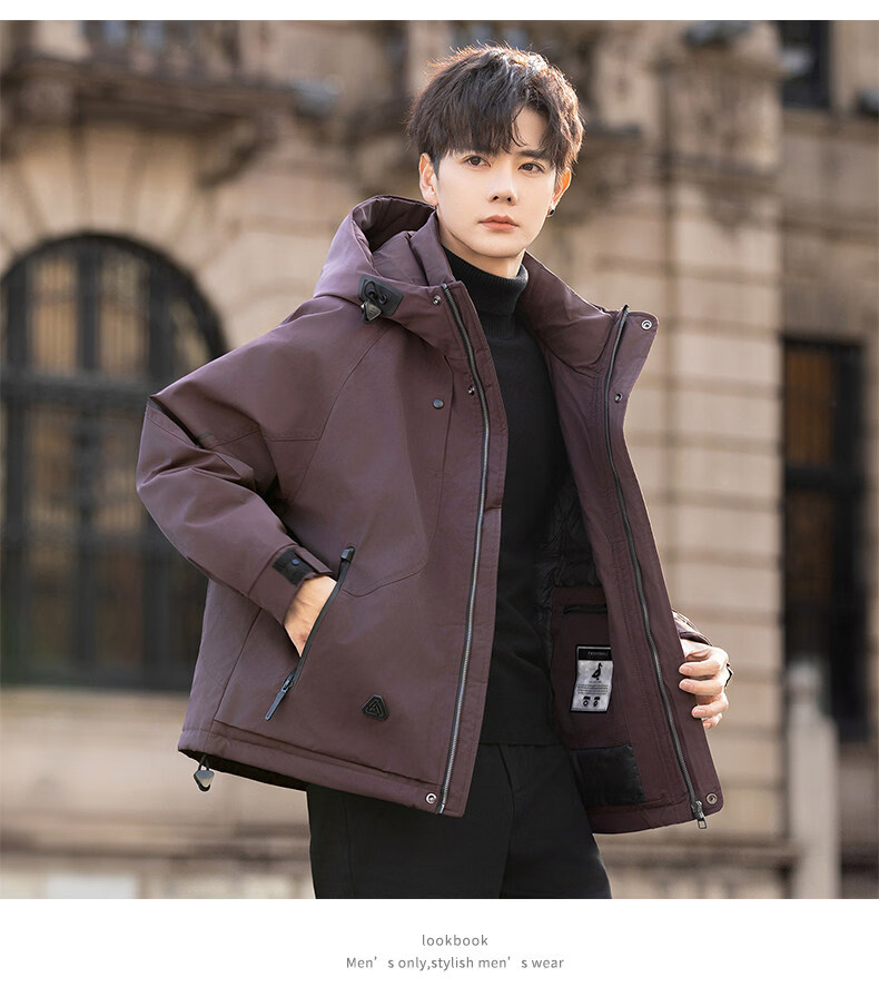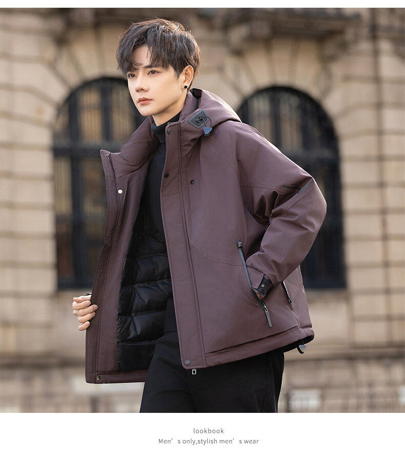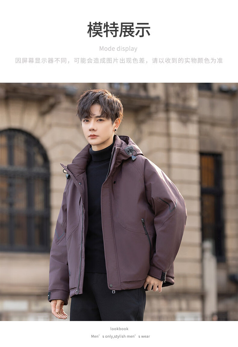 Woodpecker (TUCANO) hooded down jacket men's winter new high-end thickened warm outdoor jacket style work jacket red coffee color M weight 100-120Jin Jin equals 0.5 kg