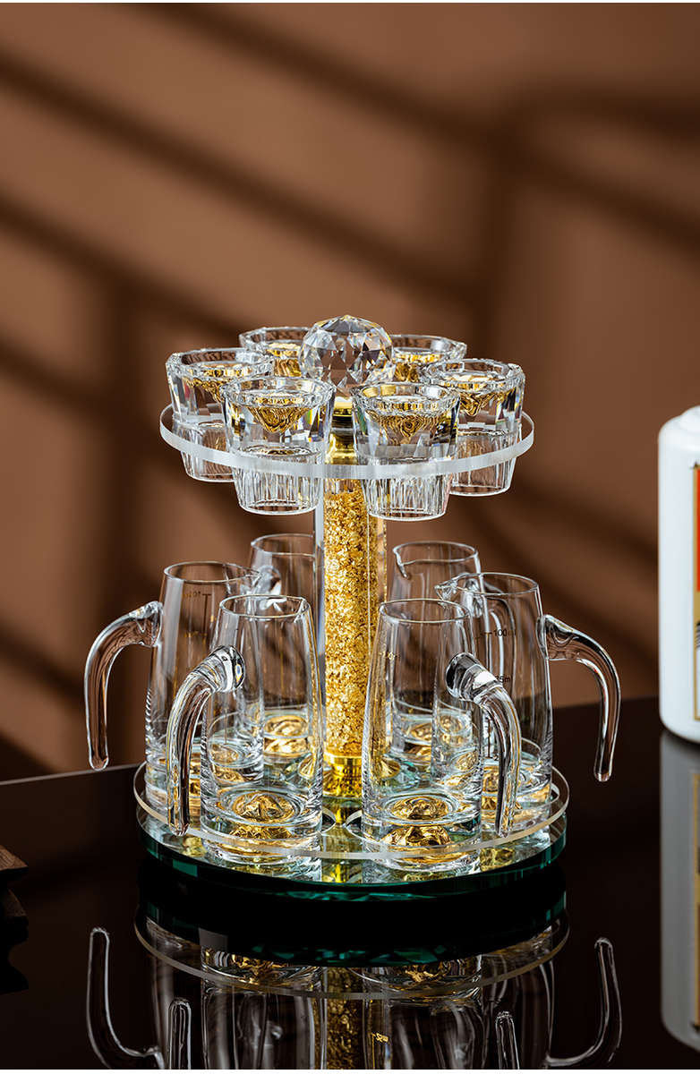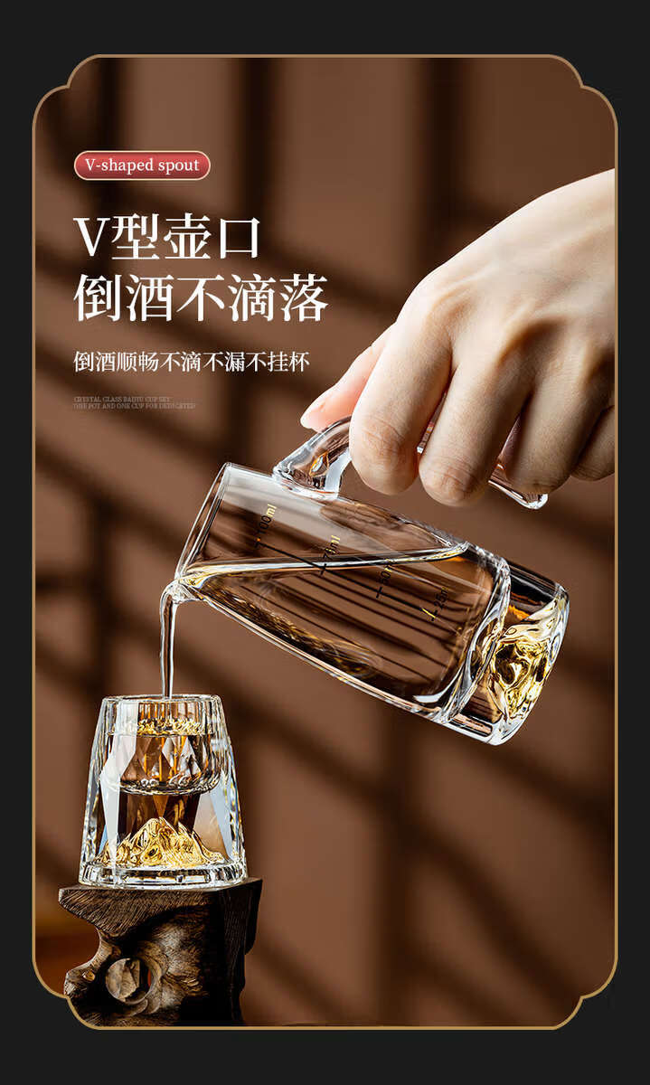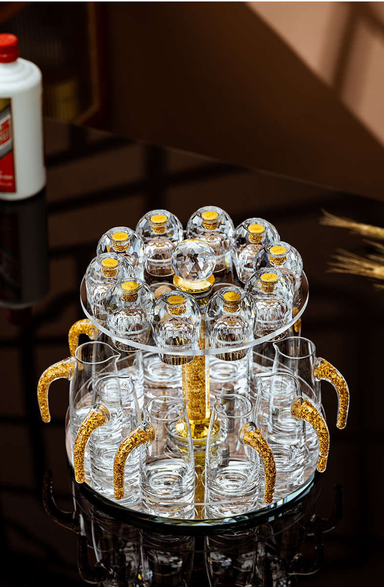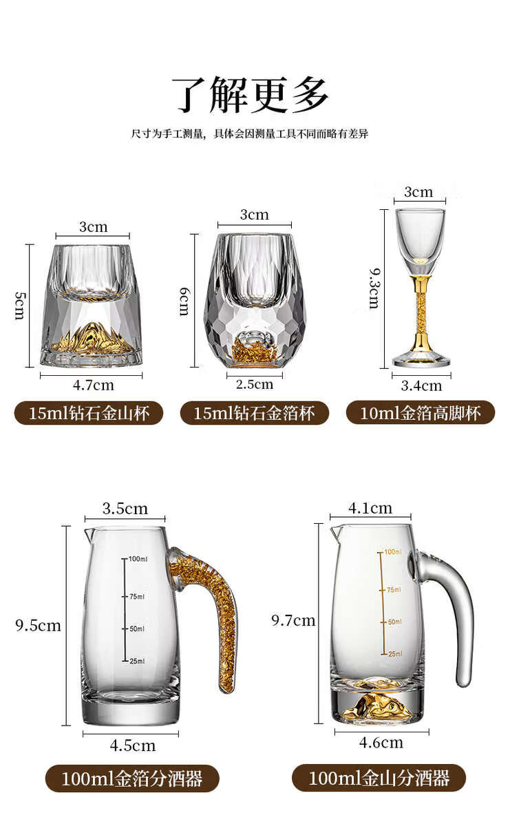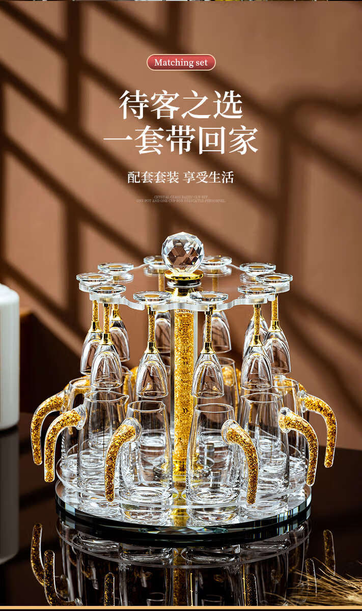 Yusenyi crystal white wine glass set household glass wine dispenser Jinshan jug high-end wineware one cup diamond Jinshan cup 15mlX10 Jinshan straight-up jug 100mlX10